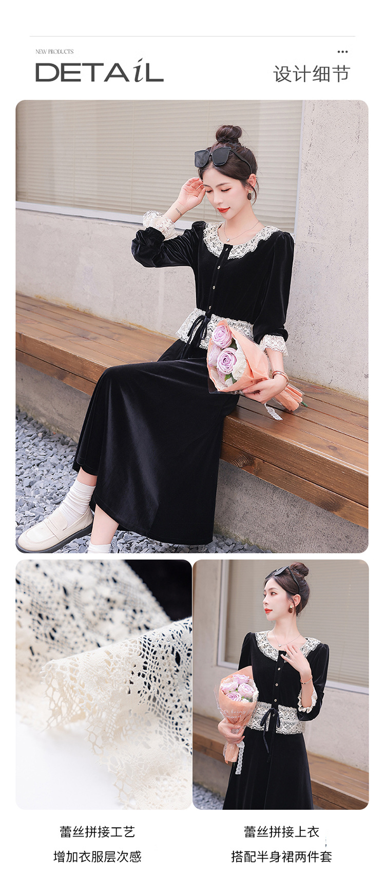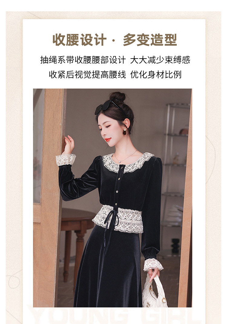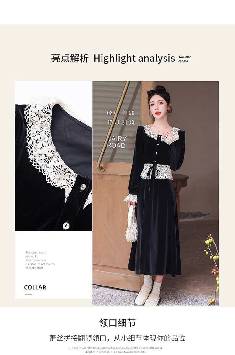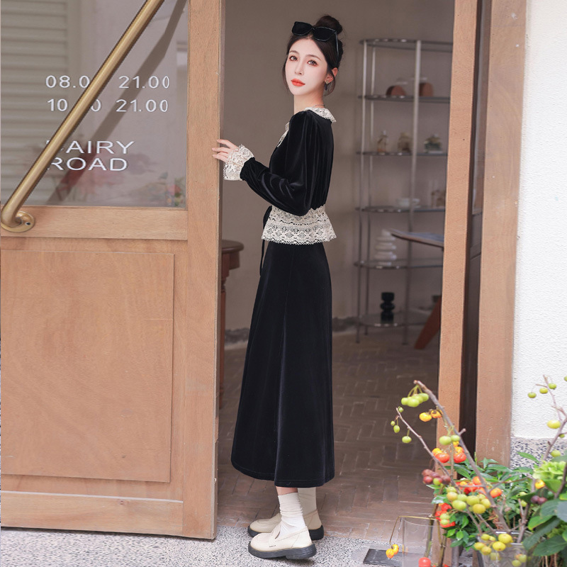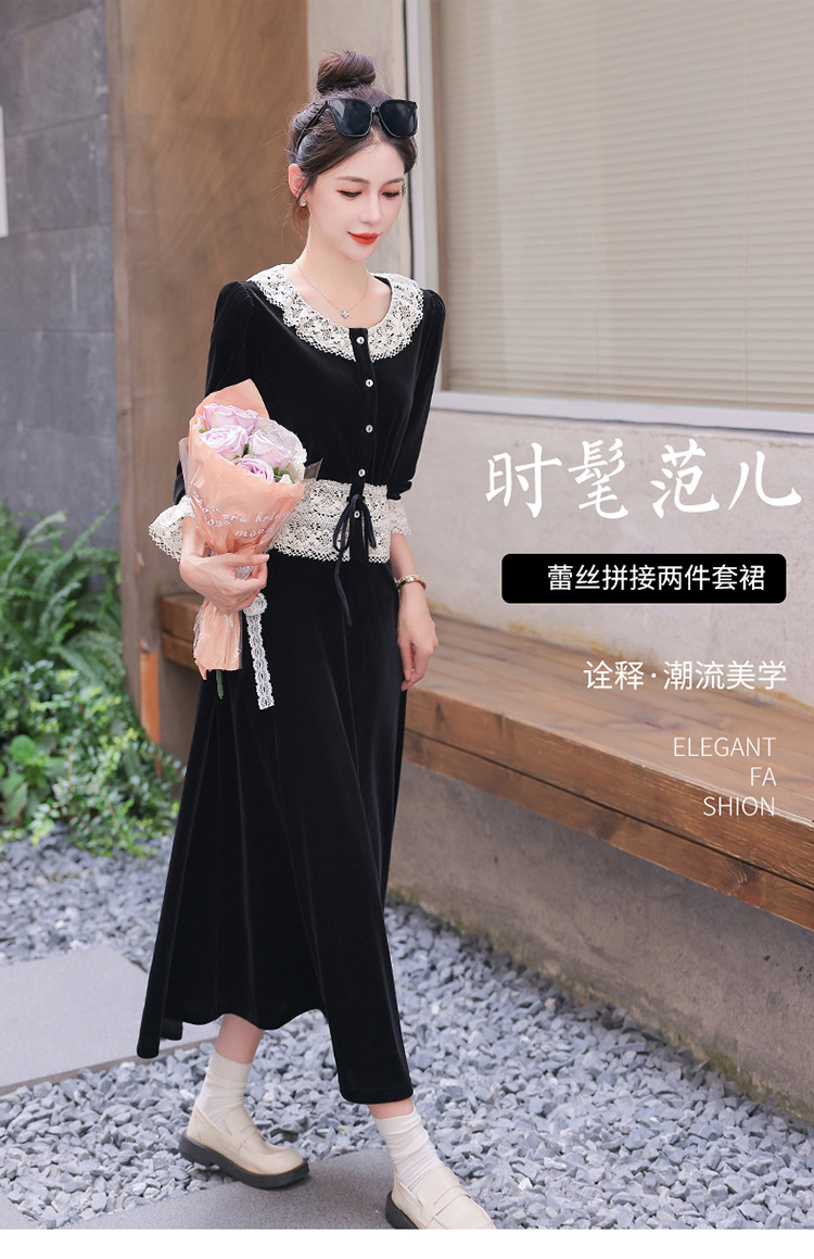 Chiếc đầm dáng dài mang phong cách Pháp, kết hợp tinh tế giữa chất liệu nhung mềm mại và những chi tiết ren. Thiết kế có phần tay và cổ được ghép nối bằng ren tạo điểm nhấn thanh lịch. Kiểu dáng ôn hòa thích hợp mặc trong tiết trời xuân và thu. Bạn có thể phối cùng giày cao gót và túi xách để tôn lên vẻ nữ tính. Mẫu đầm này phù hợp cho nhiều dịp đi chơi hoặc gặp mặt. | Tên sản phẩm: Váy Đầm Liền Thân Nữ Chất Liệu Ren Hàng Mùa Xuân Thu Đông - Thời Trang Nữ | Mã sản phẩm: L3927 - Giá: 1.910.000đ | Mã nhà sản xuất: WODIG-G05Hình ảnh sản phẩm