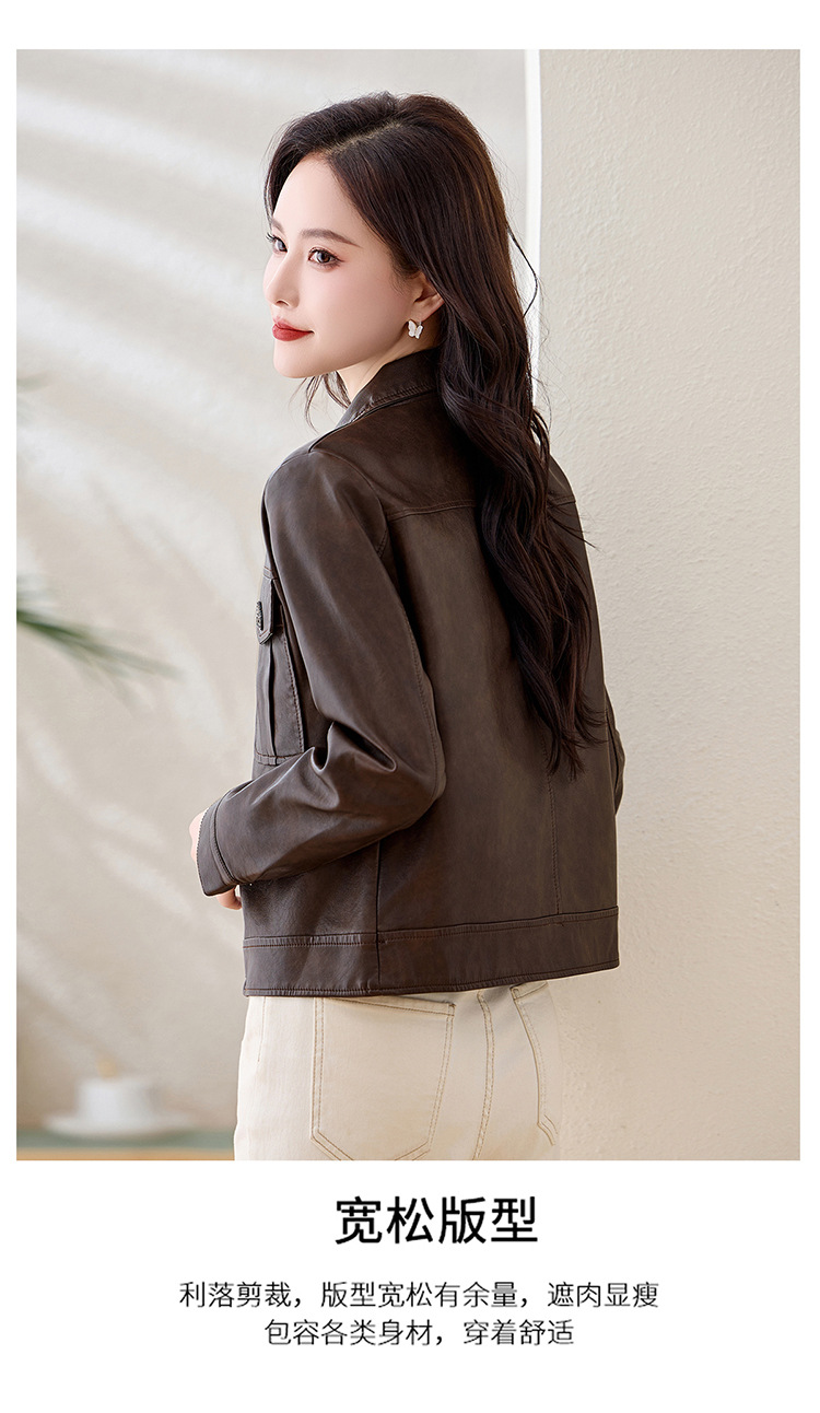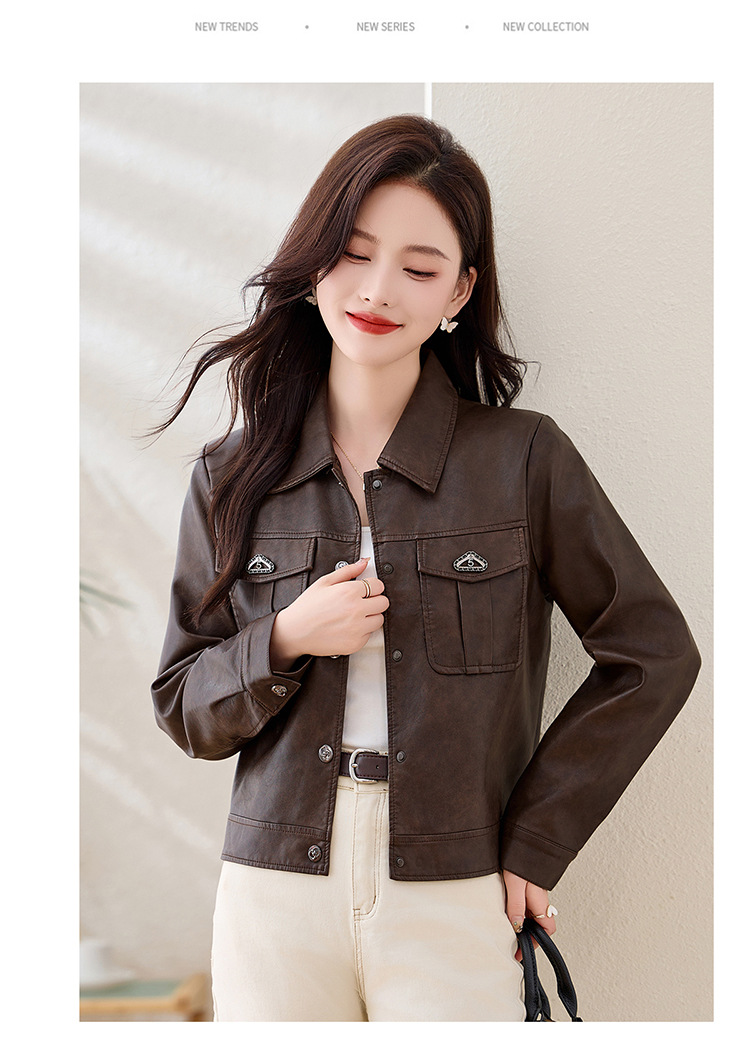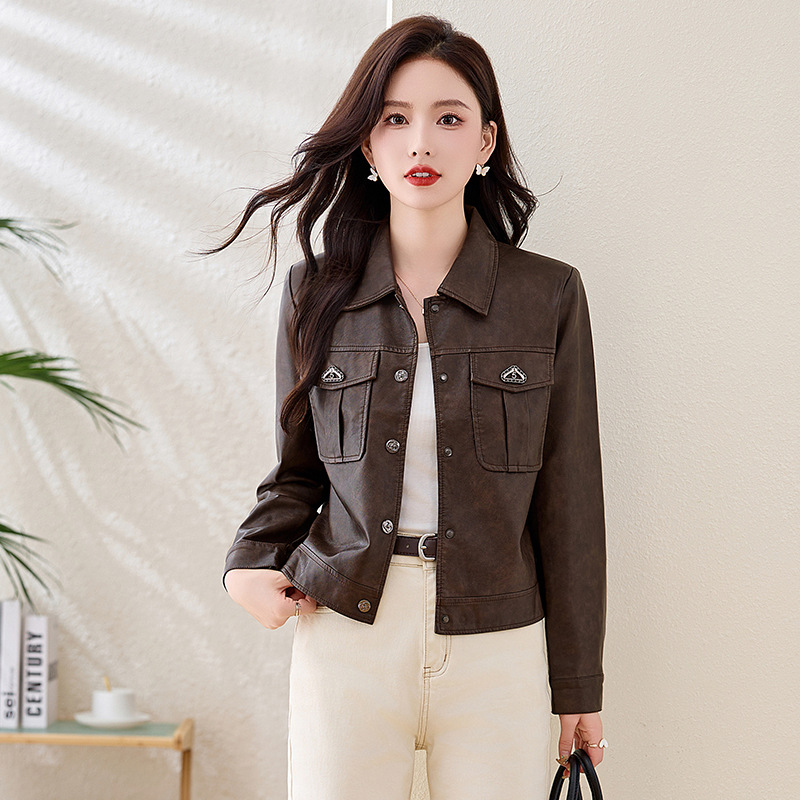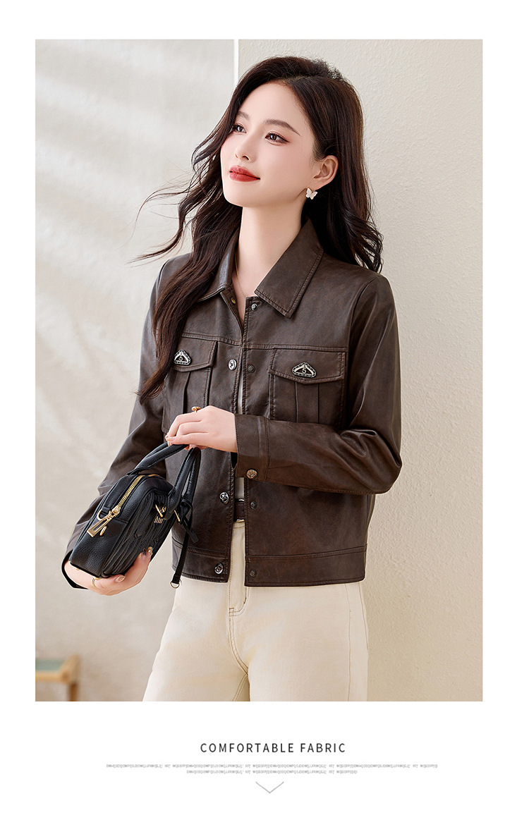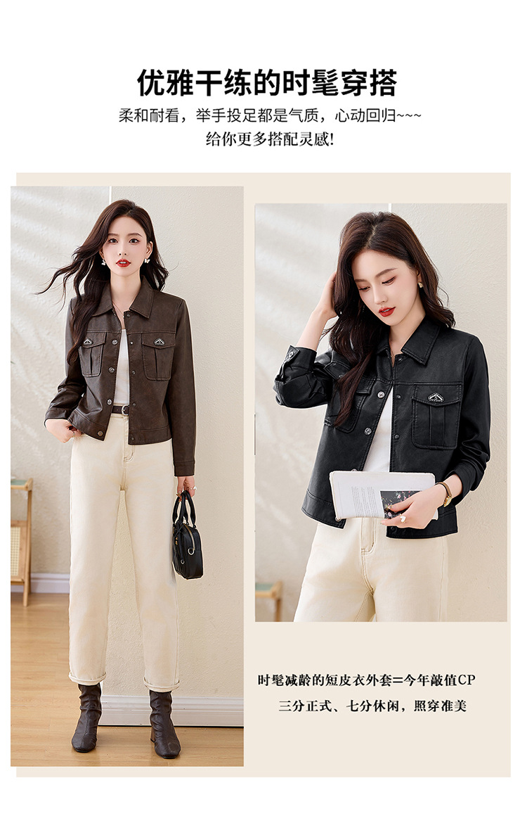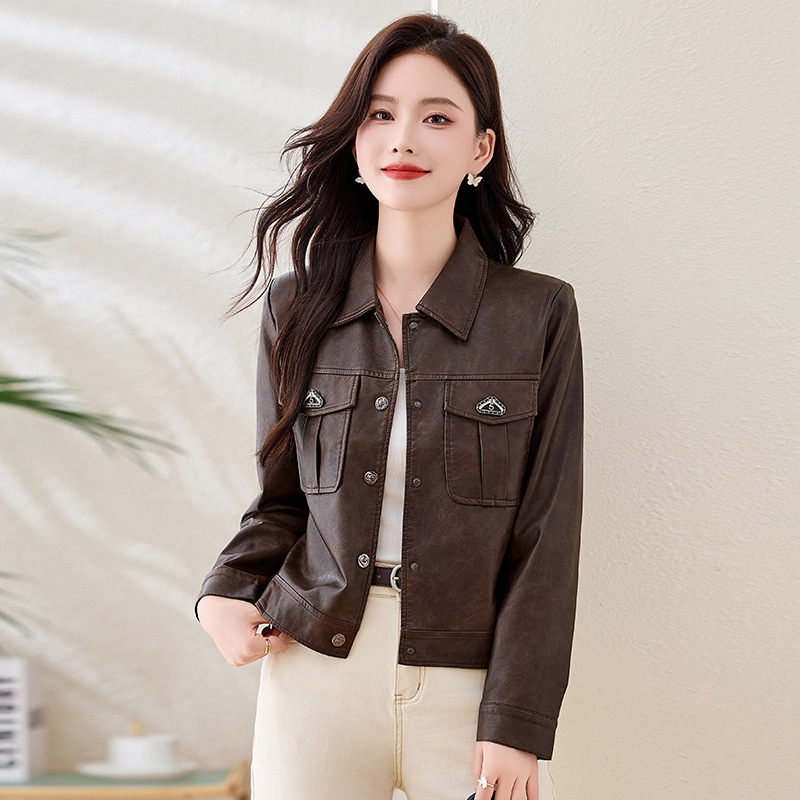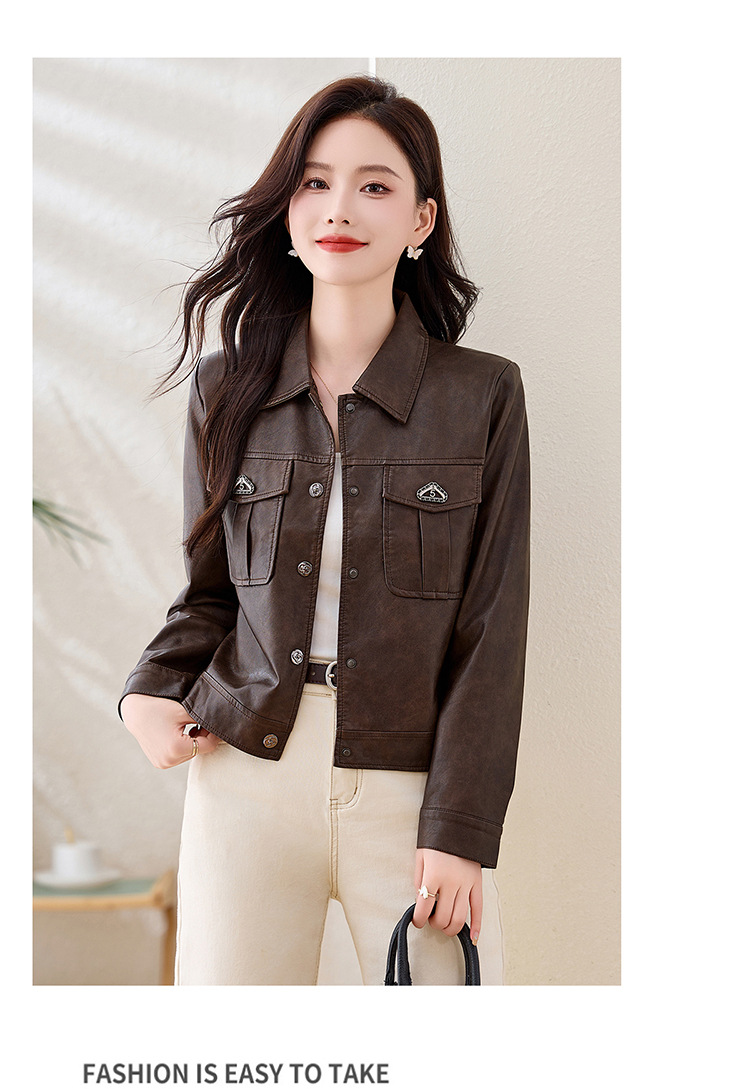 Áo khoác da ngắn dành cho nữ, có màu nâu ấm áp. Kiểu dáng thiết kế gọn gàng, phù hợp cho những người có vóc dáng nhỏ nhắn. Chất liệu da mềm mang đến cảm giác dễ chịu khi mặc. Sản phẩm mang phong cách cổ điển pha chút hiện đại, dễ dàng phối cùng nhiều loại trang phục khác nhau như quần jeans hay váy. Sử dụng hàng ngày, lau sạch bằng khăn mềm khi bám bụi để giữ vẻ ngoài luôn tươi mới. | Tên sản phẩm: Áo Da Nữ Hàng Mùa Xuân Thu Đông Phục Cổ Cổ Điển - Thời Trang Nữ | Mã sản phẩm: L3931 - Giá: 1.680.000đ | Mã nhà sản xuất: WODIG-G05Hình ảnh sản phẩm