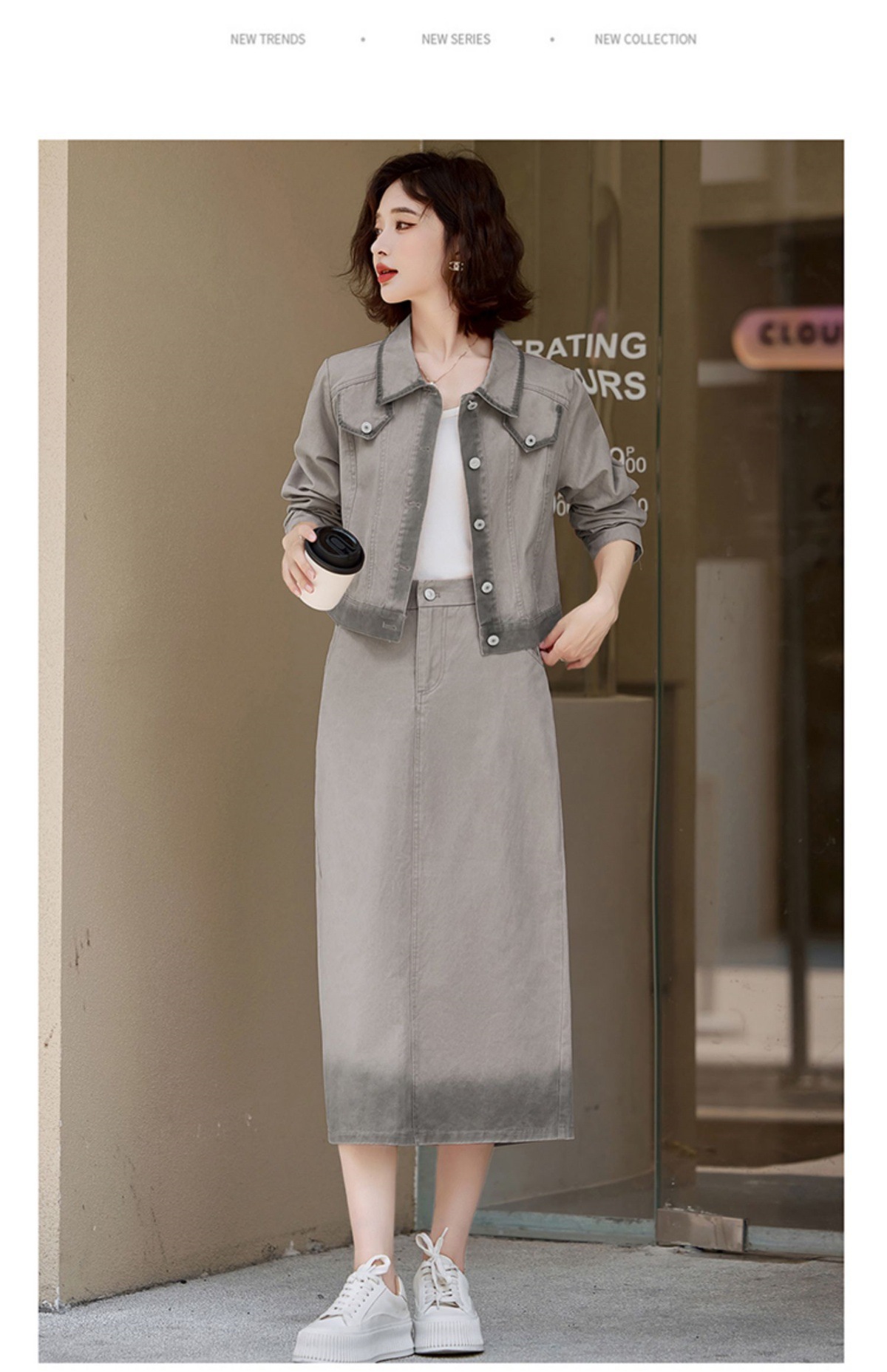 Bộ trang phục hai mảnh mới dành cho mùa thu, với chân váy chất liệu vải bò giúp tôn dáng. Thiết kế trẻ trung, năng động và dễ phối đồ. Bạn có thể mặc đi làm, đi chơi hay dự tiệc đều phù hợp. Chỉ cần kết hợp cùng áo thun, giày thể thao hoặc áo sơ mi, giày cao gót là đã có vẻ ngoại hình ưa nhìn. Chất vải co giãn nhẹ mang lại sự thoải mái cho cả ngày dài. | Tên sản phẩm: Đồ Bộ Nữ Chất Liệu Jean Bò Cả Bộ 2 Món Trông Trẻ Hơn Tuổi Hàng Mùa Xuân Thu Đông - Thời Trang Nữ | Mã sản phẩm: L3943 - Giá: 1.910.000đ | Mã nhà sản xuất: WODIG-G05Hình ảnh sản phẩm