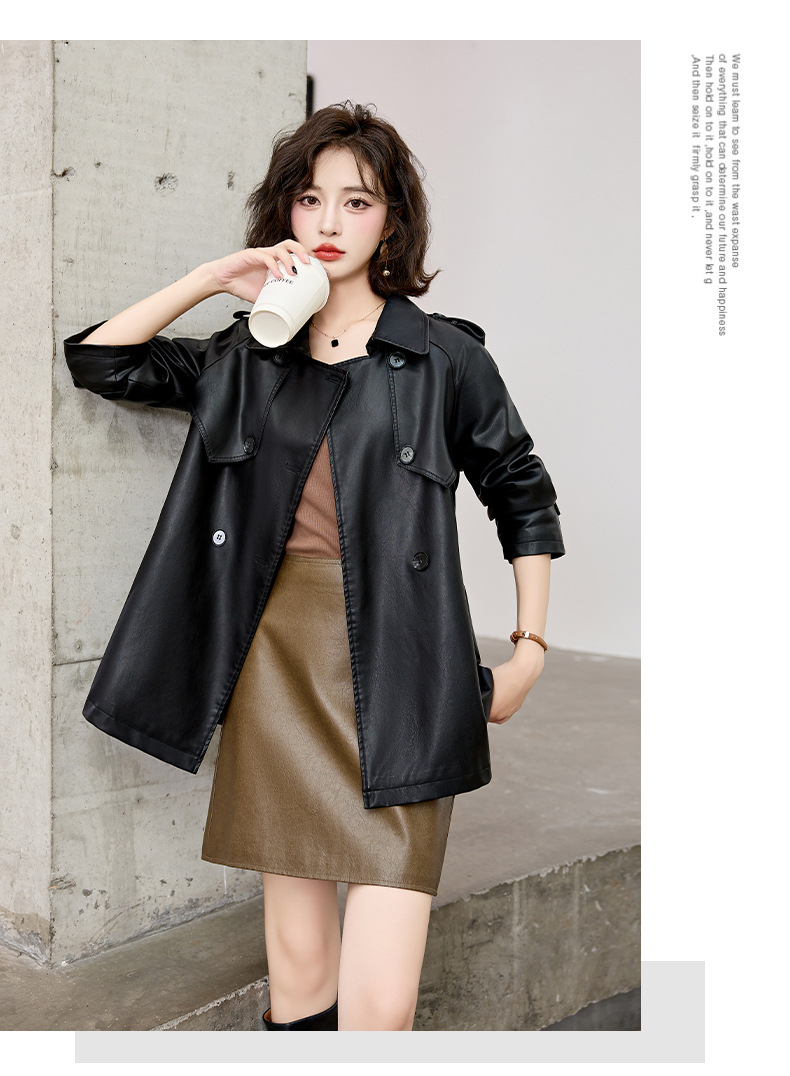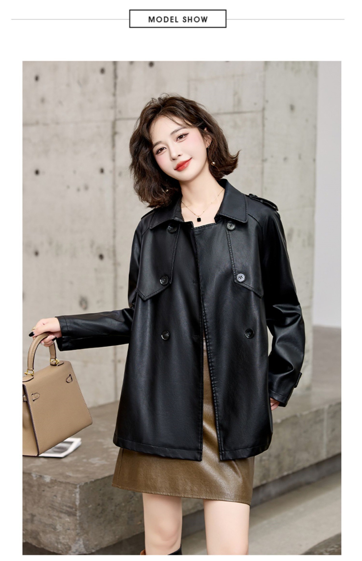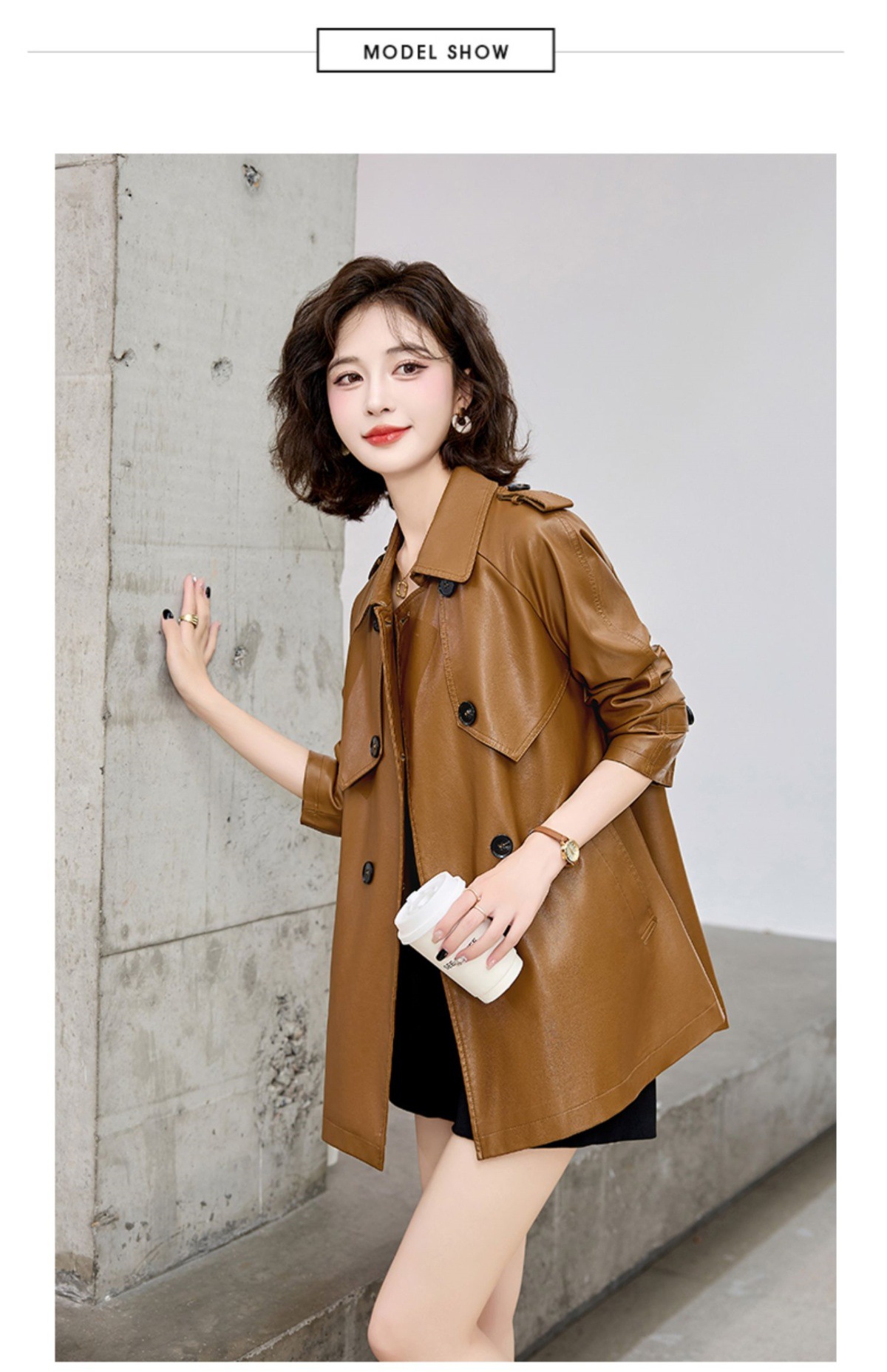 Áo khoác da dành cho nữ, thiết kế dáng dài vừa phải phù hợp với nhiều vóc dáng. Chất liệu da mềm tạo cảm giác dễ chịu khi mặc. Kiểu áo phong cách nhẹ nhàng, lịch sự, phù hợp dùng trong tiết trời mùa xuân và mùa thu. Có thể phối cùng quần jeans và áo thun để tạo vẻ ngoài năng động, hoặc mặc với đầm và giày cao gót cho dịp đi làm. Bảo quản sản phẩm nơi khô ráo, tránh ánh nắng trực tiếp. | Tên sản phẩm: Áo Da Nữ Hàng Mùa Xuân Thu Đông - Thời Trang Nữ | Mã sản phẩm: L3944 - Giá: 1.830.000đ | Mã nhà sản xuất: WODIG-G05Hình ảnh sản phẩm