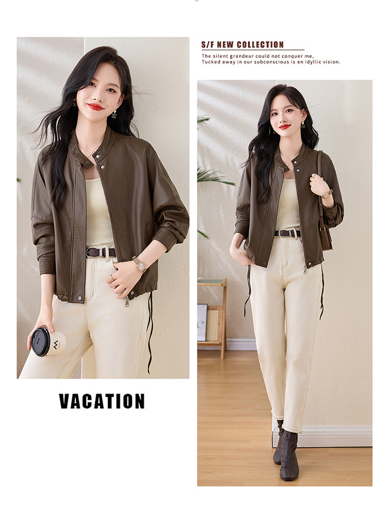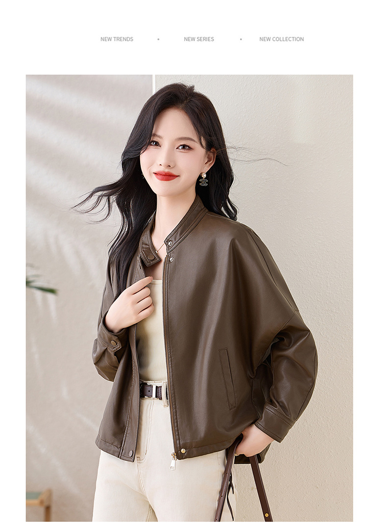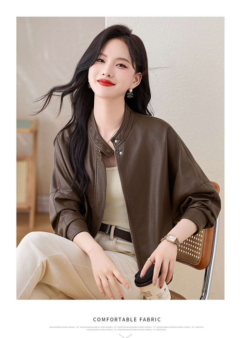 Áo khoác da dành cho nữ, thiết kế cổ đứng và dáng ngắn, phù hợp cho tiết trời thu đông. Kiểu dáng rộng rãi thoải mái, mang phong cách cổ điển pha chút hiện đại. Chất liệu da mềm tạo cảm giác dễ chịu khi mặc. Bạn có thể phối cùng quần jeans và áo thun để tạo nên một bộ trang phục năng động, tiện lợi cho những hoạt động hằng ngày hoặc đi chơi cùng bạn bè. | Tên sản phẩm: Áo Da Nữ Hàng Mùa Xuân Thu Đông Phục Cổ Cổ Điển - Thời Trang Nữ | Mã sản phẩm: L3963 - Giá: 1.640.000đ | Mã nhà sản xuất: WODIG-G05Hình ảnh sản phẩm