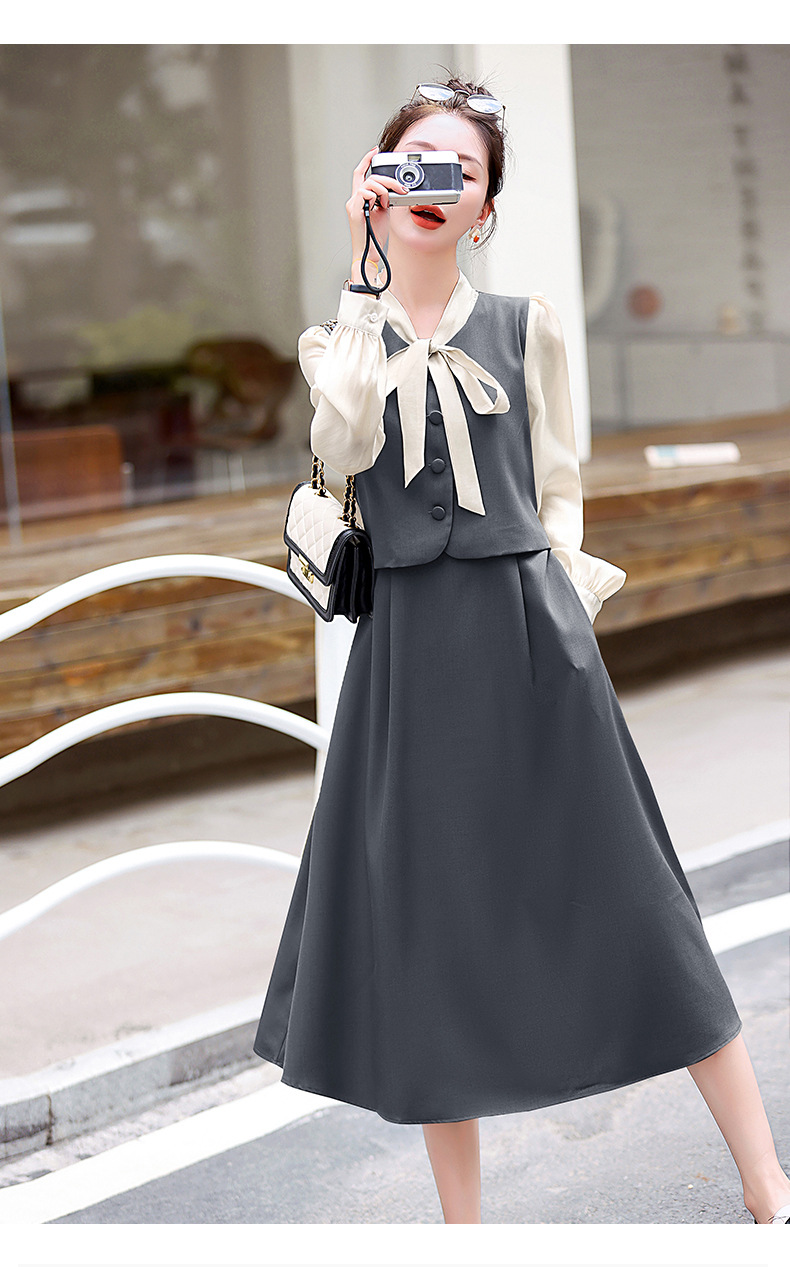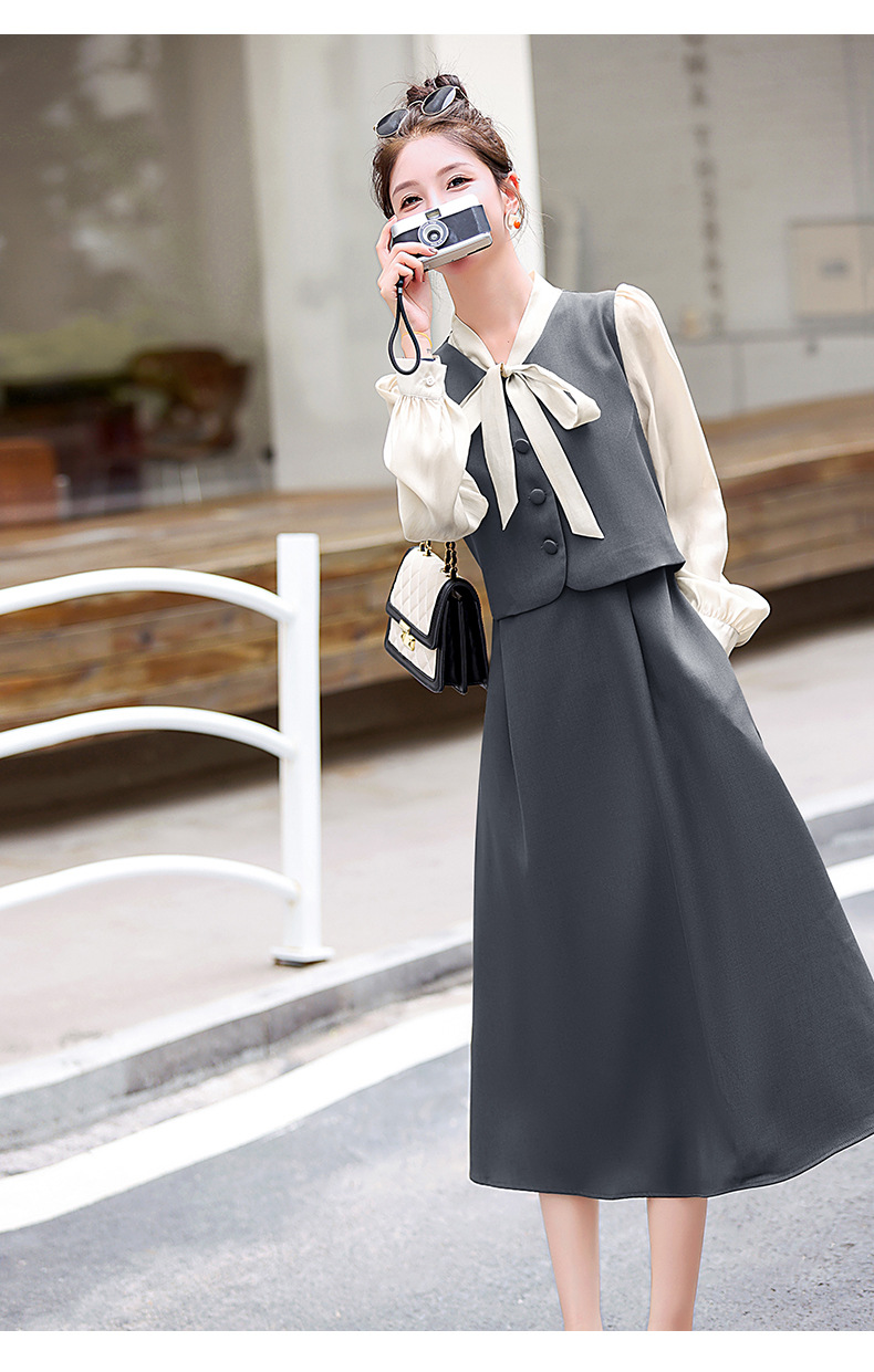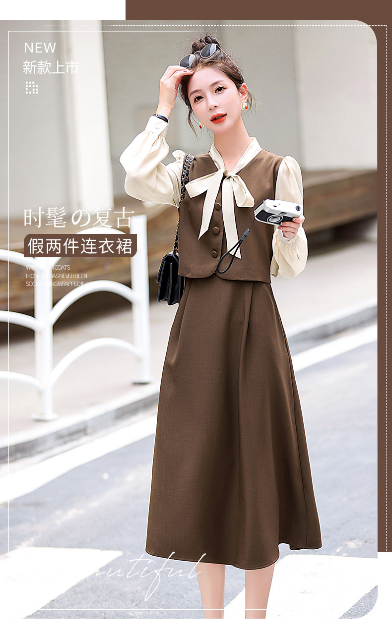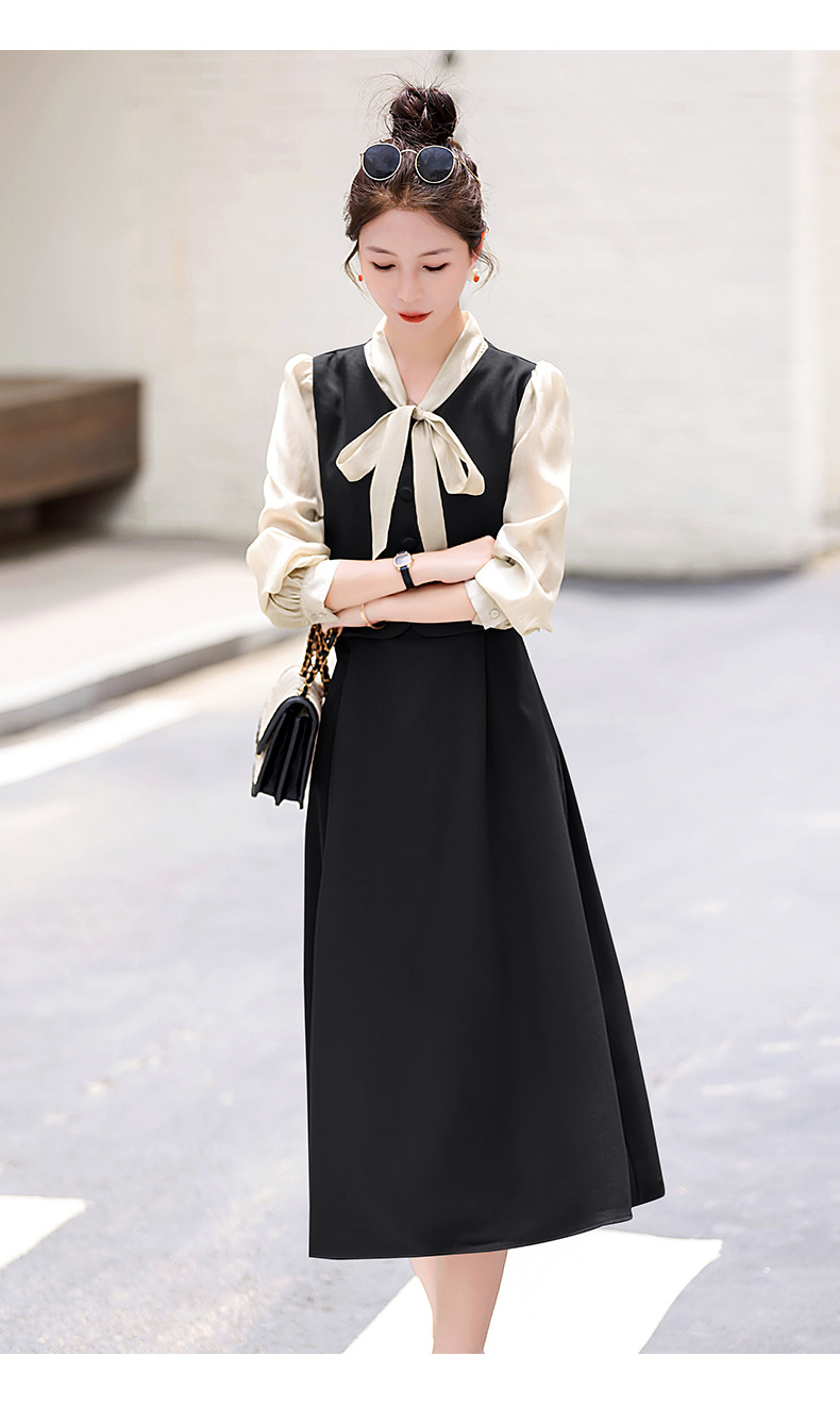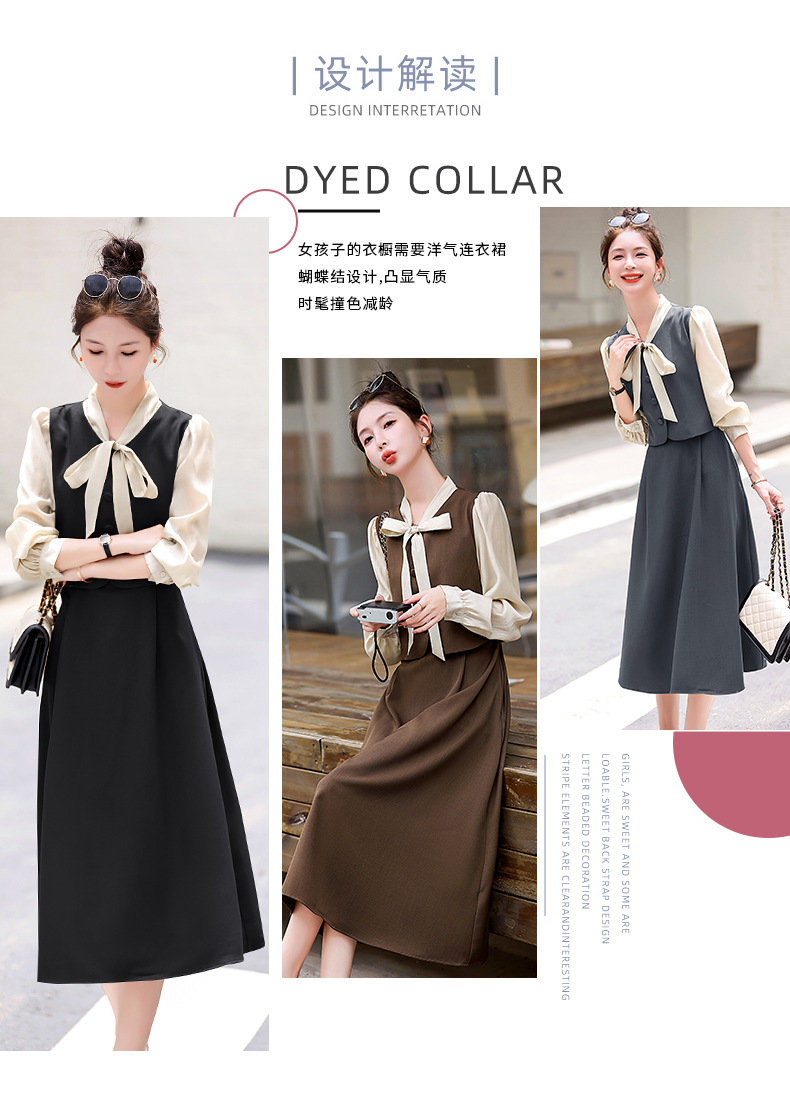 Chiếc váy này có thiết kế như đang mặc hai lớp nhưng thực chất chỉ là một áo liền, rất tiện lợi. Cổ váy được điểm xuyết bằng nơ tạo nên nét duyên dáng. Kiểu dáng ôm nhẹ cơ thể giúp tôn lên các đường nét. Chất vải mềm mại mang lại cảm giác dễ chịu khi mặc. Sản phẩm thích hợp cho những ngày thu mát mẻ, có thể phối hợp cùng giày cao gót hoặc giày đế bằng. | Tên sản phẩm: Váy Đầm Liền Thân Nữ Thắt Nơ Bướm Dáng Ôm Cả Bộ 2 Món Hàng Mùa Xuân Thu Đông - Thời Trang Nữ | Mã sản phẩm: L3971 - Giá: 1.830.000đ | Mã nhà sản xuất: WODIG-G05Hình ảnh sản phẩm