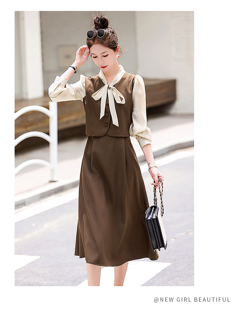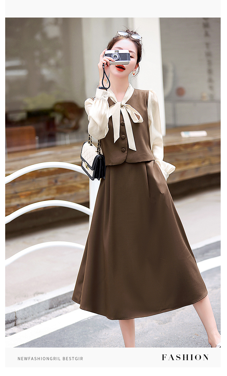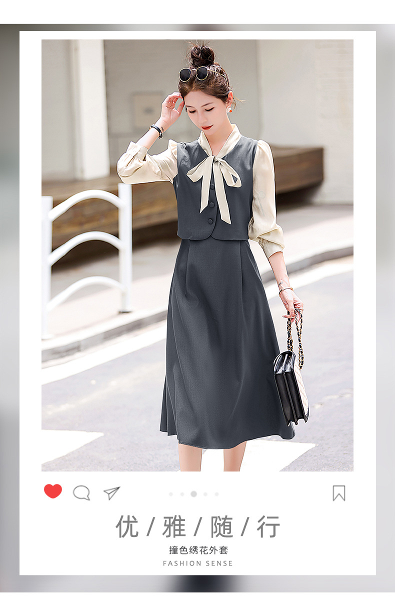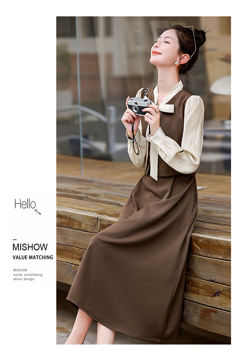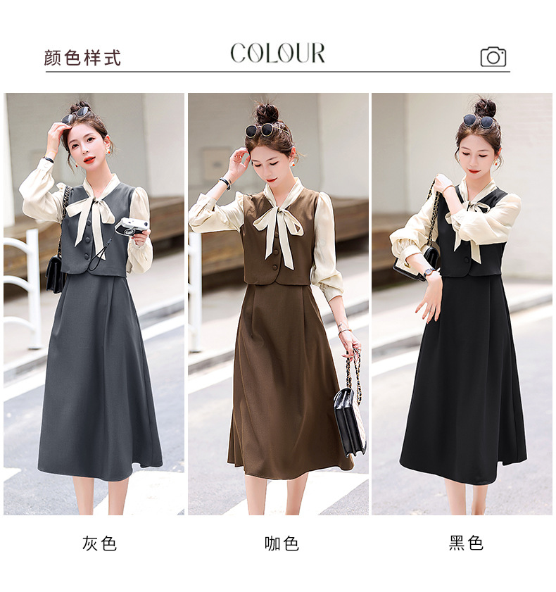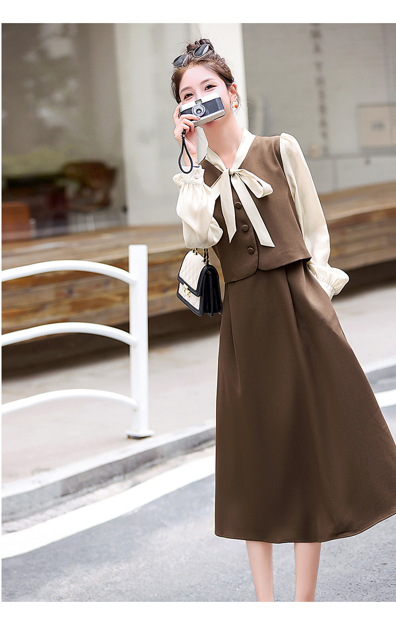Chiếc váy này có thiết kế như đang mặc hai lớp nhưng thực chất chỉ là một áo liền, rất tiện lợi. Cổ váy được điểm xuyết bằng nơ tạo nên nét duyên dáng. Kiểu dáng ôm nhẹ cơ thể giúp tôn lên các đường nét. Chất vải mềm mại mang lại cảm giác dễ chịu khi mặc. Sản phẩm thích hợp cho những ngày thu mát mẻ, có thể phối hợp cùng giày cao gót hoặc giày đế bằng. | Tên sản phẩm: Váy Đầm Liền Thân Nữ Thắt Nơ Bướm Dáng Ôm Cả Bộ 2 Món Hàng Mùa Xuân Thu Đông - Thời Trang Nữ | Mã sản phẩm: L3971 - Giá: 1.830.000đ | Mã nhà sản xuất: WODIG-G05Hình ảnh sản phẩm