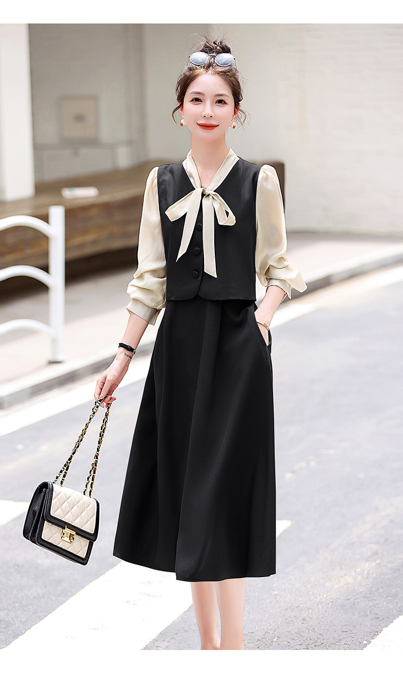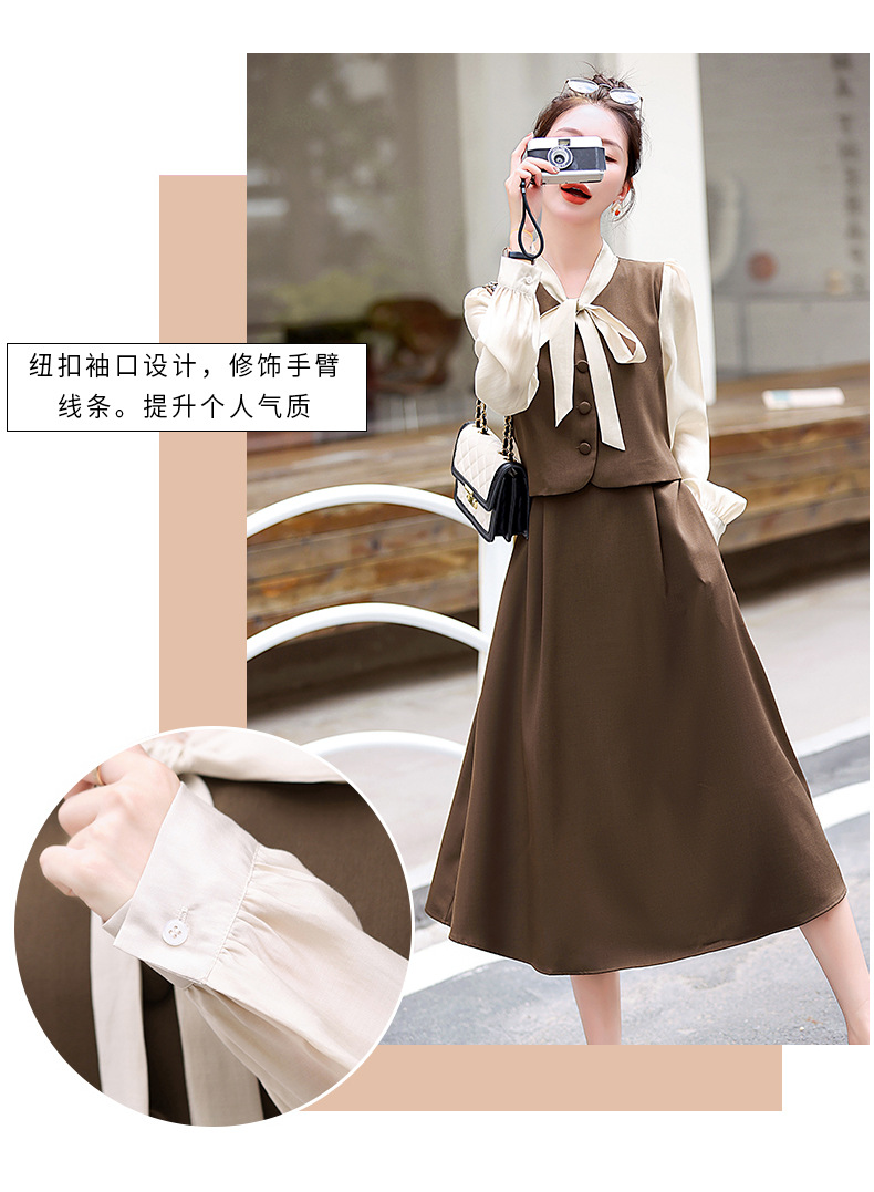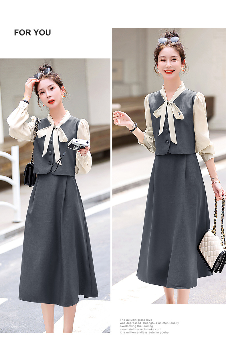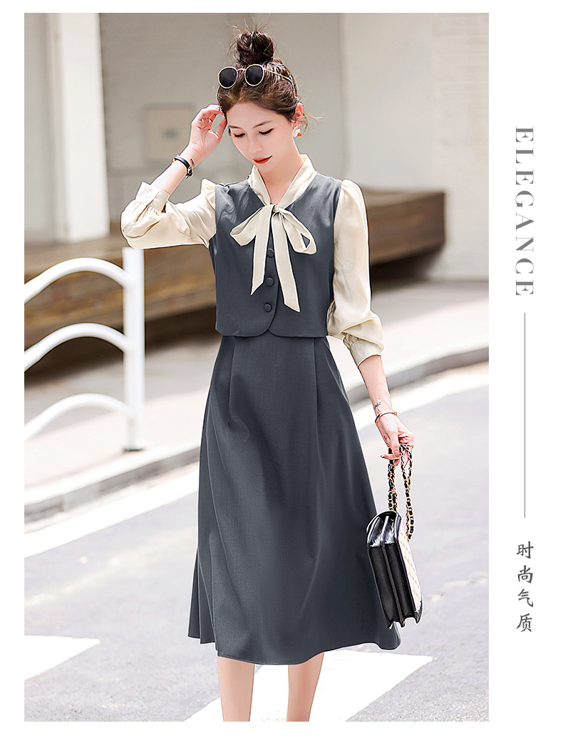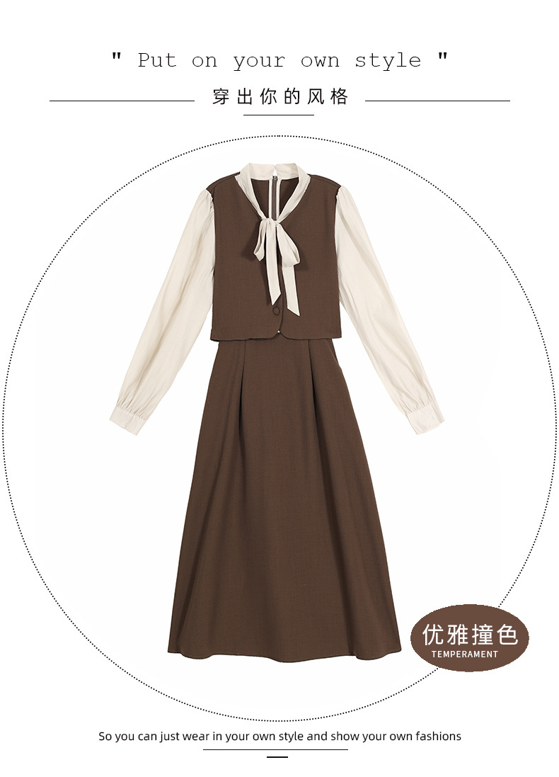 Chiếc váy này có thiết kế như đang mặc hai lớp nhưng thực chất chỉ là một áo liền, rất tiện lợi. Cổ váy được điểm xuyết bằng nơ tạo nên nét duyên dáng. Kiểu dáng ôm nhẹ cơ thể giúp tôn lên các đường nét. Chất vải mềm mại mang lại cảm giác dễ chịu khi mặc. Sản phẩm thích hợp cho những ngày thu mát mẻ, có thể phối hợp cùng giày cao gót hoặc giày đế bằng. | Tên sản phẩm: Váy Đầm Liền Thân Nữ Thắt Nơ Bướm Dáng Ôm Cả Bộ 2 Món Hàng Mùa Xuân Thu Đông - Thời Trang Nữ | Mã sản phẩm: L3971 - Giá: 1.830.000đ | Mã nhà sản xuất: WODIG-G05Hình ảnh sản phẩm