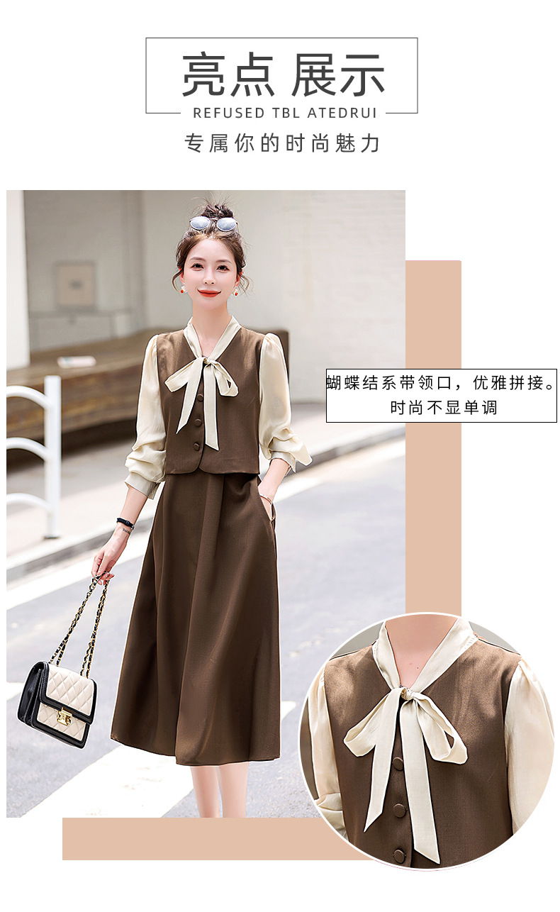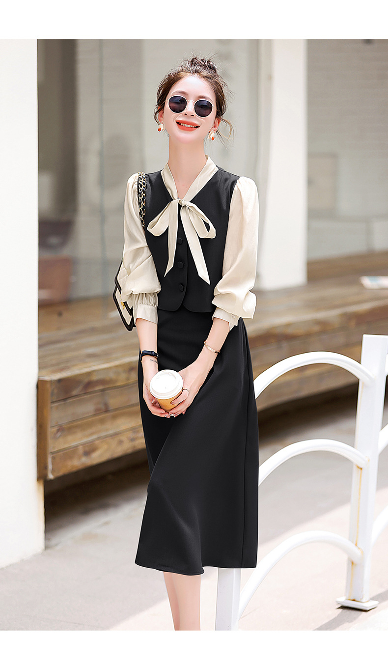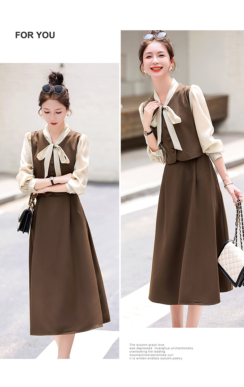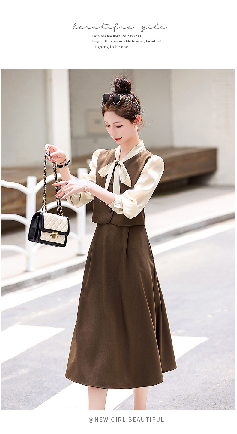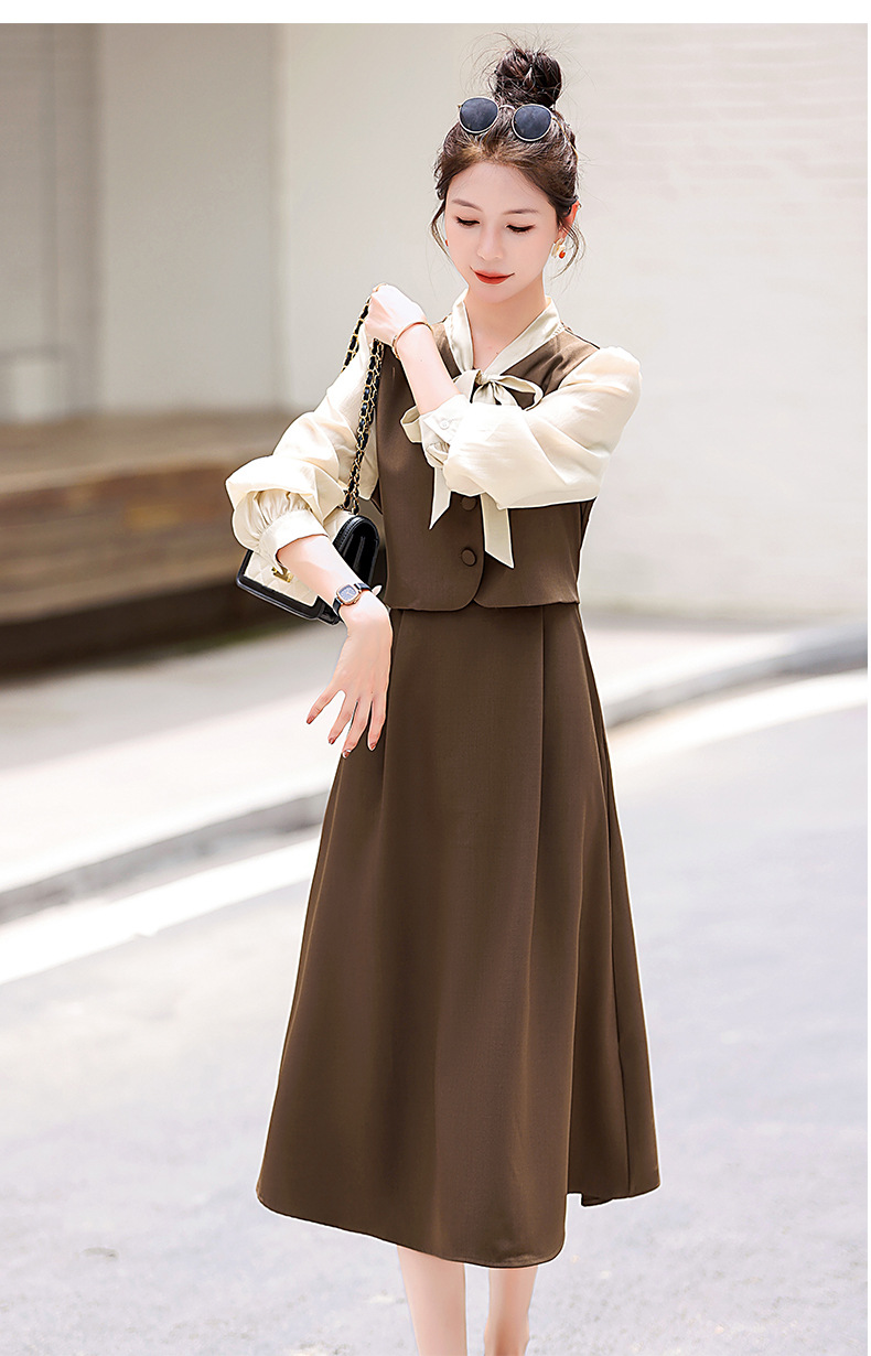 Chiếc váy này có thiết kế như đang mặc hai lớp nhưng thực chất chỉ là một áo liền, rất tiện lợi. Cổ váy được điểm xuyết bằng nơ tạo nên nét duyên dáng. Kiểu dáng ôm nhẹ cơ thể giúp tôn lên các đường nét. Chất vải mềm mại mang lại cảm giác dễ chịu khi mặc. Sản phẩm thích hợp cho những ngày thu mát mẻ, có thể phối hợp cùng giày cao gót hoặc giày đế bằng. | Tên sản phẩm: Váy Đầm Liền Thân Nữ Thắt Nơ Bướm Dáng Ôm Cả Bộ 2 Món Hàng Mùa Xuân Thu Đông - Thời Trang Nữ | Mã sản phẩm: L3971 - Giá: 1.830.000đ | Mã nhà sản xuất: WODIG-G05Hình ảnh sản phẩm