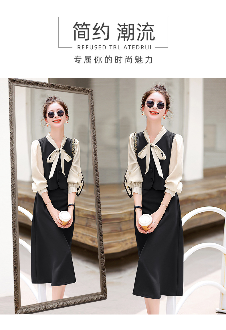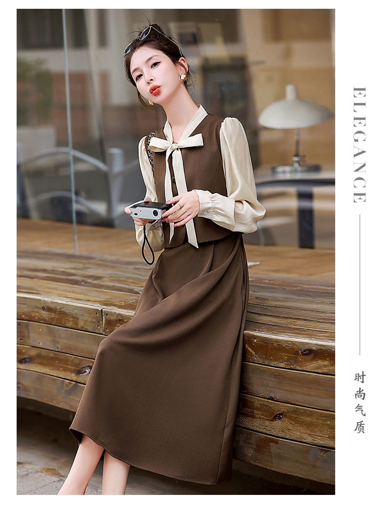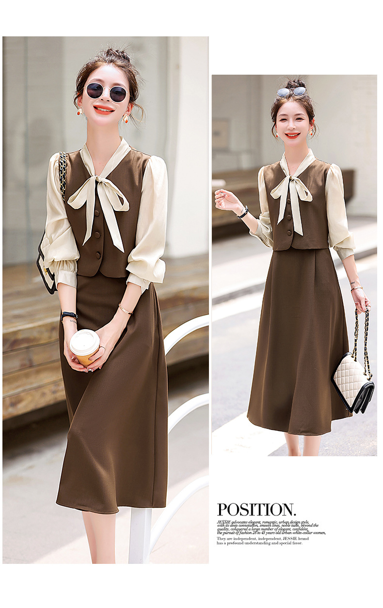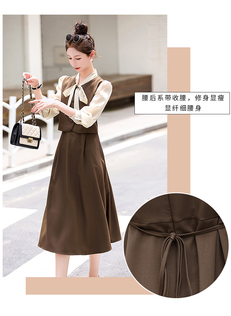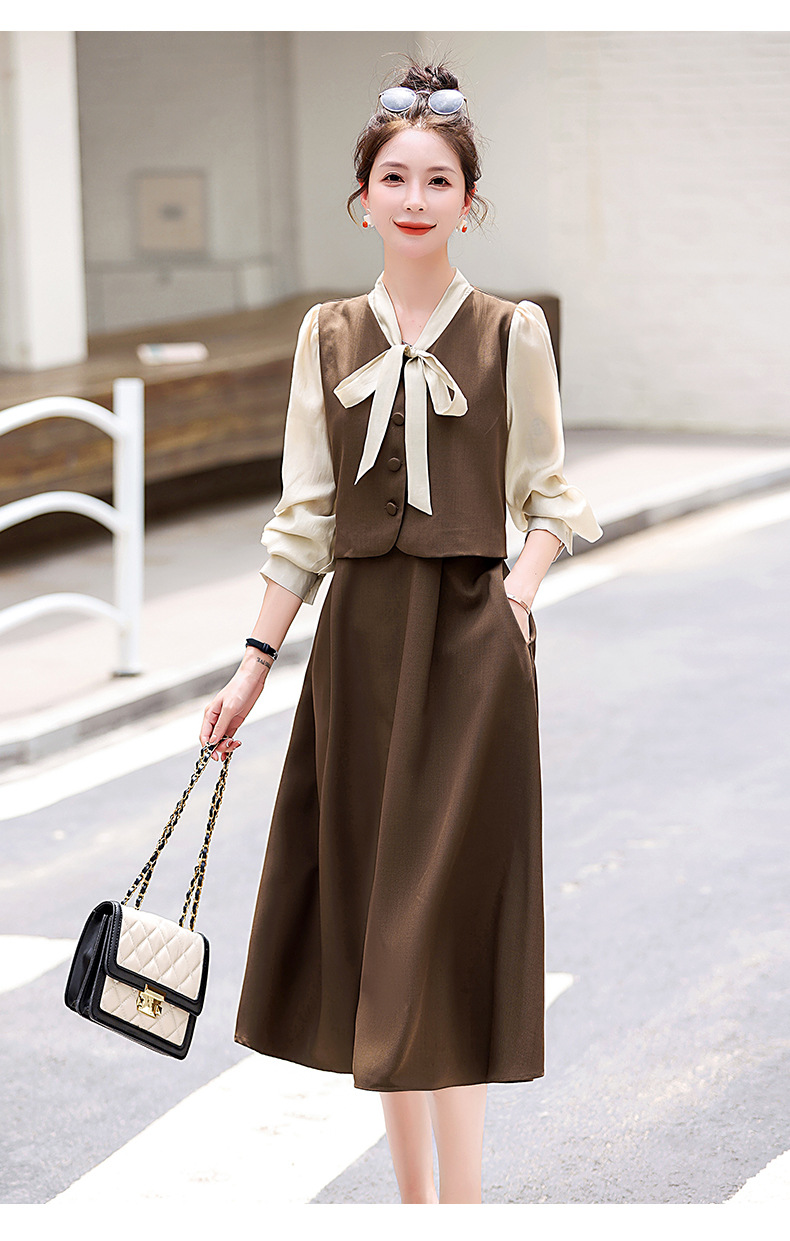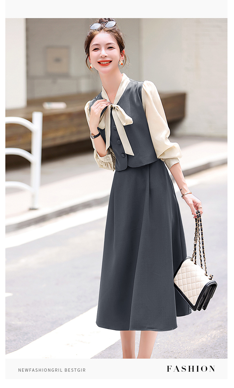 Chiếc váy này có thiết kế như đang mặc hai lớp nhưng thực chất chỉ là một áo liền, rất tiện lợi. Cổ váy được điểm xuyết bằng nơ tạo nên nét duyên dáng. Kiểu dáng ôm nhẹ cơ thể giúp tôn lên các đường nét. Chất vải mềm mại mang lại cảm giác dễ chịu khi mặc. Sản phẩm thích hợp cho những ngày thu mát mẻ, có thể phối hợp cùng giày cao gót hoặc giày đế bằng. | Tên sản phẩm: Váy Đầm Liền Thân Nữ Thắt Nơ Bướm Dáng Ôm Cả Bộ 2 Món Hàng Mùa Xuân Thu Đông - Thời Trang Nữ | Mã sản phẩm: L3971 - Giá: 1.830.000đ | Mã nhà sản xuất: WODIG-G05Hình ảnh sản phẩm
