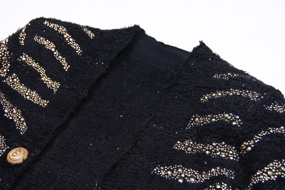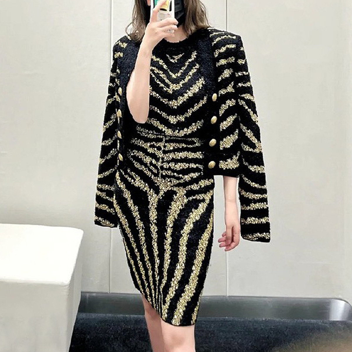 Bộ trang phục này gồm áo khoác và chân váy, được làm từ chất liệu dệt kim mềm mại, điểm nhấn là những viên đá lấp lánh được in nhiệt tinh xảo. Kiểu dáng theo xu hướng thời trang, phù hợp cho những ngày thu mát mẻ. Bạn có thể mặc nguyên bộ để tạo vẻ chỉn chu, hoặc phối áo khoác với quần jeans để phong cách thêm cá tính. Sản phẩm dễ dàng phối đồ và giúp bạn có nhiều vẻ ngoài ưa nhìn. | Tên sản phẩm: Áo Khoác Nữ Áo Len Hàng Mùa Hè Phong Cách Âu Mỹ - Thời Trang Nữ | Mã sản phẩm: T1529 - Giá: 1.620.000đ | Mã nhà sản xuất: SHDPA-G05Hình ảnh sản phẩm
