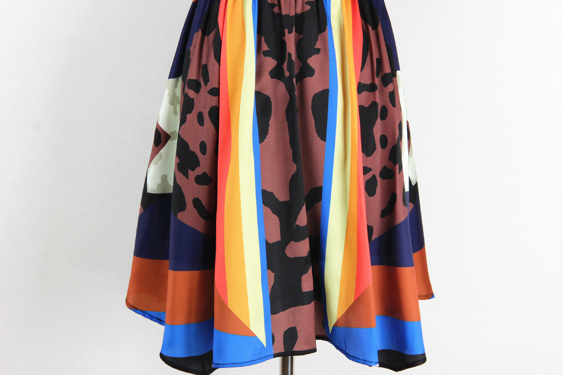 Chiếc váy ngắn với họa tiết sọc kết hợp cùng những mảng màu in nổi bật, tạo nên một thiết kế trẻ trung và năng động. Kiểu dáng váy xòe nhẹ giúp tôn lên dáng vẻ thanh thoát, phù hợp cho những chuyến du lịch hay dạo phố. Chất vải mềm mại mang lại cảm giác thoải mái khi mặc cả ngày dài. Cách phối đồ đơn giản, bạn có thể kết hợp cùng giày bệt hoặc sandal để có một vẻ ngoài hoàn chỉnh. | Tên sản phẩm: Váy Đầm Liền Thân Nữ Họa Tiết Hoa Hàng Mùa Hè - Thời Trang Nữ | Mã sản phẩm: T1600 - Giá: 1.380.000đ | Mã nhà sản xuất: SHDPA-G04Hình ảnh sản phẩm
