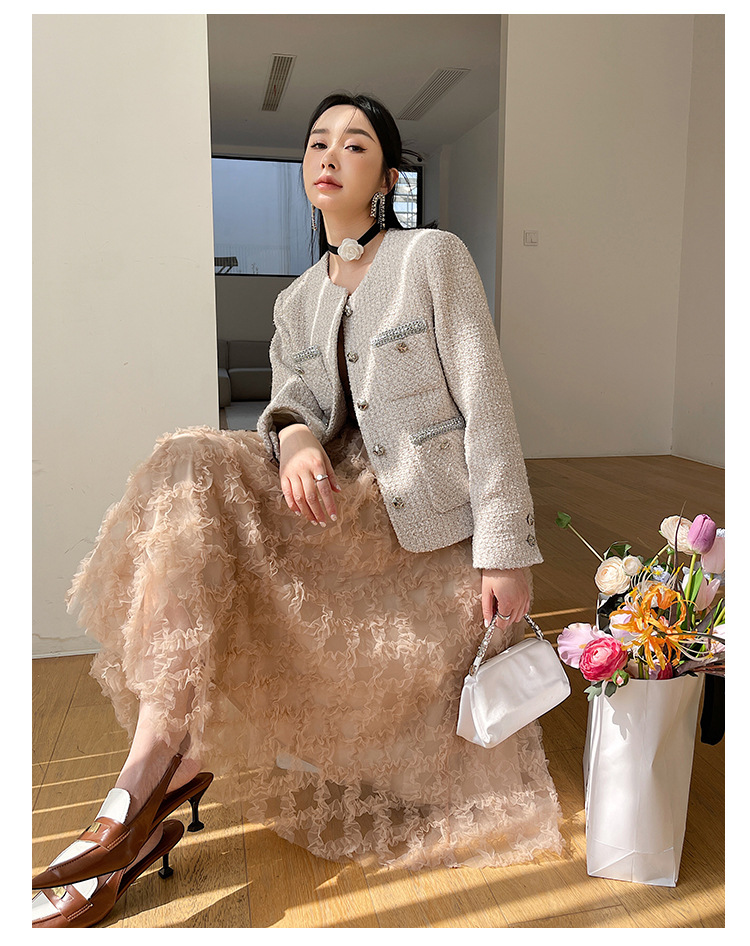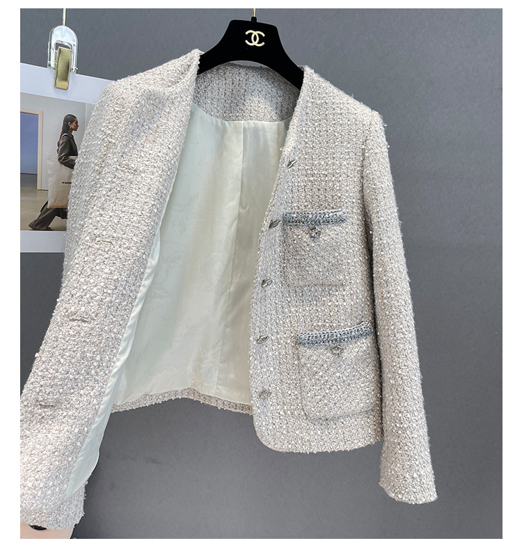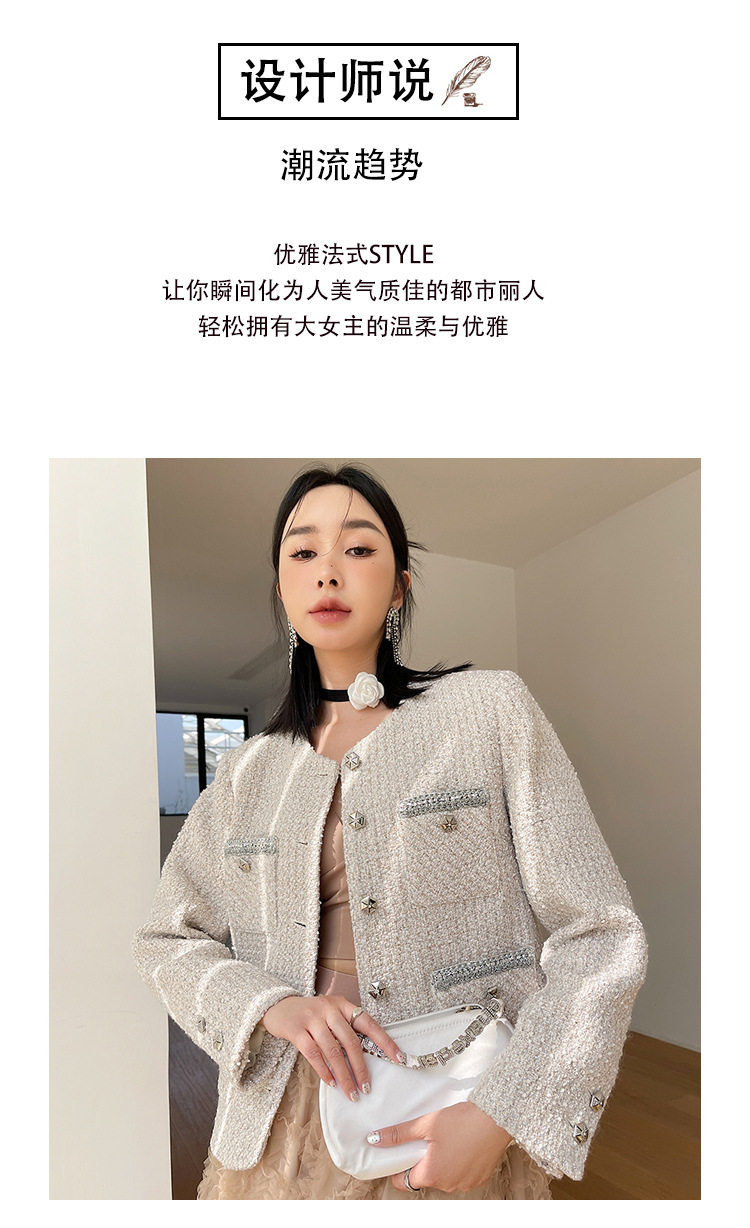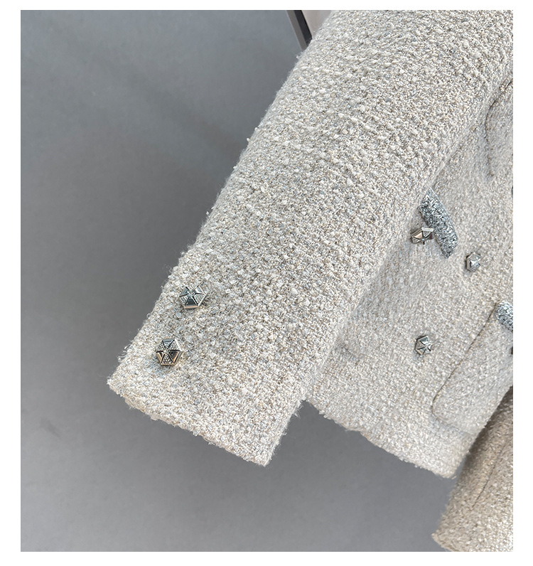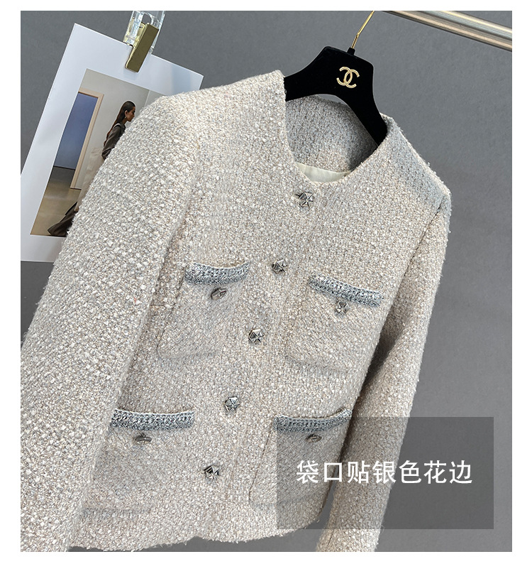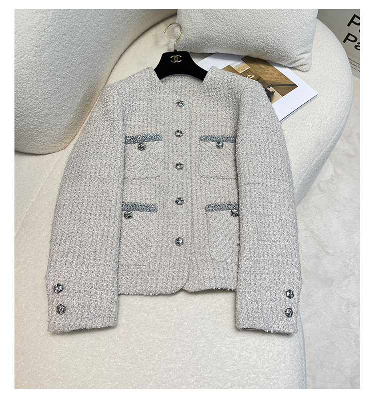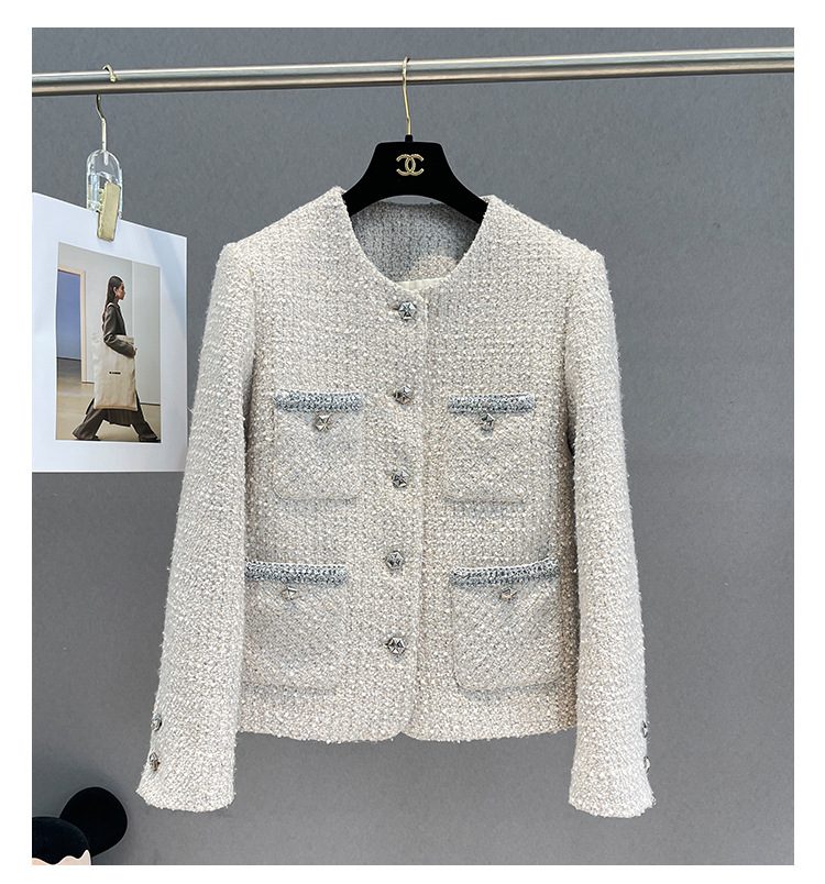 Áo khoác nữ dáng ngắn, kiểu dáng cổ tròn thanh lịch lấy cảm hứng từ phong cách thiết kế Pháp. Chất liệu dệt thô màu vàng ngà nhẹ nhàng, tạo vẻ ngoại hình ảnh dịu dàng. Họa tiết vải kết hợp nhiều sợi đan xen tinh tế, mang đến sự mềm mại và ấm áp vừa phải. Dễ dàng phối cùng áo thun bên trong và quần dài cho những ngày thu se lạnh. Sản phẩm thích hợp cho các dịp gặp mặt hằng ngày, tôn vinh nét duyên dáng giản dị của người mặc. | Tên sản phẩm: Áo Khoác Nữ Họa Tiết Hoa Hàng Mùa Xuân Thu Đông - Thời Trang Nữ | Mã sản phẩm: T1846 - Giá: 2.600.000đ | Mã nhà sản xuất: SUDA-G06Hình ảnh sản phẩm