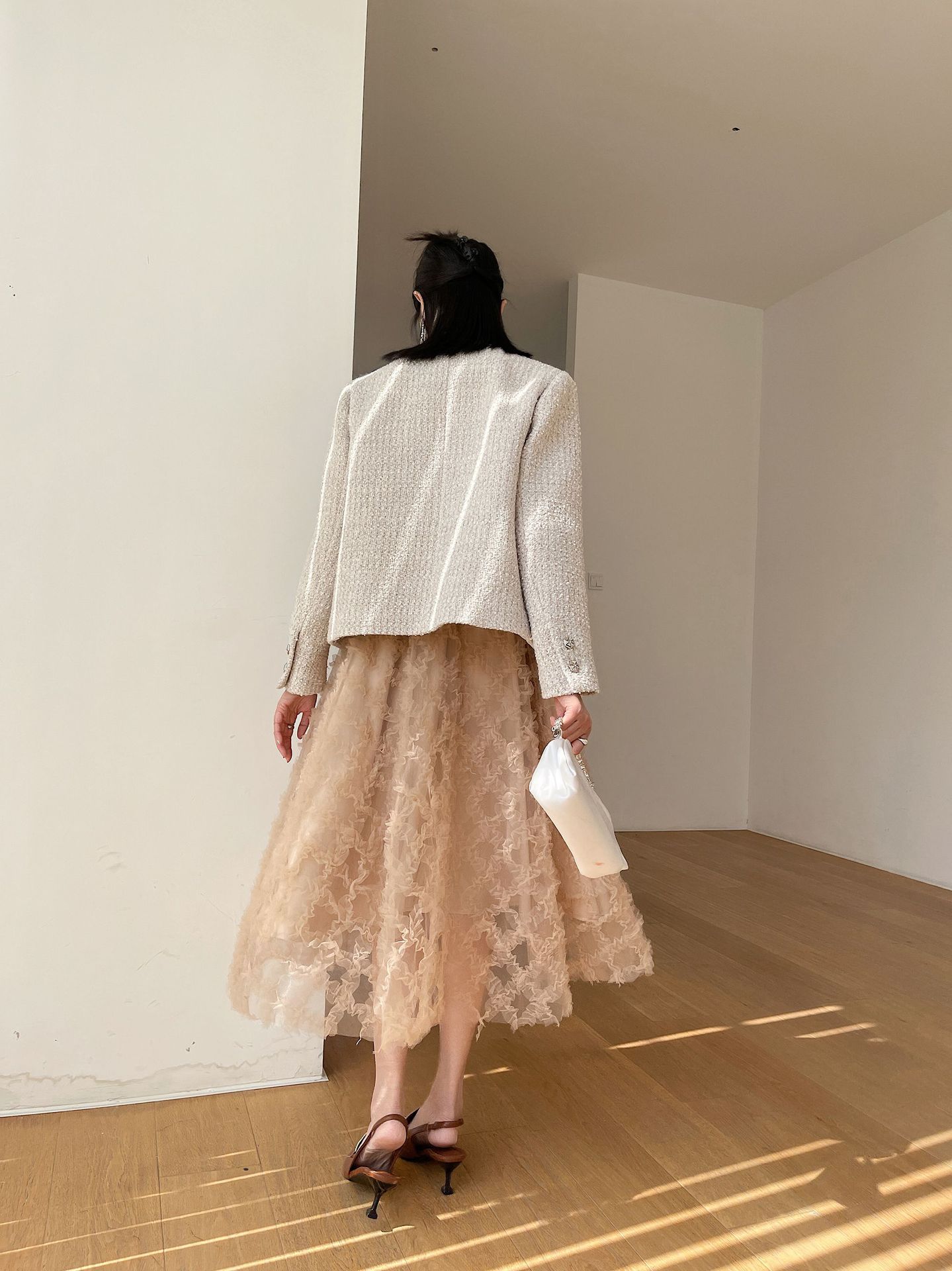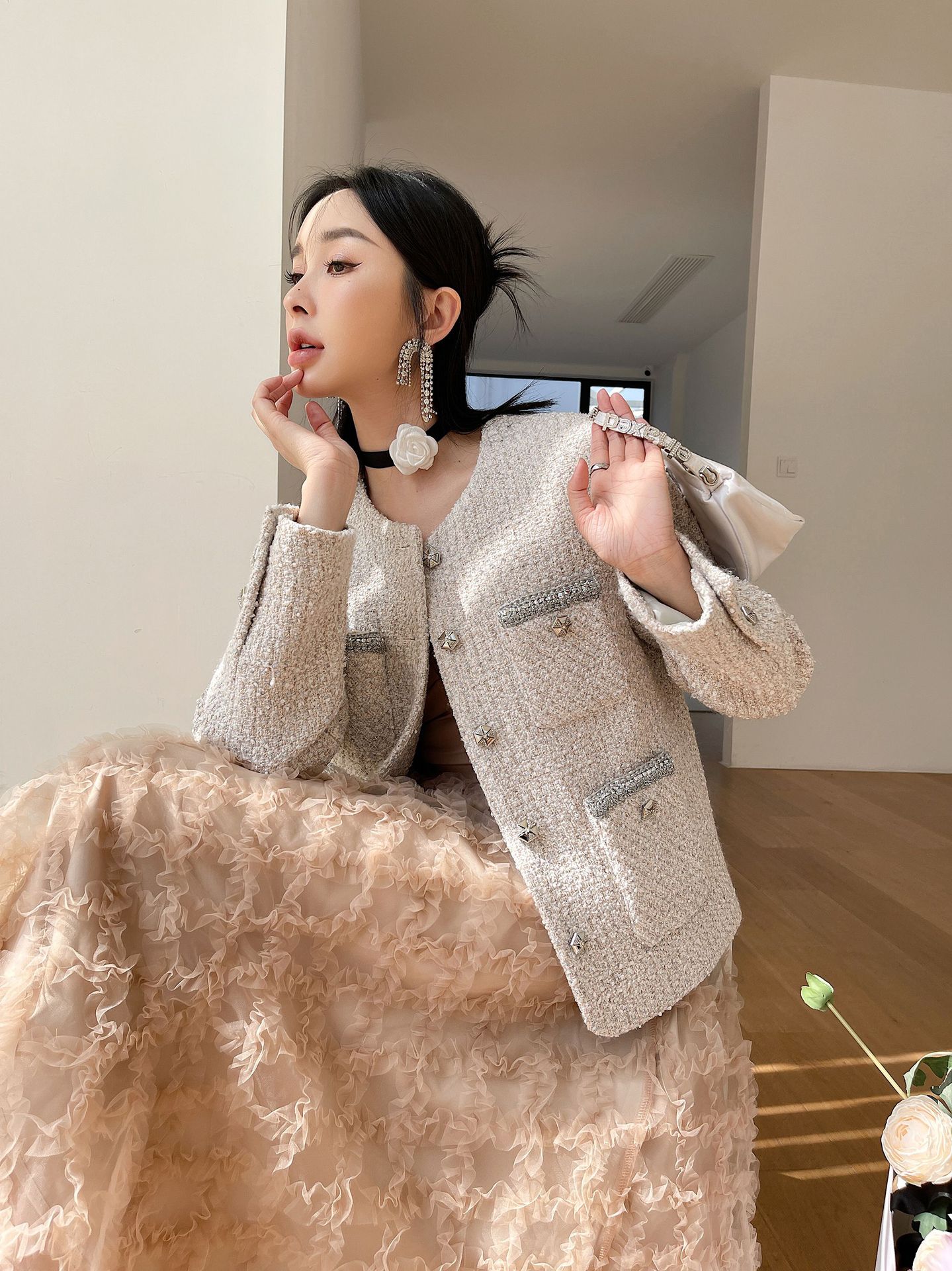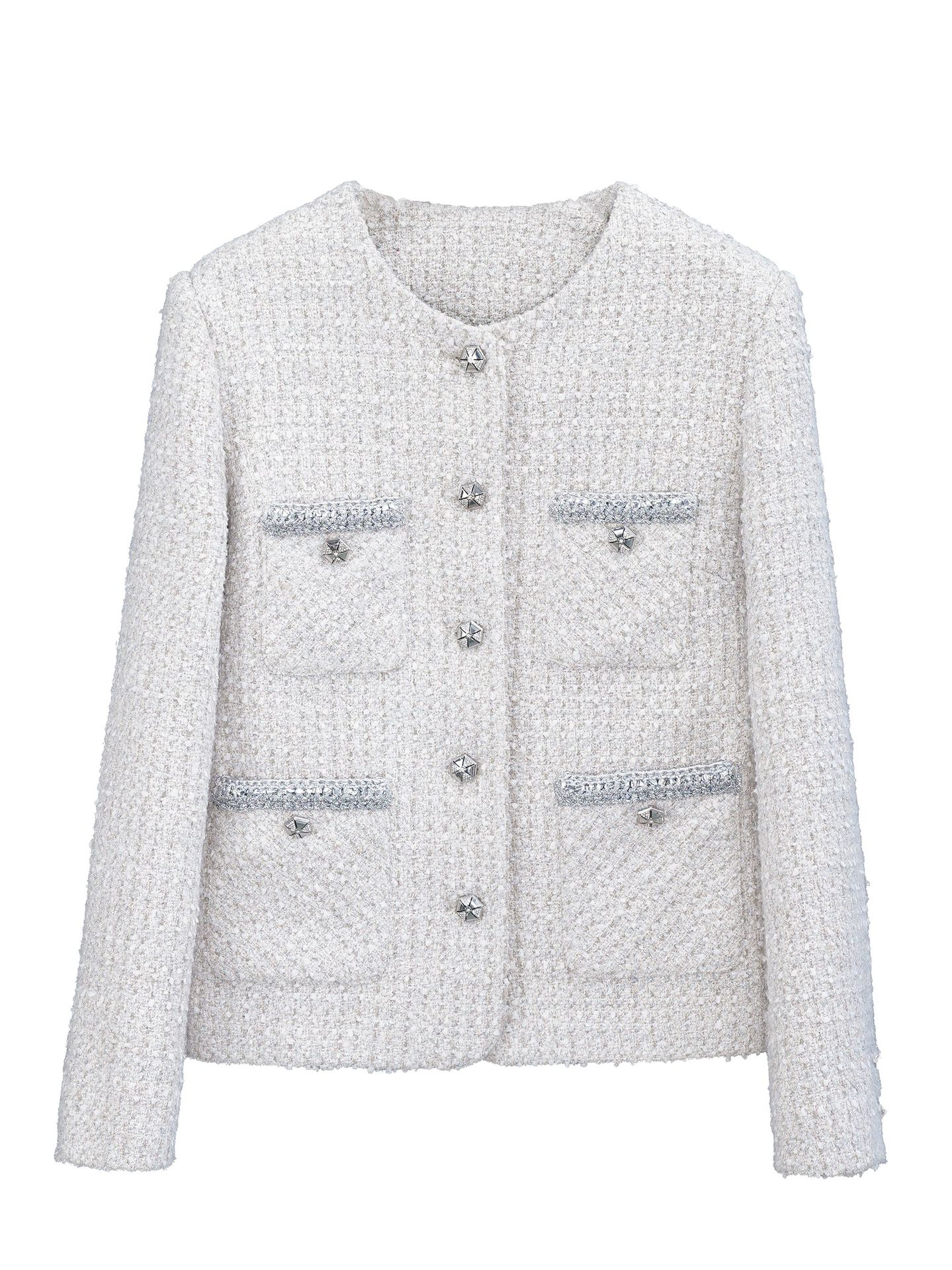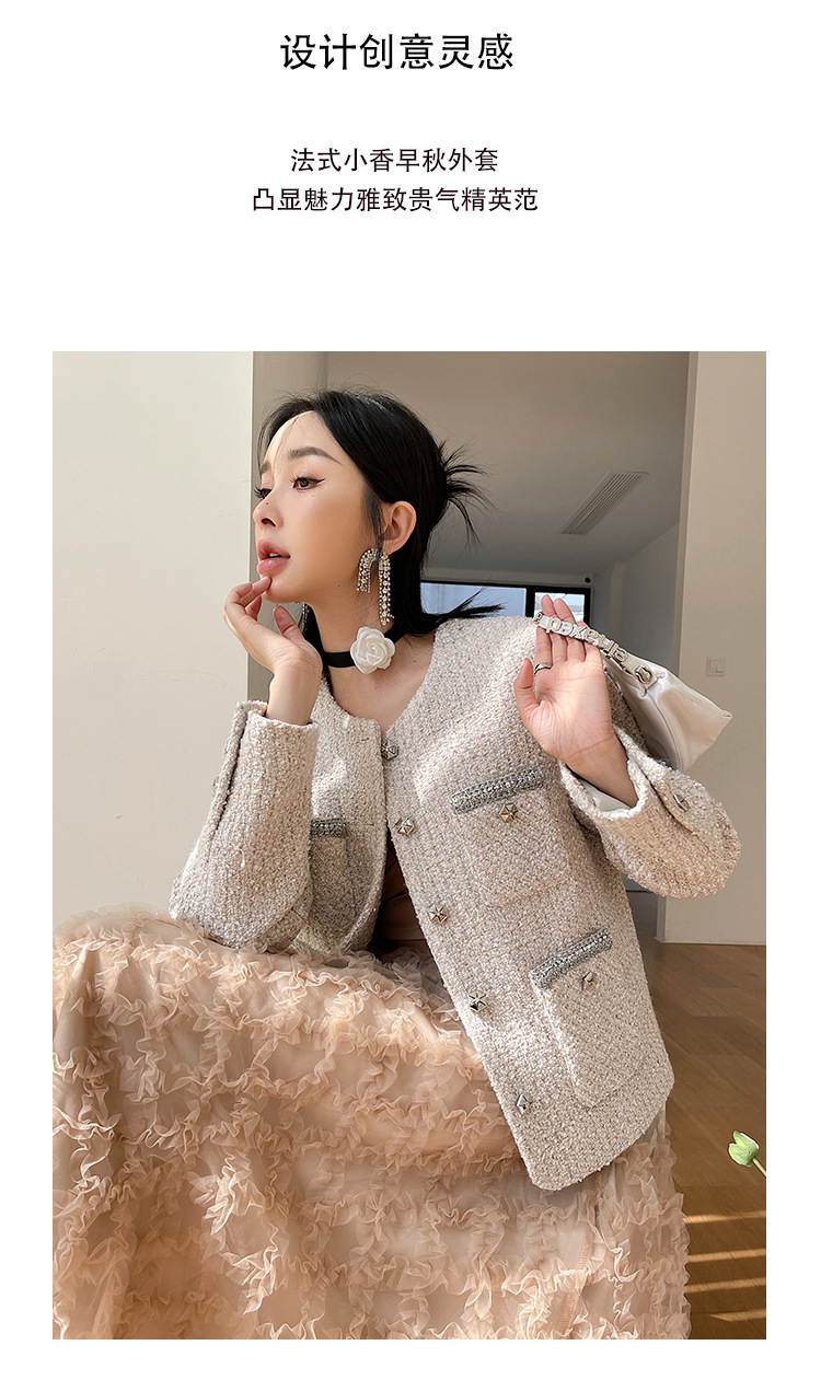 Áo khoác nữ dáng ngắn, kiểu dáng cổ tròn thanh lịch lấy cảm hứng từ phong cách thiết kế Pháp. Chất liệu dệt thô màu vàng ngà nhẹ nhàng, tạo vẻ ngoại hình ảnh dịu dàng. Họa tiết vải kết hợp nhiều sợi đan xen tinh tế, mang đến sự mềm mại và ấm áp vừa phải. Dễ dàng phối cùng áo thun bên trong và quần dài cho những ngày thu se lạnh. Sản phẩm thích hợp cho các dịp gặp mặt hằng ngày, tôn vinh nét duyên dáng giản dị của người mặc. | Tên sản phẩm: Áo Khoác Nữ Họa Tiết Hoa Hàng Mùa Xuân Thu Đông - Thời Trang Nữ | Mã sản phẩm: T1846 - Giá: 2.600.000đ | Mã nhà sản xuất: SUDA-G06Hình ảnh sản phẩm