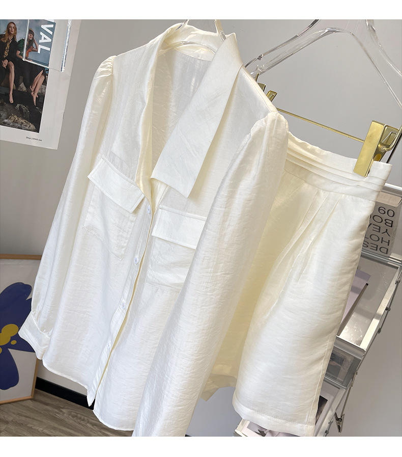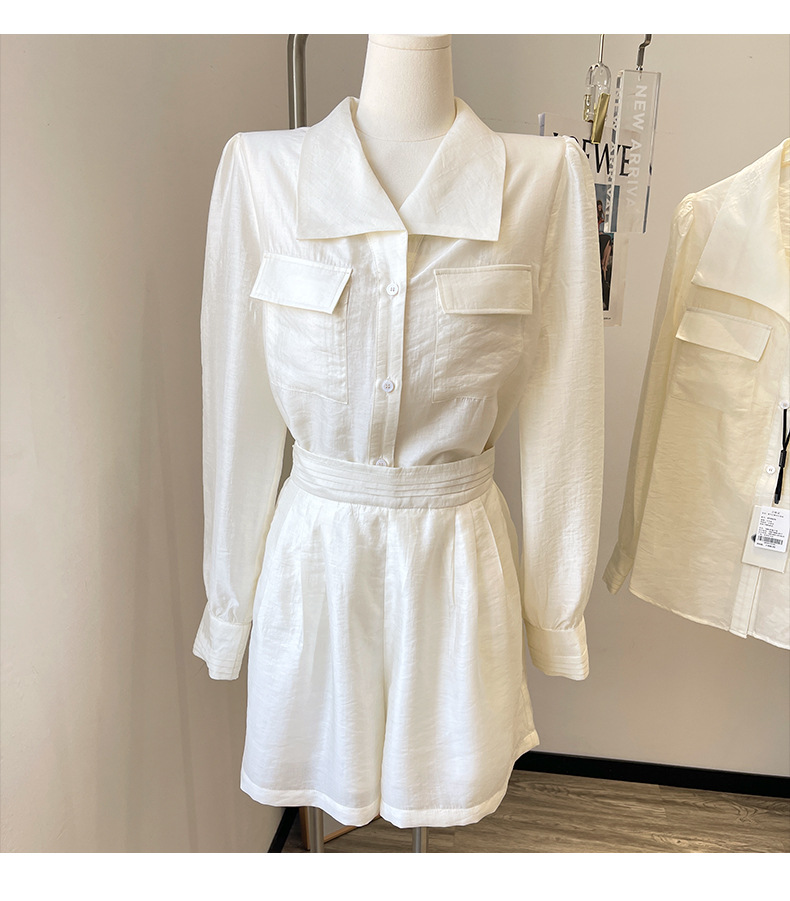 Bộ trang phục hai mảnh này gồm áo tay dài và quần short cạp cao, được thiết kế để tôn dáng một cách tinh tế. Chất vải mềm mại, thoáng mát, rất phù hợp cho tiết trời đầu xuân. Bạn có thể mặc nguyên bộ để tạo vẻ chỉn chu, hoặc phối áo với các loại quần khác nhau. Kiểu dáng trẻ trung, dễ dàng phối đồ cho nhiều dịp sinh hoạt thường ngày. | Tên sản phẩm: Áo Sơ Mi Nữ Dài Tay Cả Bộ 2 Món Hàng Mùa Xuân Thu Đông - Thời Trang Nữ | Mã sản phẩm: T1914 - Giá: 1.640.000đ | Mã nhà sản xuất: SUDA-G05Hình ảnh sản phẩm