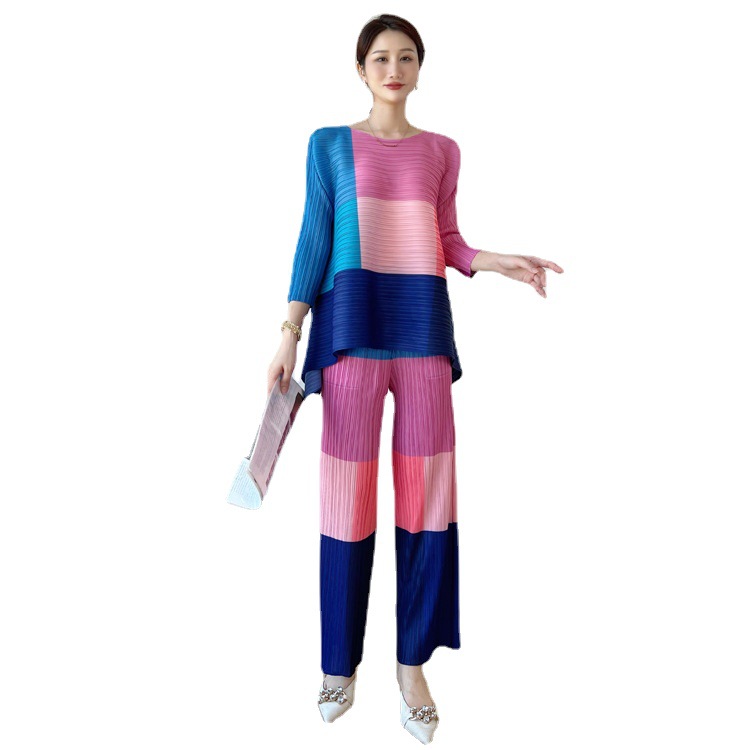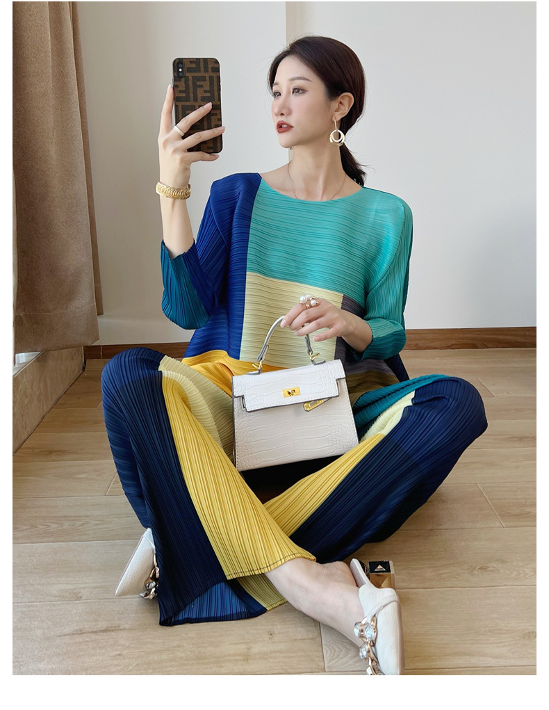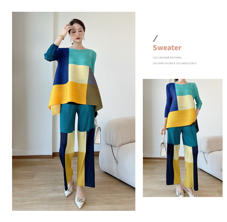 Bộ trang phục hai mảnh này có điểm nhấn đặc biệt ở các nếp gấp mềm mại và sự phối hợp màu sắc cá tính, tạo nên vẻ đẹp hiện đại và tươi trẻ. Kiểu dáng rộng rãi thoải mái, phù hợp cho nhiều dáng người. Chất vải co giãn nhẹ tạo cảm giác dễ chịu khi mặc. Bạn có thể phối mặc bộ này như một set đồ hoàn chỉnh để đi làm, đi chơi, hay tách riêng từng món để phối với các trang phục khác nhau. | Tên sản phẩm: Đồ Bộ Nữ Big Size Ngoại Cỡ Cả Bộ 2 Món Trông Trẻ Hơn Tuổi - Thời Trang Nữ | Mã sản phẩm: T2054 - Giá: 1.880.000đ | Mã nhà sản xuất: DODGA-G05Hình ảnh sản phẩm