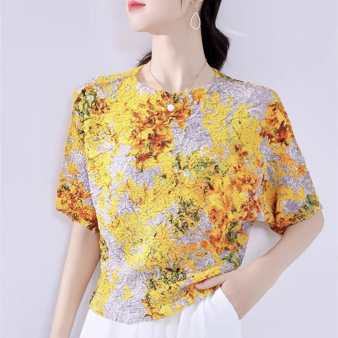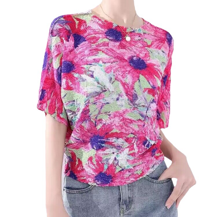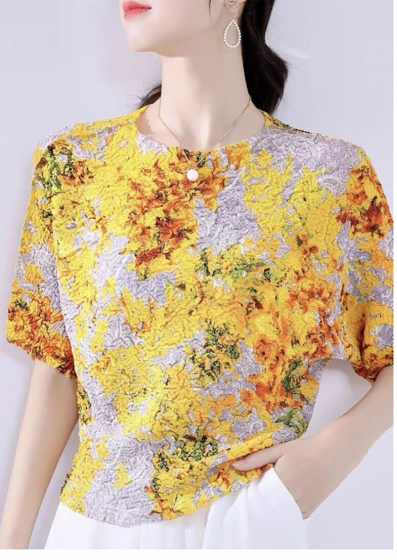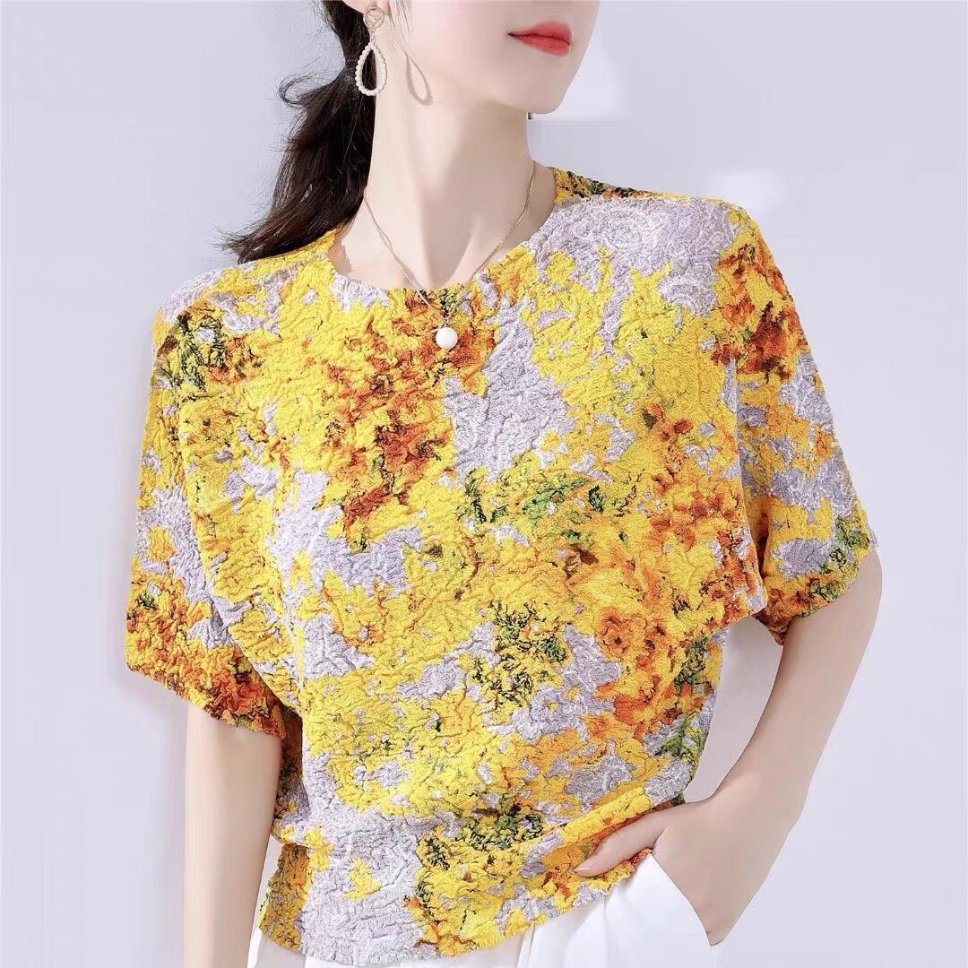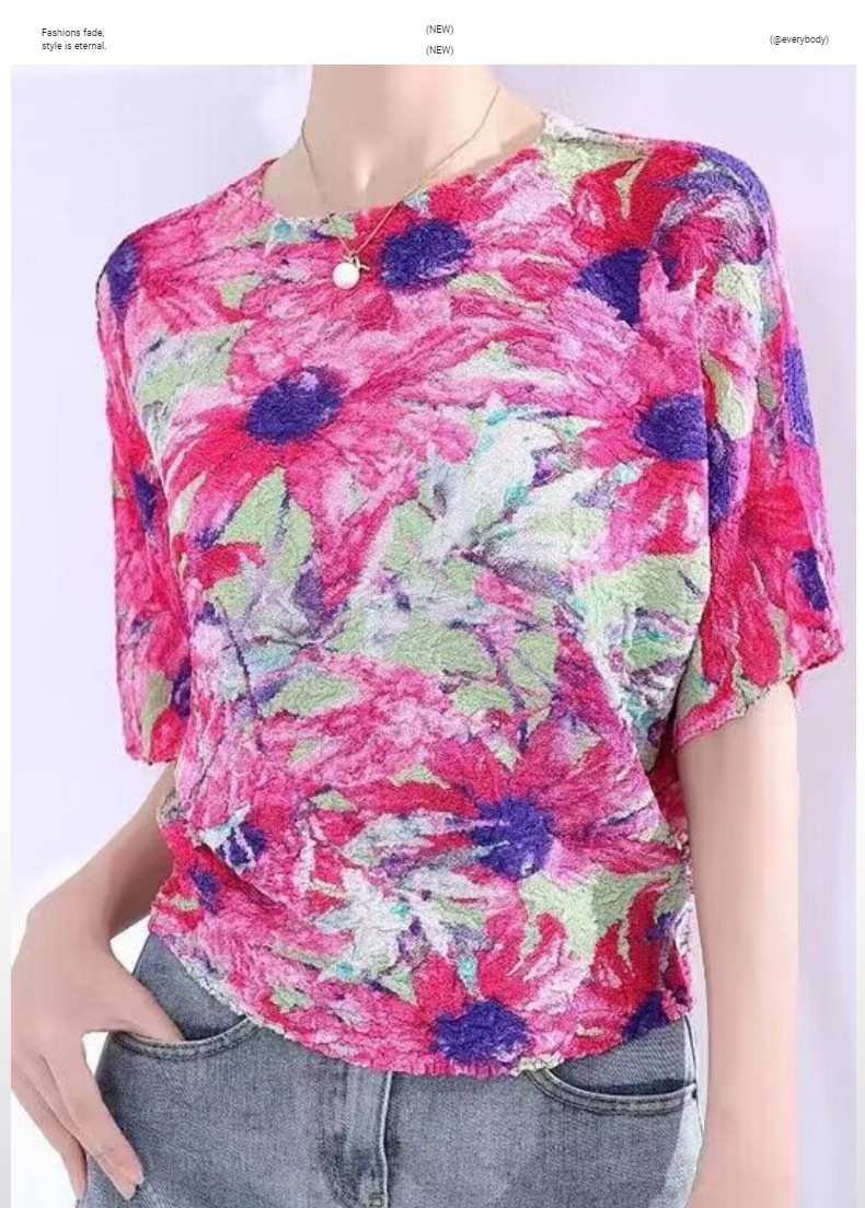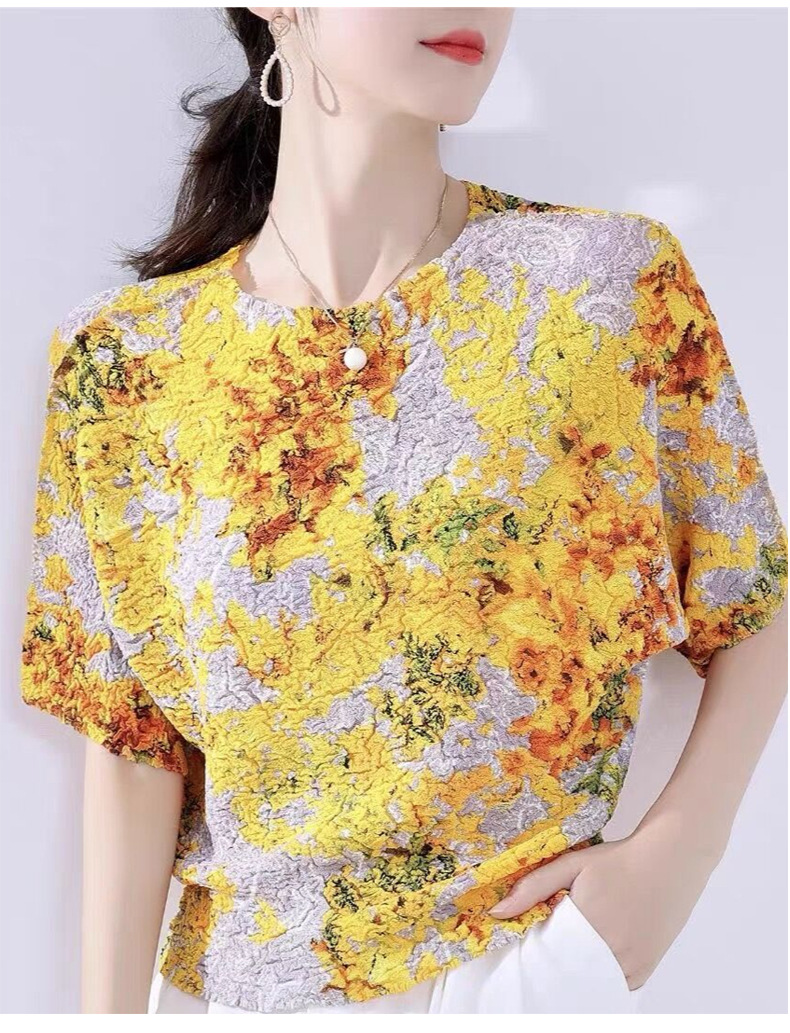 Áo thun tay ngắn với họa tiết in gợn sóng độc đáo, mang phong cách trẻ trung và năng động. Thiết kế cổ tròn kết hợp cùng kiểu tay dáng rộng thoải mái, tạo cảm giác dễ chịu khi mặc. Chất vải mềm mại và thoáng khí, phù hợp cho những ngày hè oi bức. Có thể phối cùng quần shorts hoặc chân váy để tạo nên những bộ trang phục hàng ngày thật thoải mái và cá tính. | Tên sản phẩm: Áo Thun Nữ Ngắn Tay Họa Tiết Hoa Thoáng Khí Hàng Mùa Hè - Thời Trang Nữ | Mã sản phẩm: T2062 - Giá: 1.350.000đ | Mã nhà sản xuất: DODGA-G04Hình ảnh sản phẩm