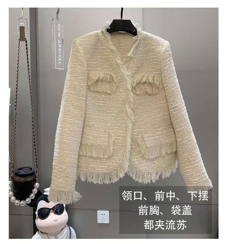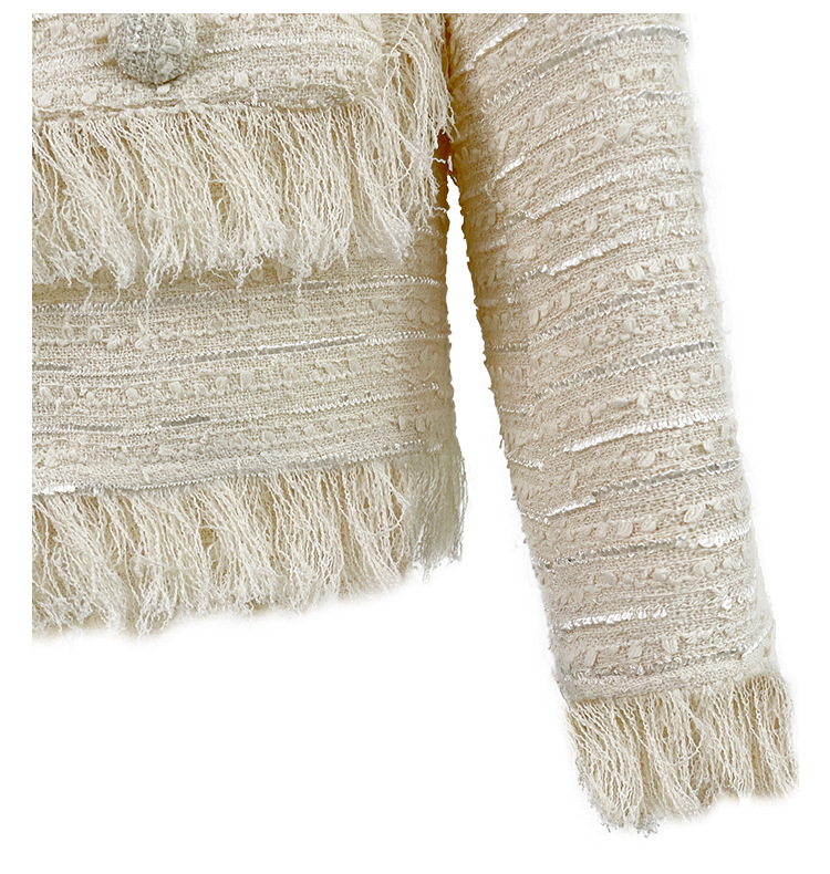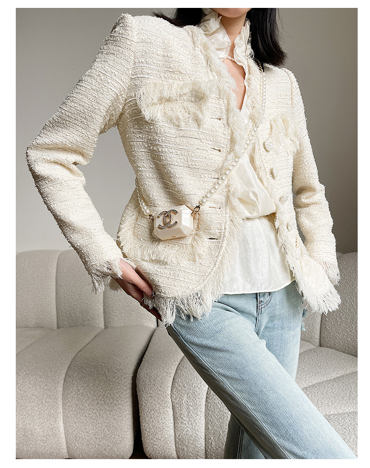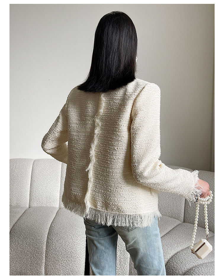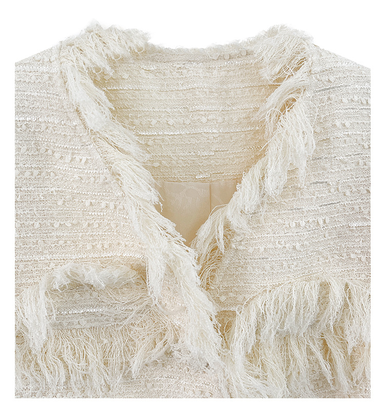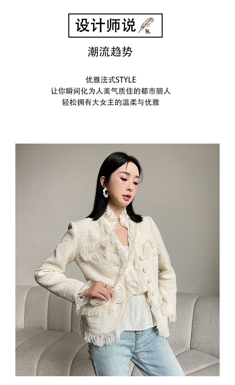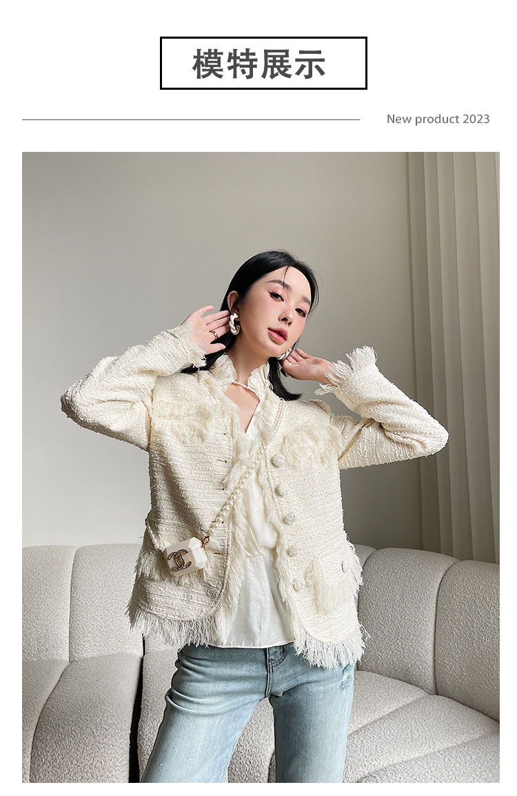Áo khoác nữ kiểu dáng Pháp, điểm nhấn từ chất dệt thô kết hợp đường viền tua rua mềm mại. Thiết kế cổ chữ V tôn dáng, màu trắng dễ phối đồ. Sản phẩm phù hợp cho tiết thu đông, mặc cùng quần tây hoặc chân váy đều thanh lịch. Chỉ cần giặt nhẹ và phơi khô tự nhiên để giữ form áo và chất vải bền đẹp theo thời gian. | Tên sản phẩm: Áo Khoác Nữ Họa Tiết Hoa Cổ Chữ V Hàng Mùa Xuân Thu Đông - Thời Trang Nữ | Mã sản phẩm: T2772 - Giá: 1.920.000đ | Mã nhà sản xuất: SUDA-G05Hình ảnh sản phẩm