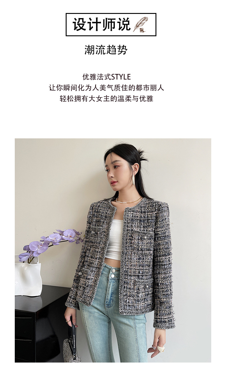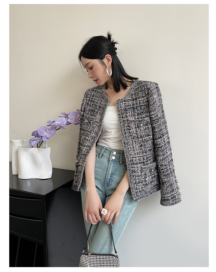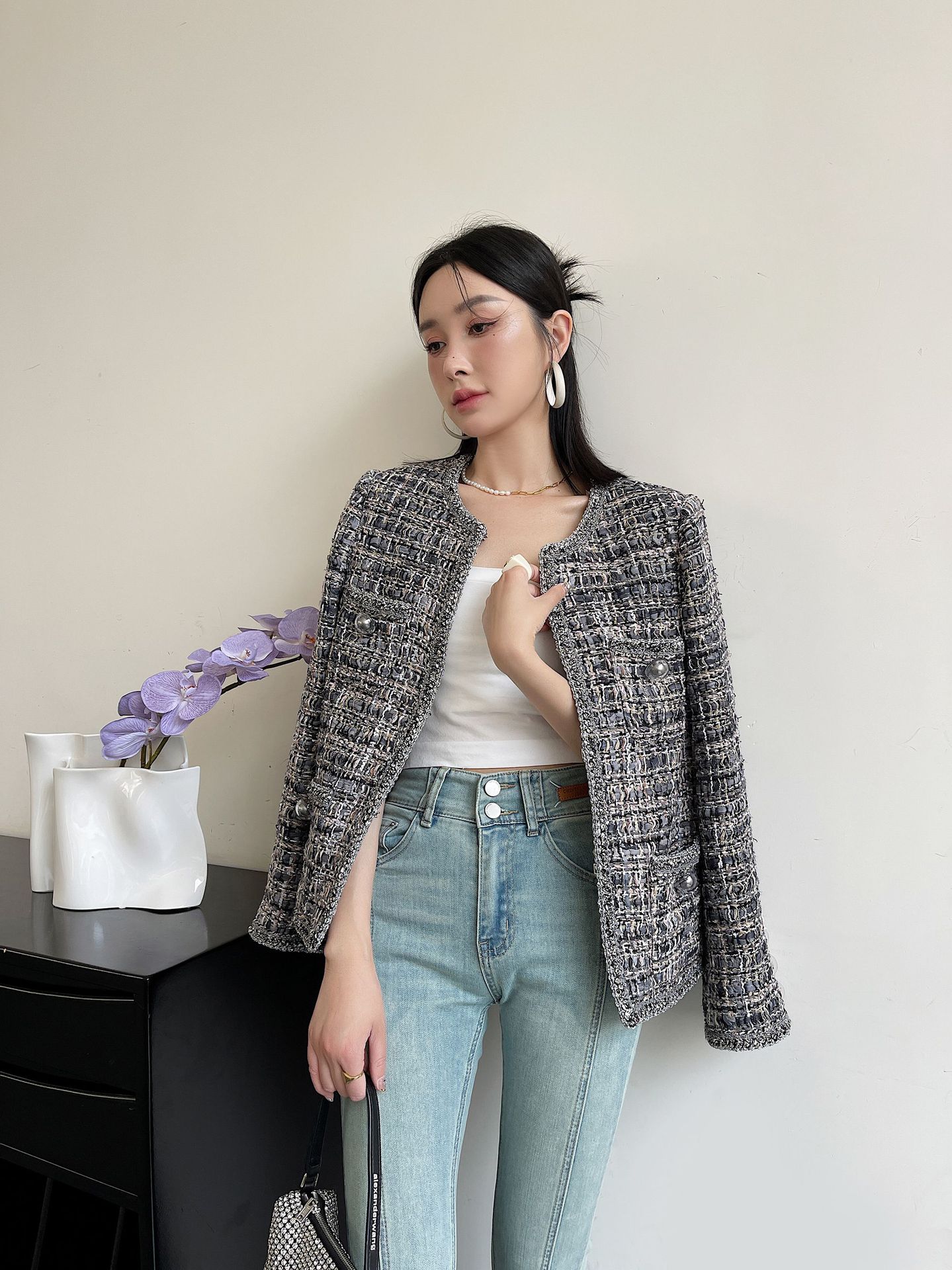 Áo khoác nữ dáng ngắn, kiểu cách Pháp thanh lịch với chất liệu vải dệt thô pha trộn từ sợi bông và sợi tổng hợp. Thiết kế cổ tròn điểm nhấn bằng đường viền ren tinh tế, kết hợp khuy cài kín đáo tạo nên vẻ ngoại hình gọn gàng. Sản phẩm thích hợp mặc trong tiết trời thu se lạnh, dễ dàng phối cùng váy hoặc quần dài để tạo set đồ cân đối. Có thể giặt bằng tay hoặc máy ở chế độ nhẹ để giữ form áo và chất vải bền lâu. | Tên sản phẩm: Áo Khoác Nữ Chất Liệu Vải Bông Họa Tiết Hoa Hàng Mùa Xuân Thu Đông - Thời Trang Nữ | Mã sản phẩm: T2784 - Giá: 3.280.000đ | Mã nhà sản xuất: SUDA-G06Hình ảnh sản phẩm