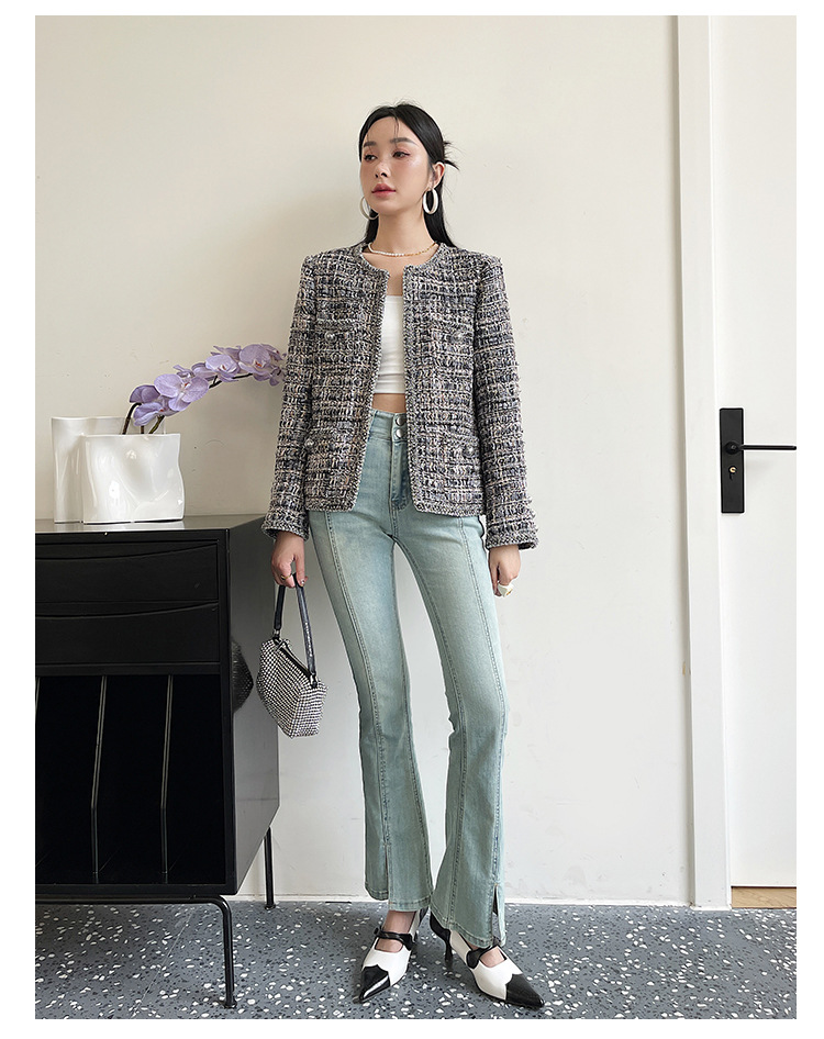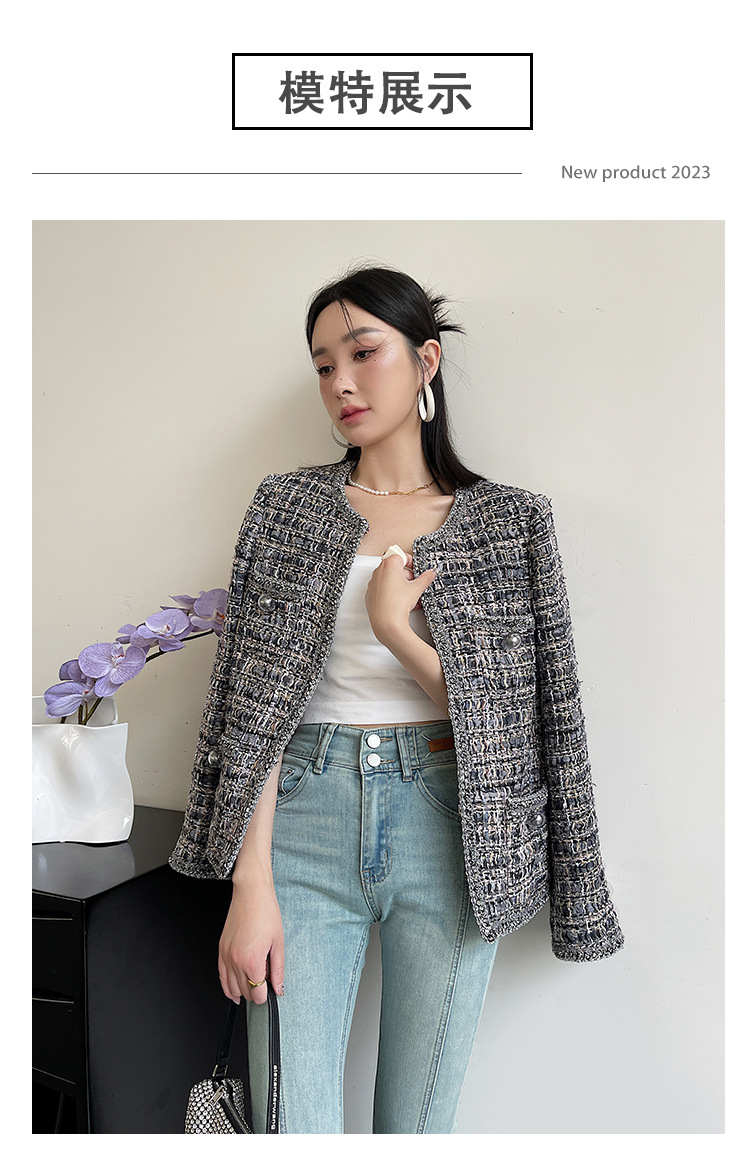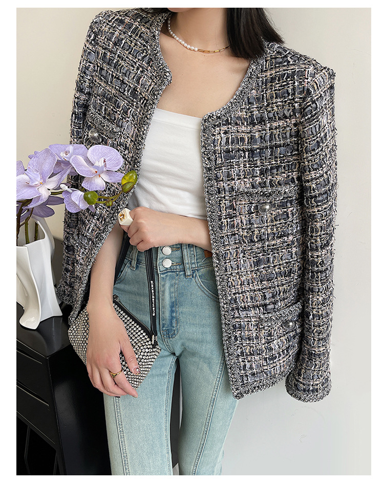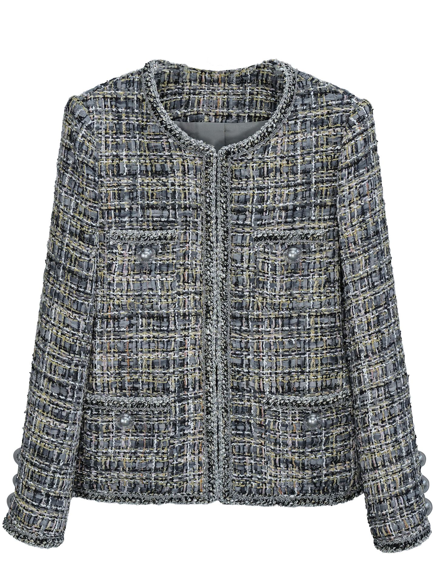 Áo khoác nữ dáng ngắn, kiểu cách Pháp thanh lịch với chất liệu vải dệt thô pha trộn từ sợi bông và sợi tổng hợp. Thiết kế cổ tròn điểm nhấn bằng đường viền ren tinh tế, kết hợp khuy cài kín đáo tạo nên vẻ ngoại hình gọn gàng. Sản phẩm thích hợp mặc trong tiết trời thu se lạnh, dễ dàng phối cùng váy hoặc quần dài để tạo set đồ cân đối. Có thể giặt bằng tay hoặc máy ở chế độ nhẹ để giữ form áo và chất vải bền lâu. | Tên sản phẩm: Áo Khoác Nữ Chất Liệu Vải Bông Họa Tiết Hoa Hàng Mùa Xuân Thu Đông - Thời Trang Nữ | Mã sản phẩm: T2784 - Giá: 3.280.000đ | Mã nhà sản xuất: SUDA-G06Hình ảnh sản phẩm