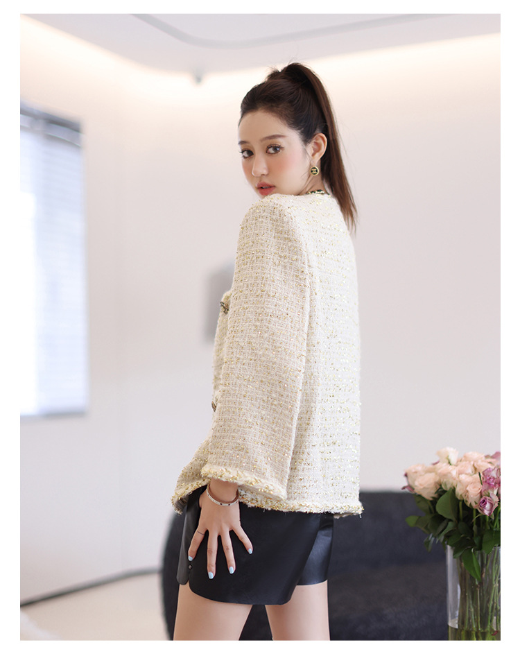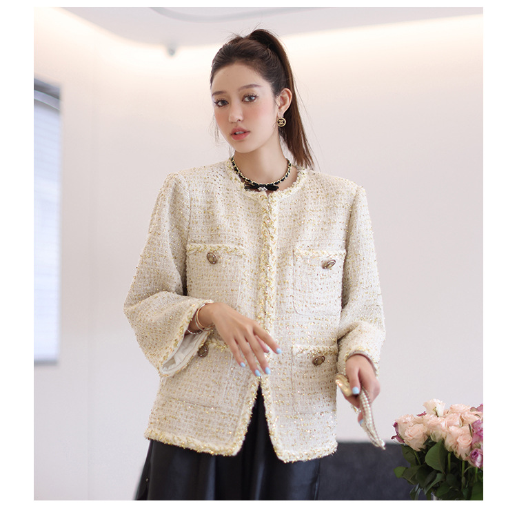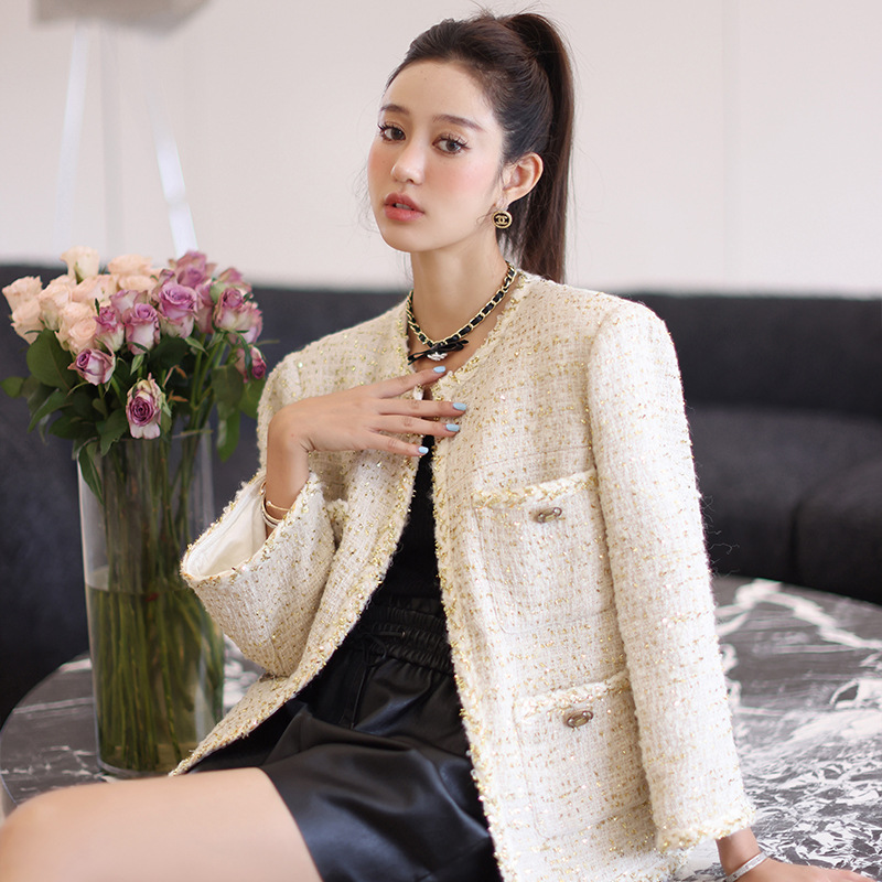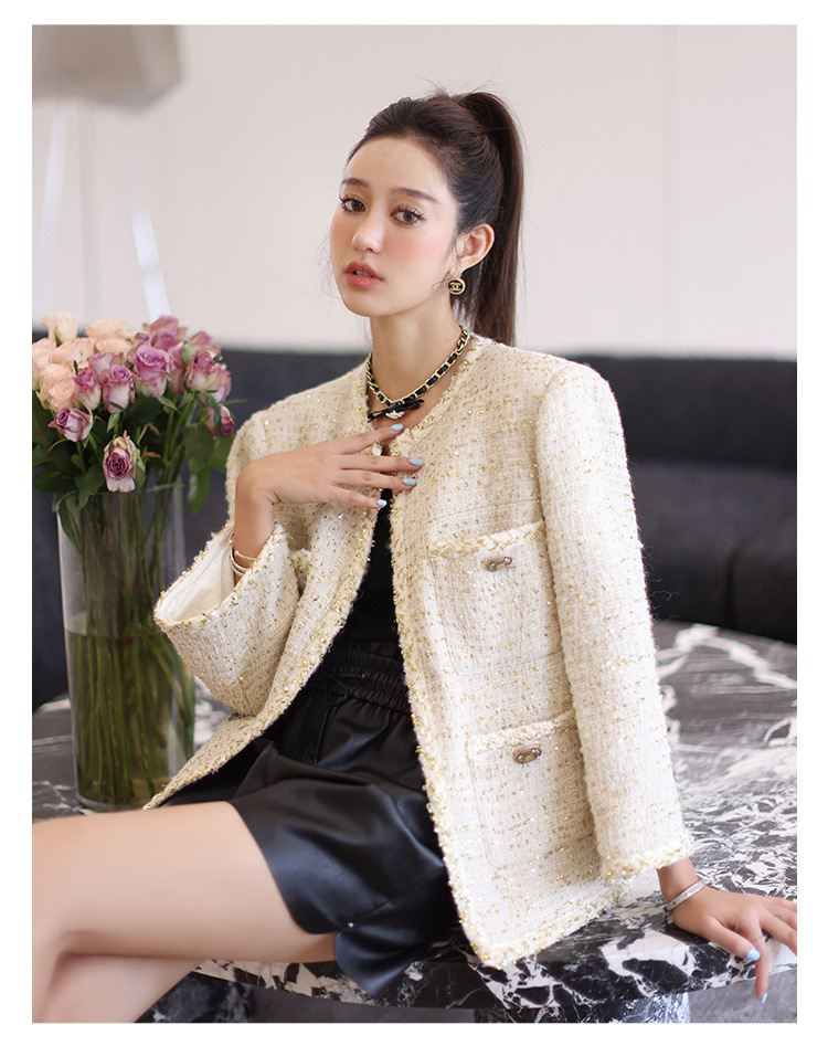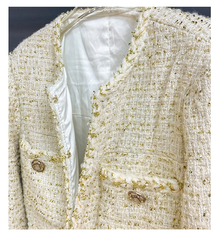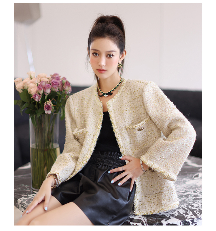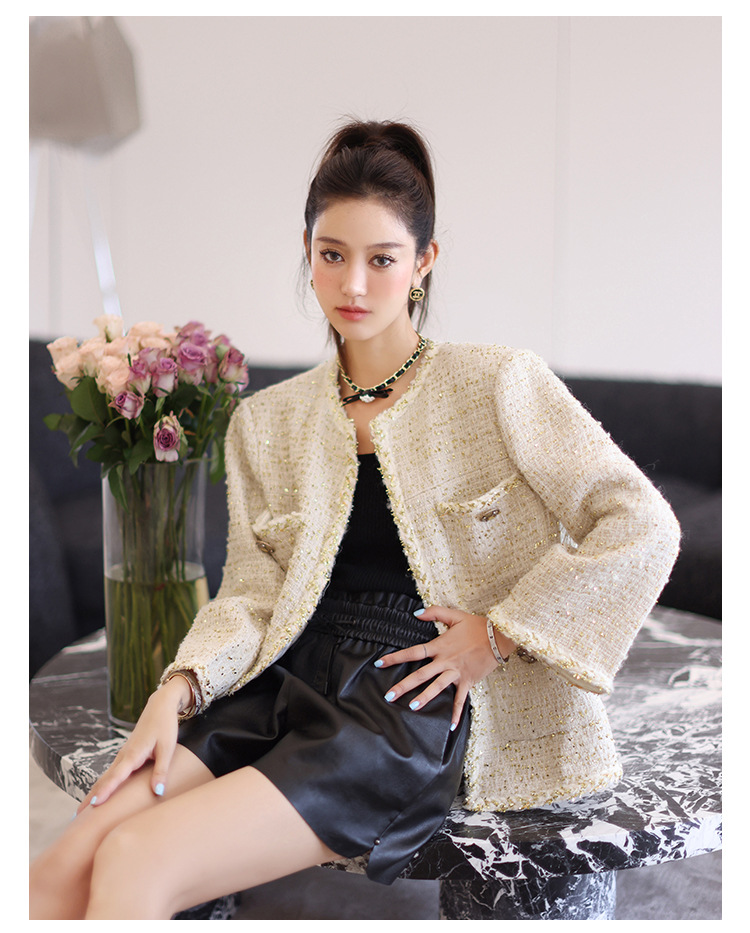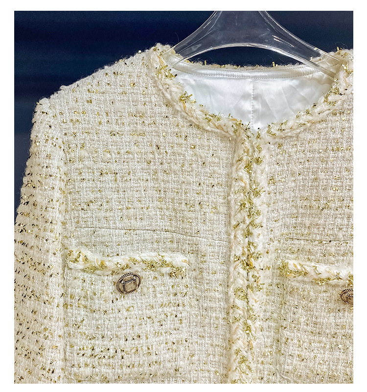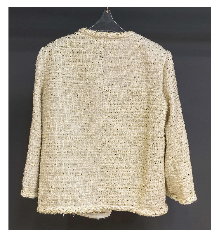 Áo khoác kiểu dáng ngắn, cổ tròn, phù hợp cho mùa thu. Chất liệu vải mềm mại, thoải mái khi mặc. Điểm nhấn là những chi tiết hạt lấp lánh tinh tế trên nền áo, tạo nên vẻ đẹp nhẹ nhàng, nữ tính. Kiểu dáng này dễ dàng phối cùng quần tây hoặc chân váy. Sản phẩm mang đến một diện mạo thanh lịch, phù hợp cho nhiều dịp trong ngày. | Tên sản phẩm: Áo Khoác Nữ Hàng Mùa Xuân Thu Đông - Thời Trang Nữ | Mã sản phẩm: T2852 - Giá: 2.600.000đ | Mã nhà sản xuất: SUDA-G06Hình ảnh sản phẩm
