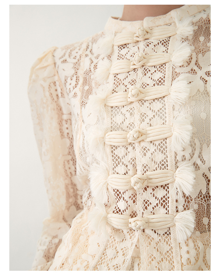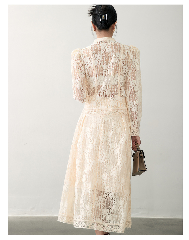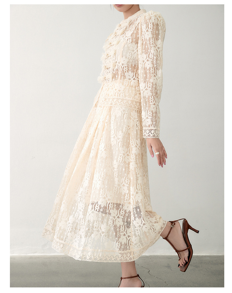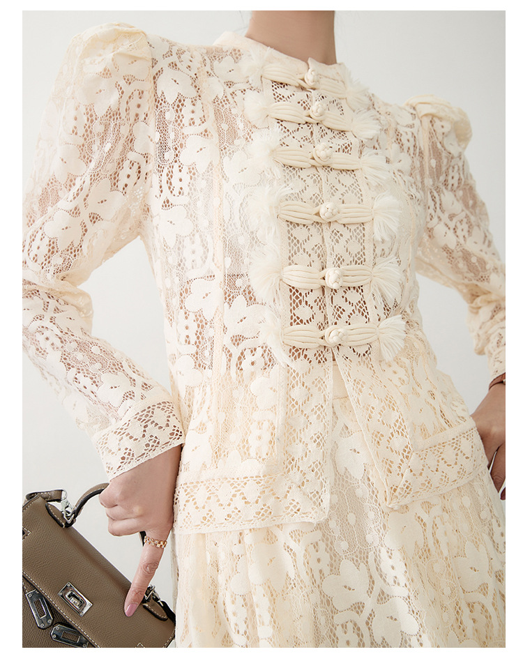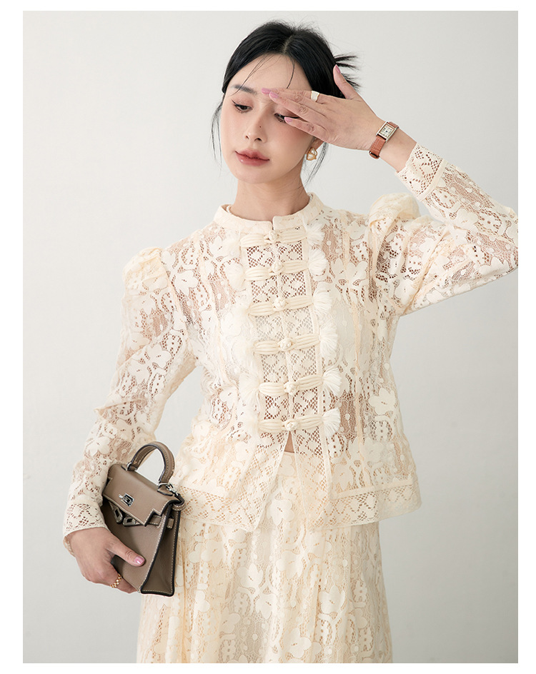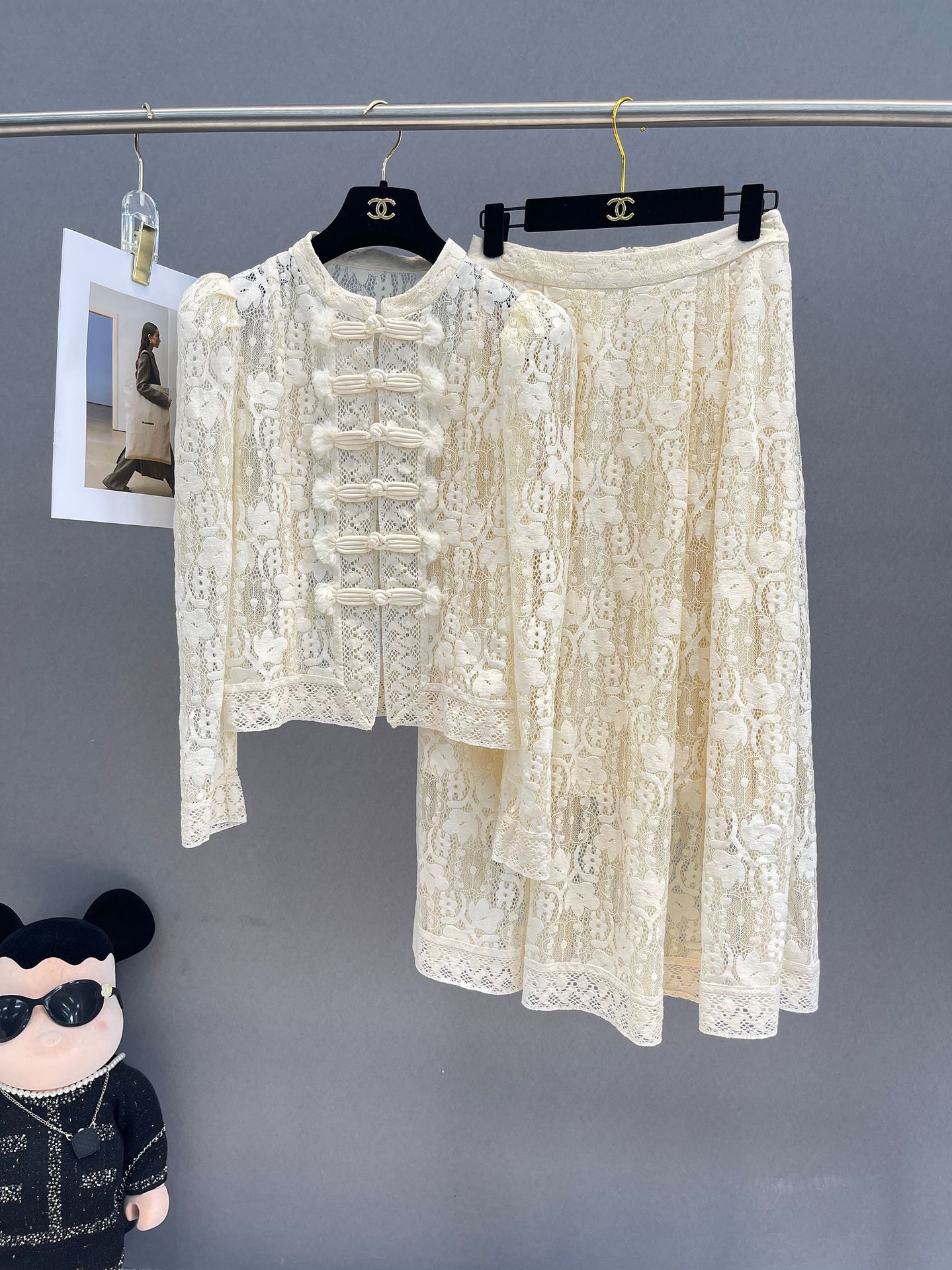 Bộ trang phục hai mảnh này có áo khoác kiểu cách và chân váy ngắn, mang phong cách thiết kế cổ điển. Chất liệu chính là vải ren có những đường cắt tỉa tinh tế. Áo được điểm xuyết bằng nút thắt truyền thống thay cho khuy cài thông thường, tạo điểm nhấn độc đáo. Có thể mặc nguyên bộ để tạo sự chỉn chu, hoặc tách riêng từng món để phối với các trang phục khác. Phù hợp cho những dịp cần sự gọn gàng, nhẹ nhàng. | Tên sản phẩm: Áo Khoác Nữ Chất Liệu Ren Cả Bộ 2 Món Hàng Mùa Hè - Thời Trang Nữ | Mã sản phẩm: T2967 - Giá: 2.780.000đ | Mã nhà sản xuất: SUDA-G06Hình ảnh sản phẩm