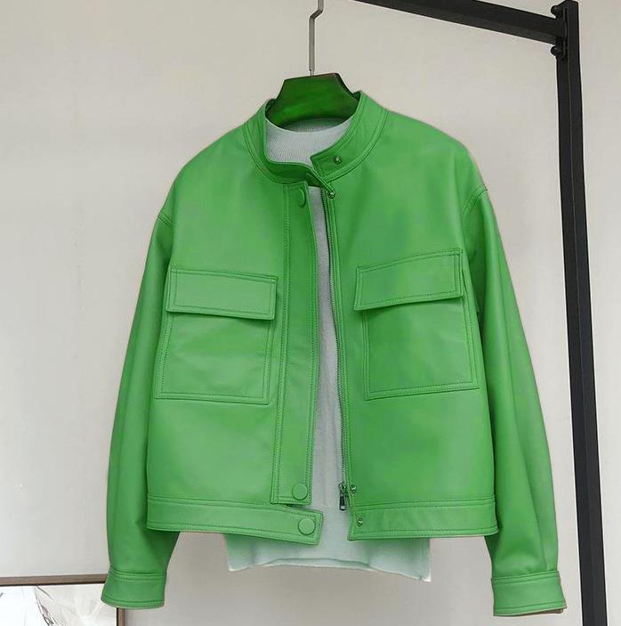 Áo khoác da cổ dựng kiểu dáng ngắn, dành cho nữ. Sản phẩm được làm từ chất liệu da cừu mềm mại và bền chắc, mang lại cảm giác dễ chịu khi mặc. Thiết kế có các túi tiện dụng, phù hợp cho thời tiết mùa xuân và mùa thu. Bạn có thể phối cùng quần jeans và áo thun để tạo vẻ ngoài năng động. Mặc sản phẩm và giữ gìn bằng cách lau nhẹ với vải mềm khi cần. | Tên sản phẩm: Áo Da Nữ Chất Liệu Da Bò Hàng Mùa Xuân Thu Đông Phong Cách Hàn Quốc - Thời Trang Nữ | Mã sản phẩm: T3665 - Giá: 3.330.000đ | Mã nhà sản xuất: HADA-G06Hình ảnh sản phẩm