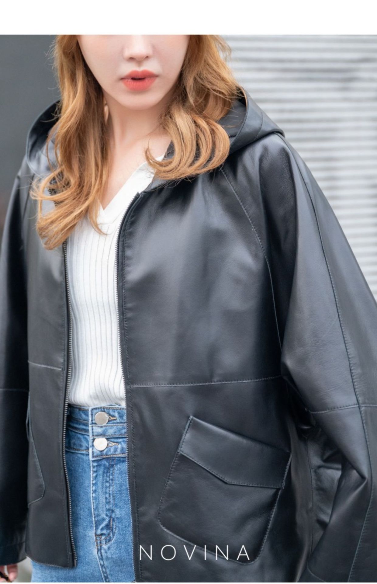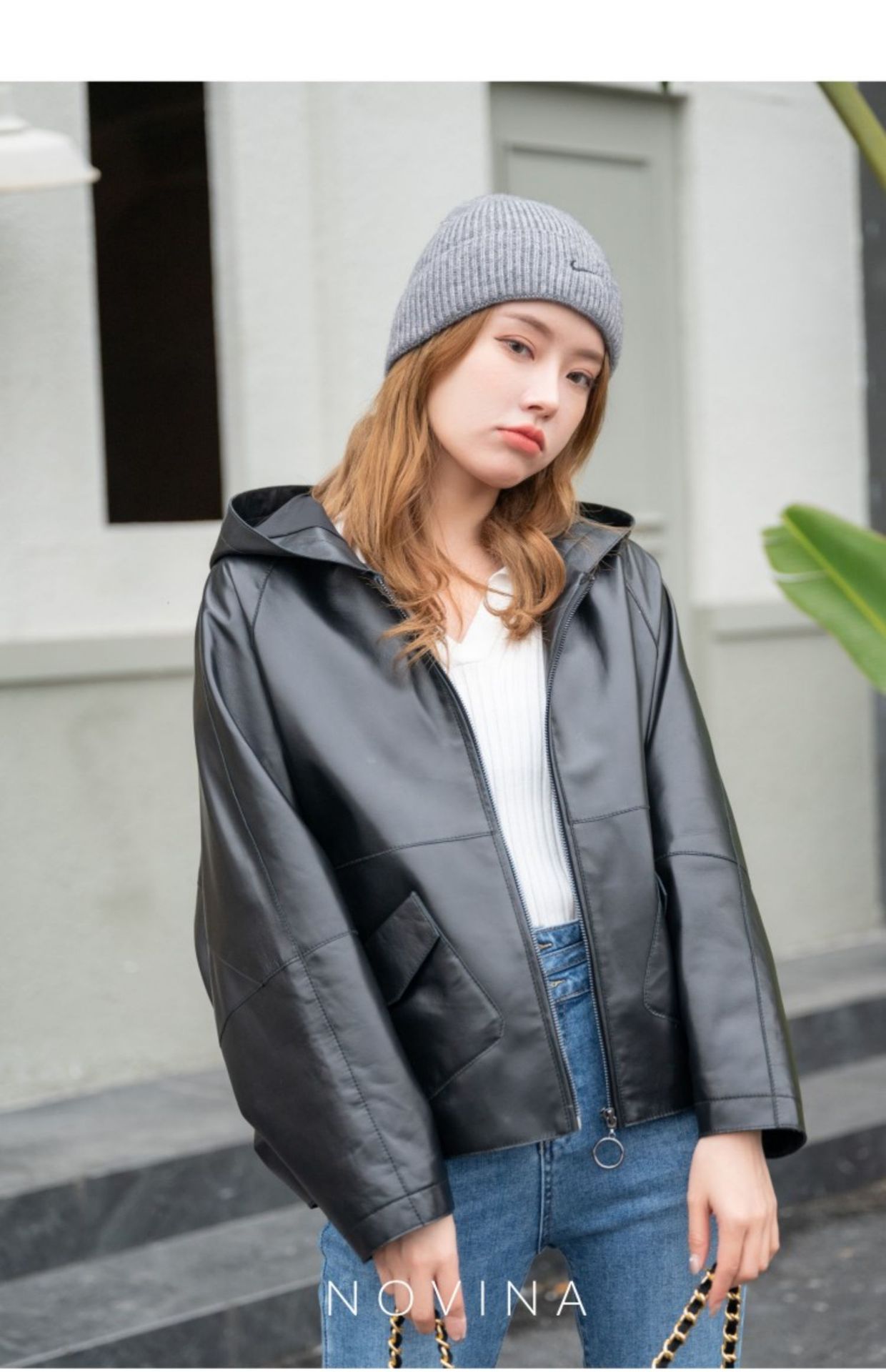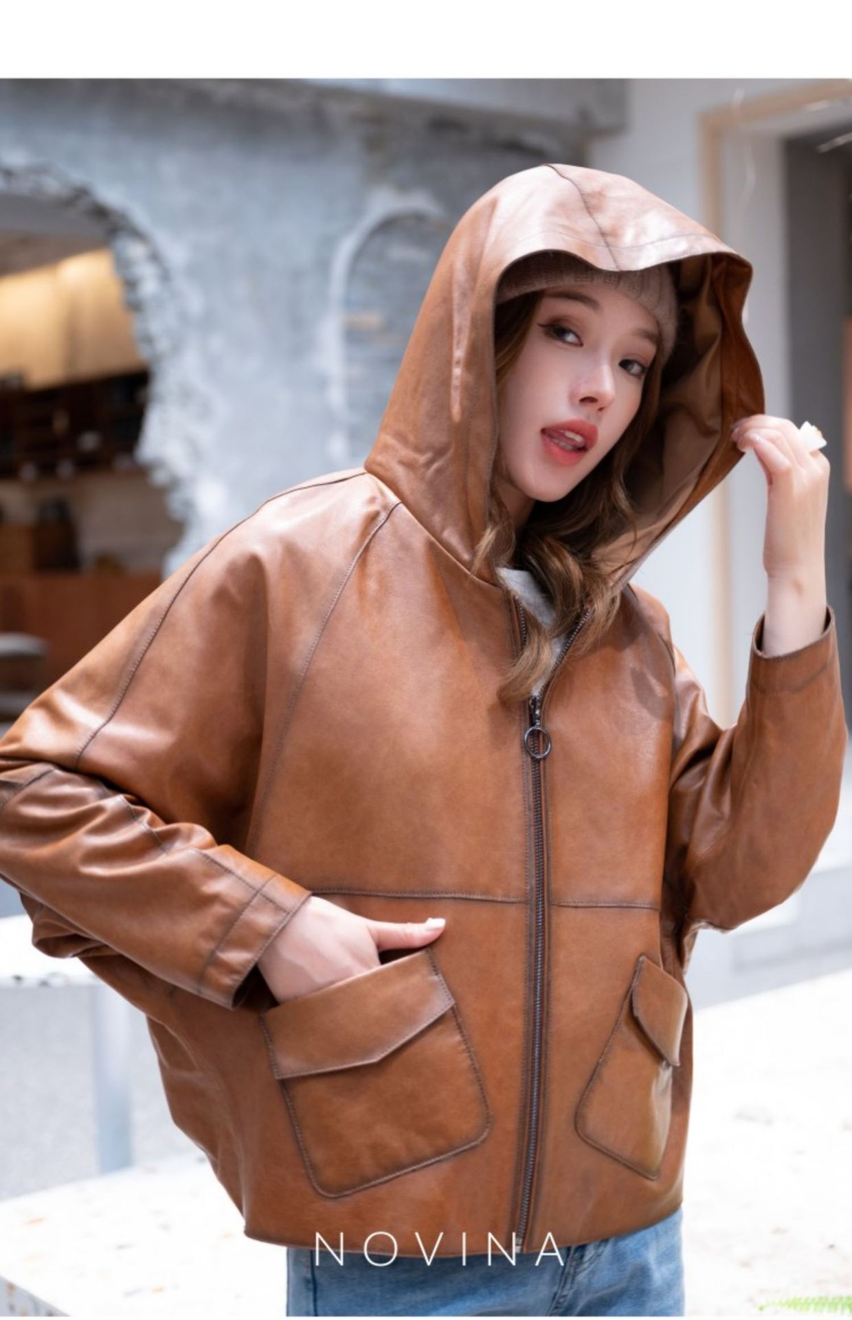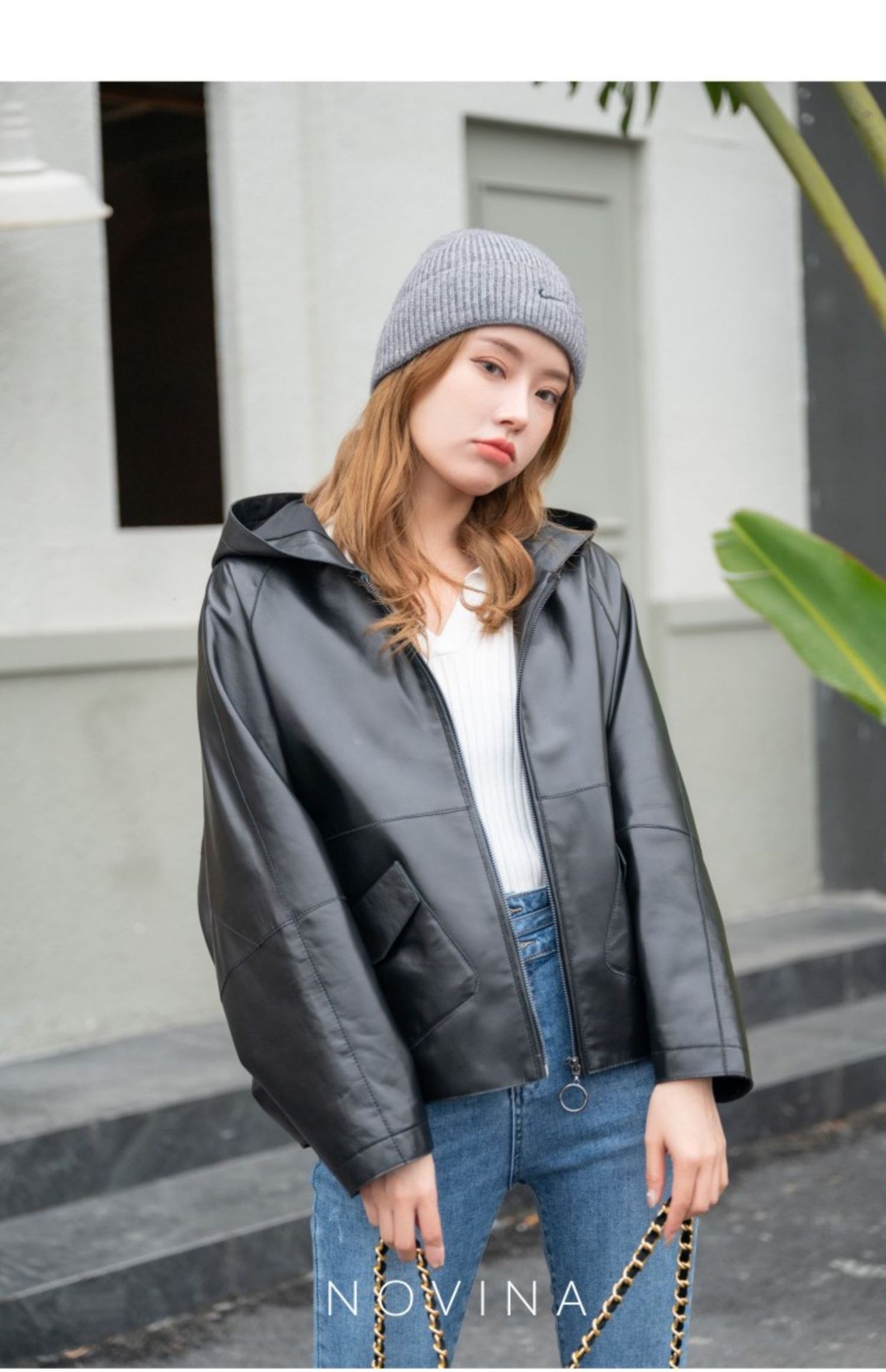 Áo khoác dáng áo choàng có mũ dành cho nữ, được làm từ chất liệu da cừu mềm mại và bền đẹp. Kiểu dáng rộng rãi, thoải mái, mang phong cách châu Âu hiện đại, phù hợp cho tiết trời mát mẻ. Sản phẩm có thiết kế cổ điển với mũ liền linh hoạt, giúp giữ ấm và chắn gió. Bạn có thể mặc kết hợp với quần jean và áo thun để tạo vẻ ngoài năng động, hoặc phối cùng đầm và boots để diện mạo thời thượng hơn. | Tên sản phẩm: Áo Da Nữ Chất Liệu Da Bò Mũ Liền Hàng Mùa Xuân Thu Đông - Thời Trang Nữ | Mã sản phẩm: T3736 - Giá: 5.370.000đ | Mã nhà sản xuất: HADA-G06Hình ảnh sản phẩm