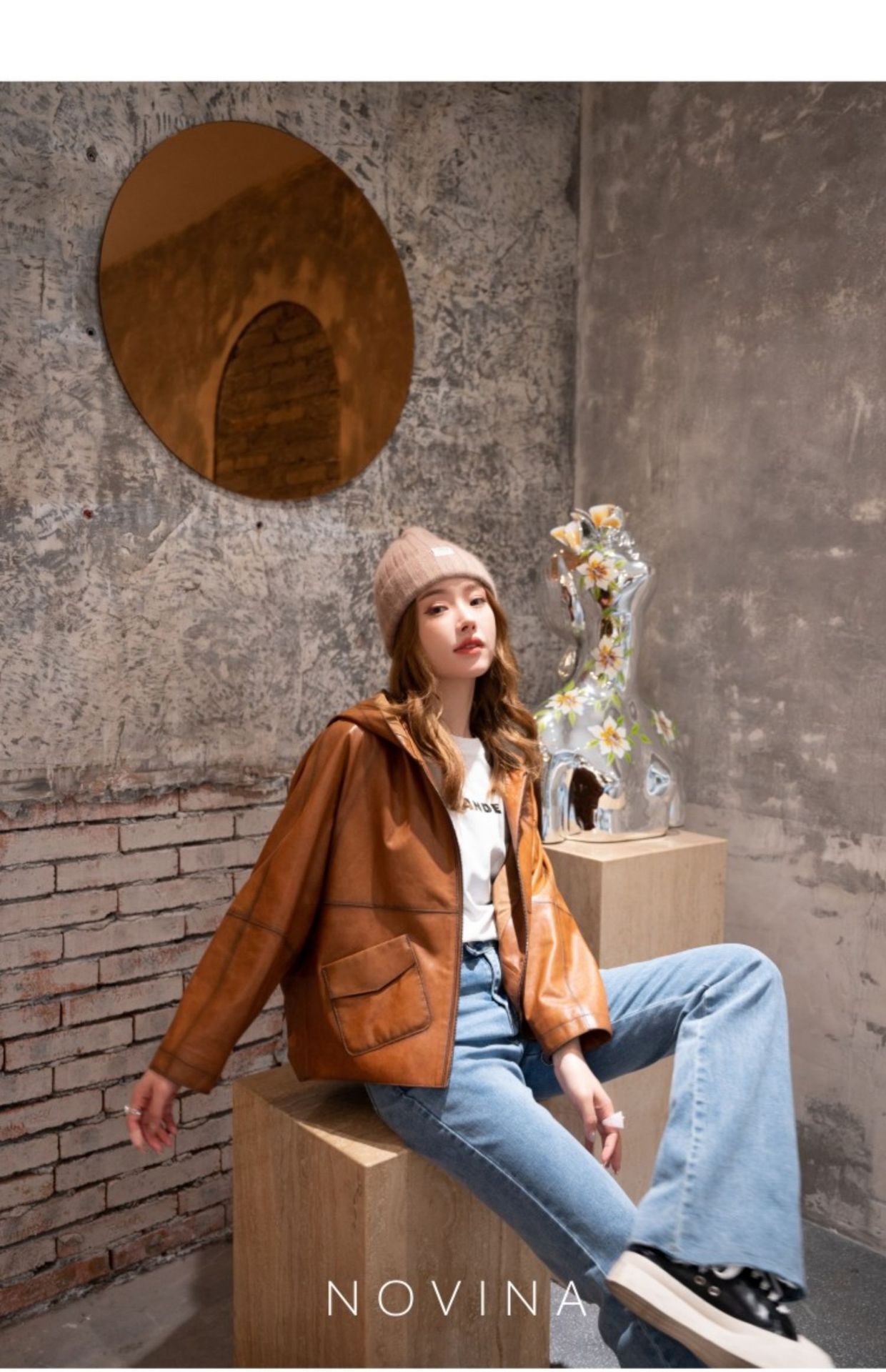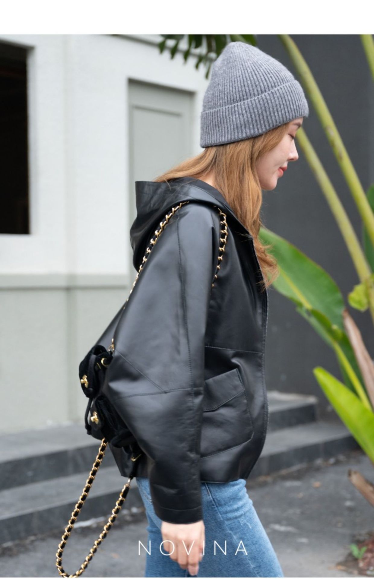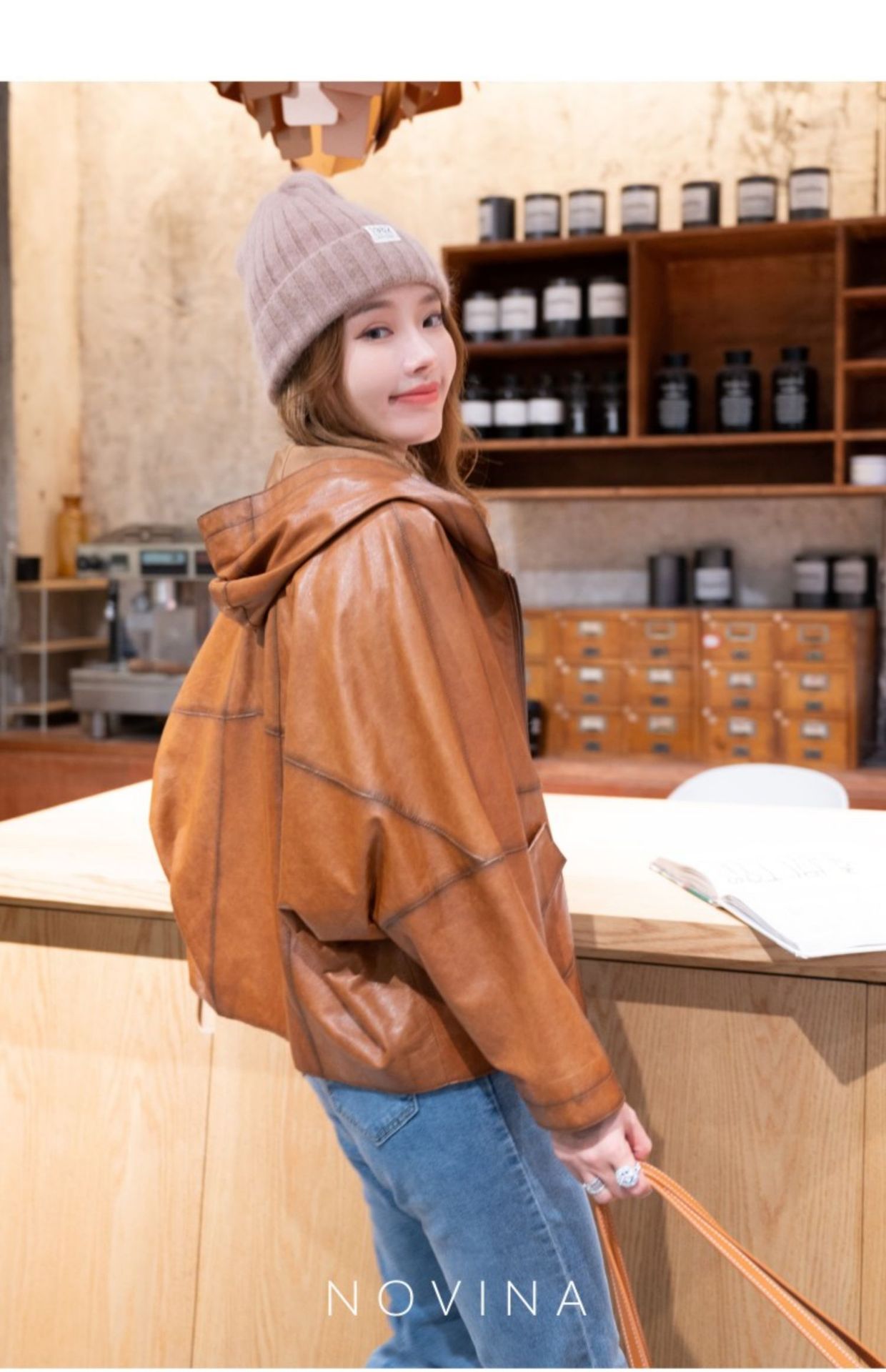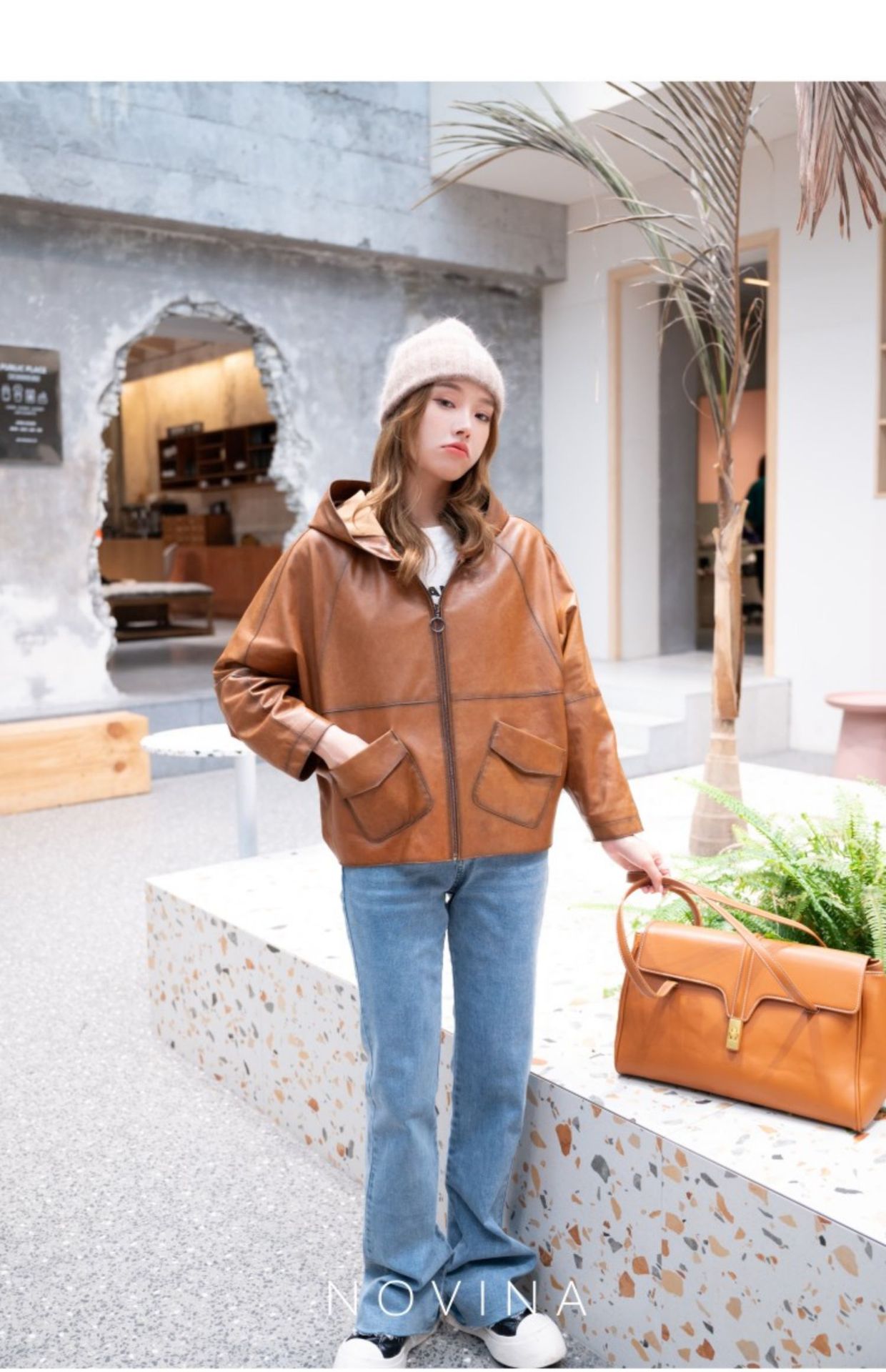 Áo khoác dáng áo choàng có mũ dành cho nữ, được làm từ chất liệu da cừu mềm mại và bền đẹp. Kiểu dáng rộng rãi, thoải mái, mang phong cách châu Âu hiện đại, phù hợp cho tiết trời mát mẻ. Sản phẩm có thiết kế cổ điển với mũ liền linh hoạt, giúp giữ ấm và chắn gió. Bạn có thể mặc kết hợp với quần jean và áo thun để tạo vẻ ngoài năng động, hoặc phối cùng đầm và boots để diện mạo thời thượng hơn. | Tên sản phẩm: Áo Da Nữ Chất Liệu Da Bò Mũ Liền Hàng Mùa Xuân Thu Đông - Thời Trang Nữ | Mã sản phẩm: T3736 - Giá: 5.370.000đ | Mã nhà sản xuất: HADA-G06Hình ảnh sản phẩm