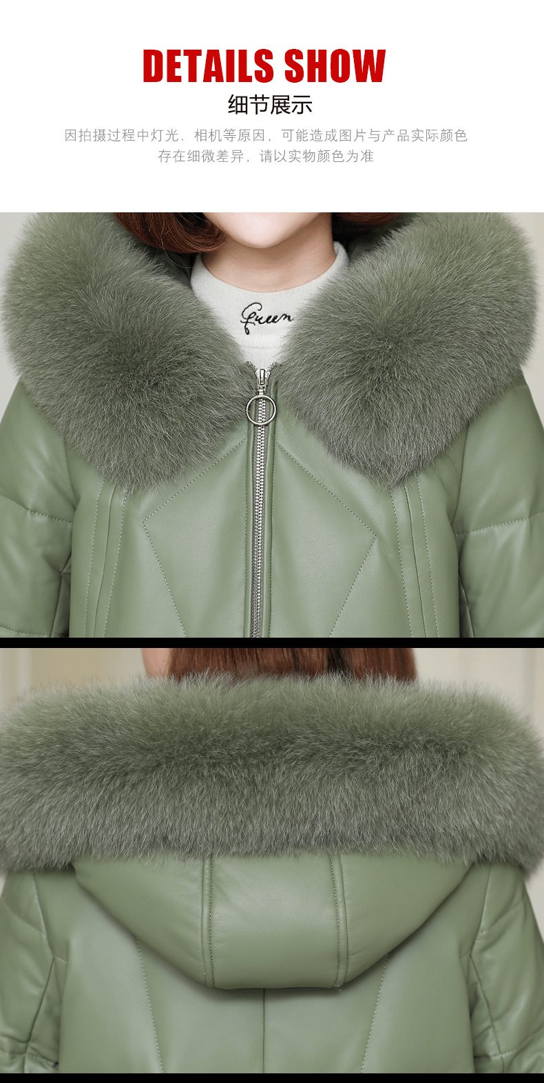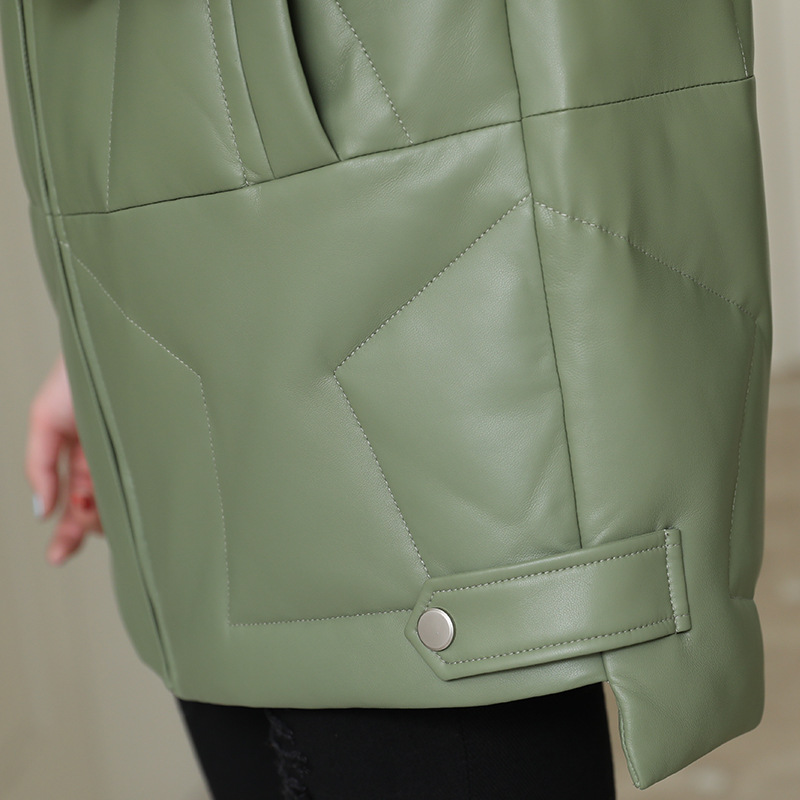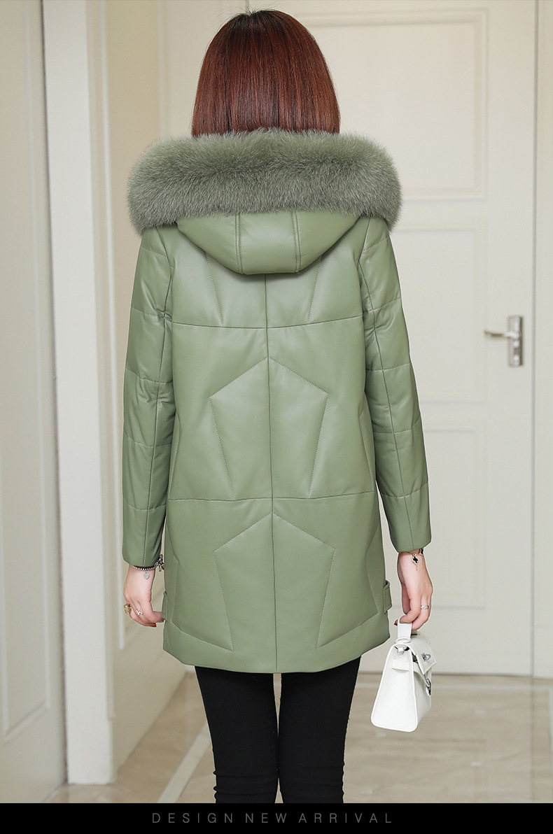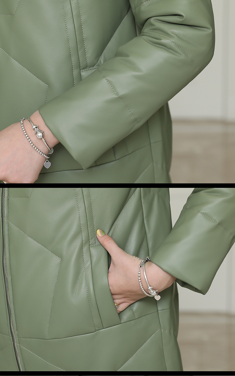 Áo khoác nữ dáng dài có mũ, được làm từ chất liệu da cừu mềm mại kết hợp cùng lớp lông vũ giữ ấm bên trong. Thiết kế mang phong cách hiện đại, năng động với chiếc mũ liền có thể điều chỉnh. Sản phẩm mặc ấm vào mùa đông, phù hợp khi đi làm hay dạo phố. Chỉ cần mặc trực tiếp như các loại áo khoác thông thường, kết hợp cùng quần jeans hoặc váy để tạo điểm nhấn. | Tên sản phẩm: Áo Da Nữ Chất Liệu Da Bò - Thời Trang Nữ | Mã sản phẩm: T3765 - Giá: 7.590.000đ | Mã nhà sản xuất: HADA-G06Hình ảnh sản phẩm