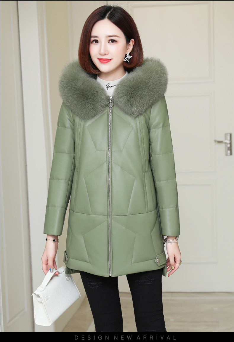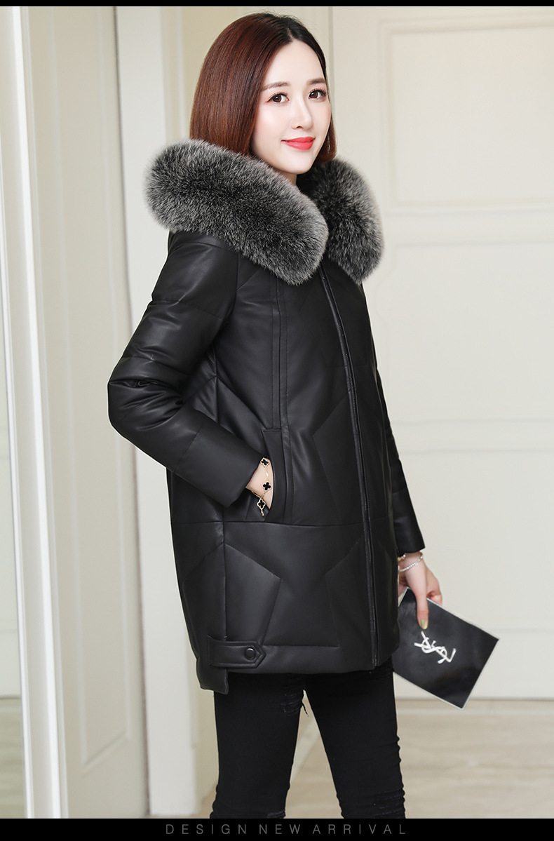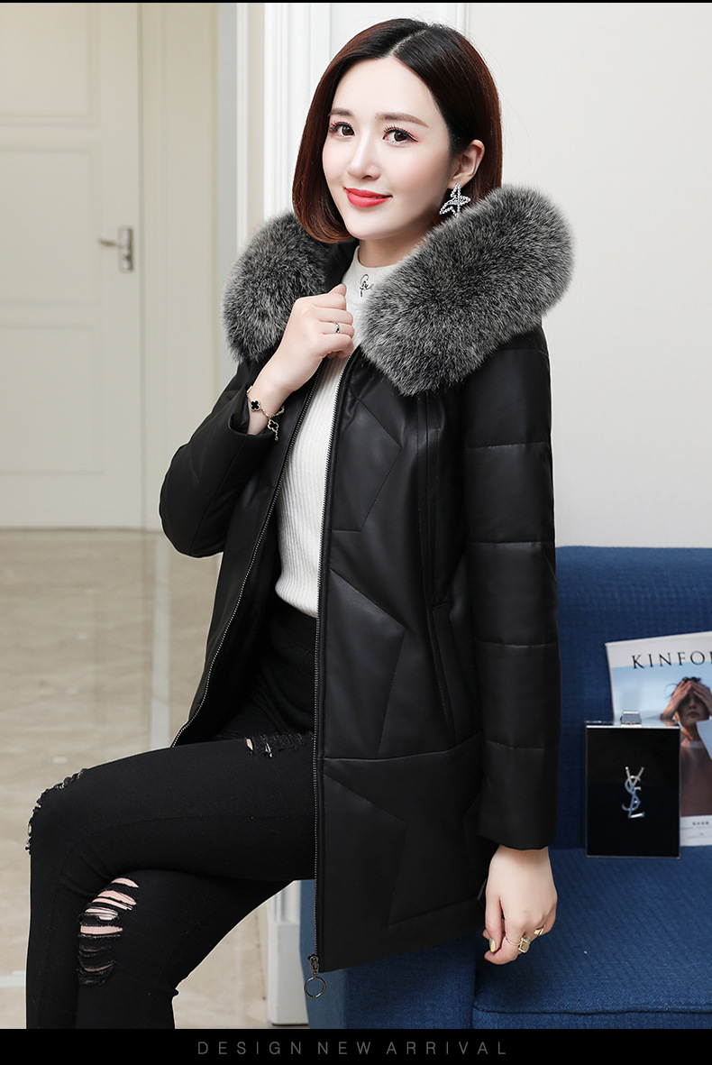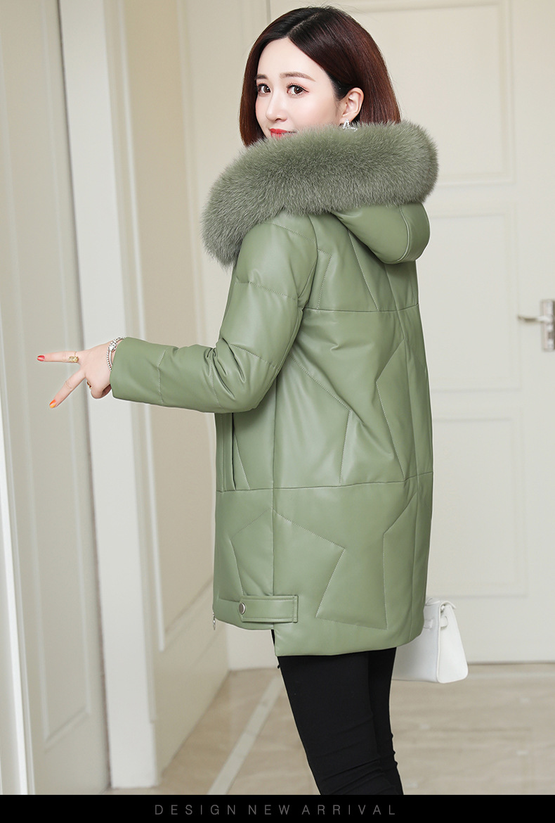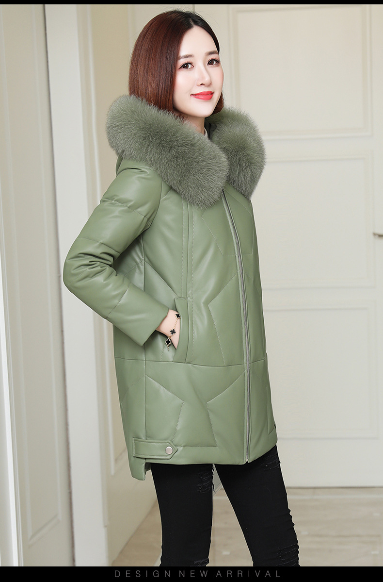 Áo khoác nữ dáng dài có mũ, được làm từ chất liệu da cừu mềm mại kết hợp cùng lớp lông vũ giữ ấm bên trong. Thiết kế mang phong cách hiện đại, năng động với chiếc mũ liền có thể điều chỉnh. Sản phẩm mặc ấm vào mùa đông, phù hợp khi đi làm hay dạo phố. Chỉ cần mặc trực tiếp như các loại áo khoác thông thường, kết hợp cùng quần jeans hoặc váy để tạo điểm nhấn. | Tên sản phẩm: Áo Da Nữ Chất Liệu Da Bò - Thời Trang Nữ | Mã sản phẩm: T3765 - Giá: 7.590.000đ | Mã nhà sản xuất: HADA-G06Hình ảnh sản phẩm