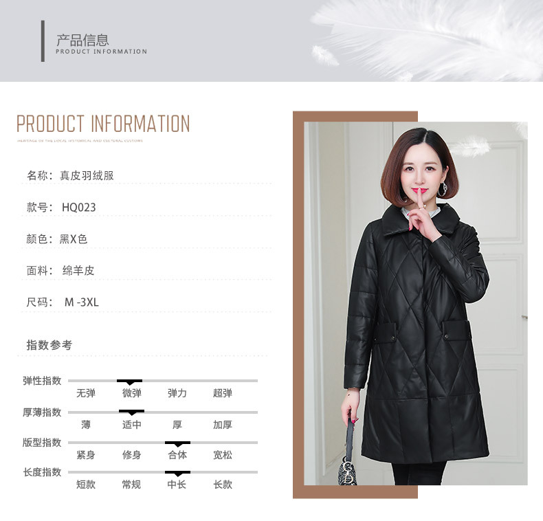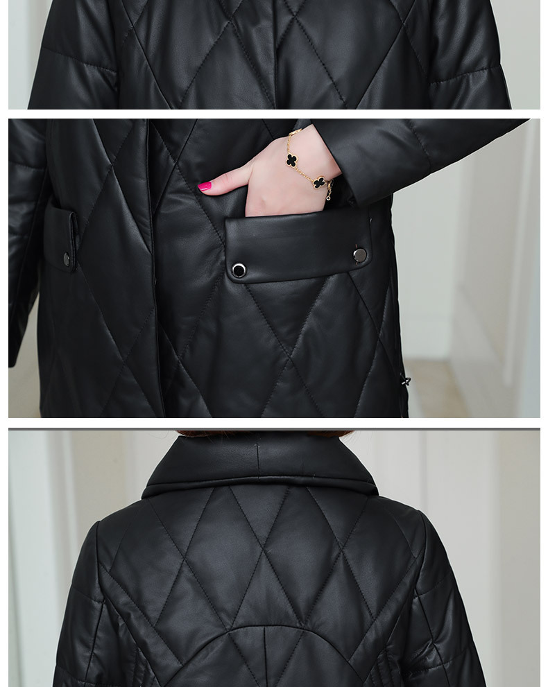 Áo khoác dành cho nữ, được làm từ chất liệu da cừu mềm mại kết hợp với lớp lông vũ giữ ấm bên trong. Kiểu dáng dáng dài vừa phải, cổ đứng ôm cổ, phù hợp với nhiều dáng người. Thiết kế mang phong cách trẻ trung, hiện đại. Mặc áo giúp giữ ấm tốt trong những ngày thời tiết se lạnh, dễ dàng phối cùng nhiều loại trang phục khác nhau để tạo nên vẻ ngoài ấn tượng. | Tên sản phẩm: Áo Da Nữ Chất Liệu Da Bò Phong Cách Hàn Quốc - Thời Trang Nữ | Mã sản phẩm: T3780 - Giá: 7.310.000đ | Mã nhà sản xuất: HADA-G06Hình ảnh sản phẩm