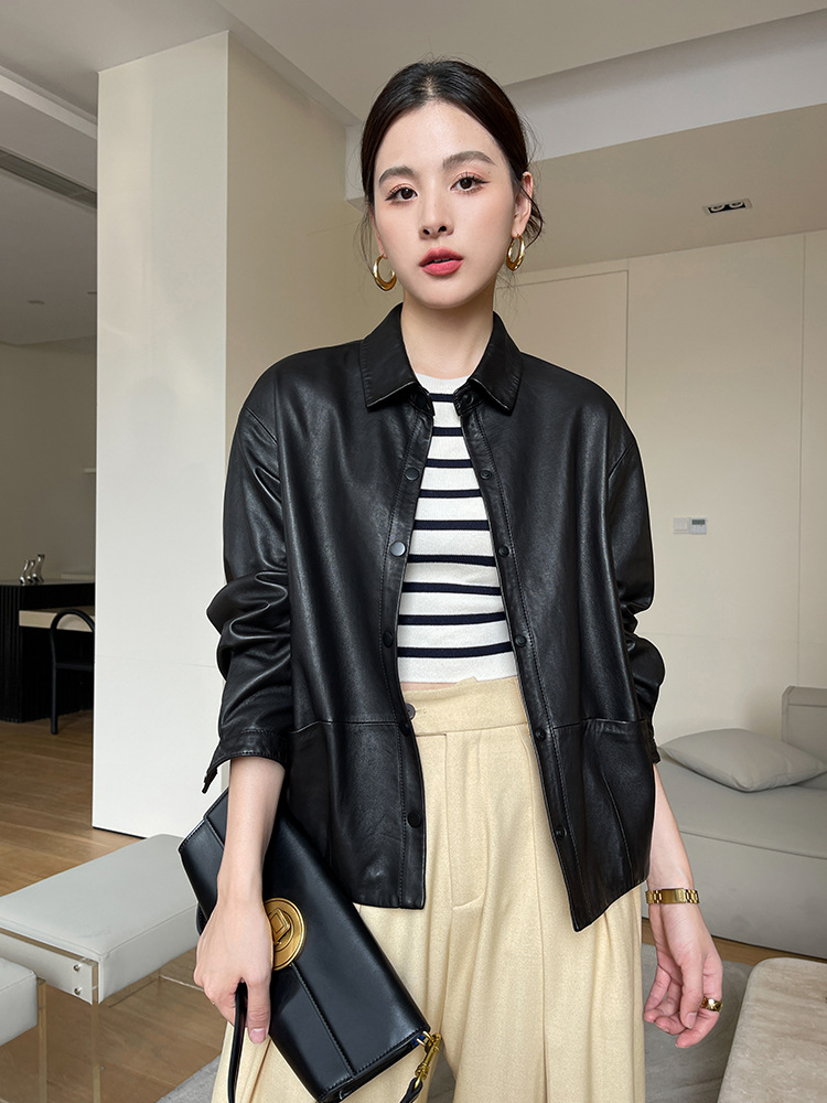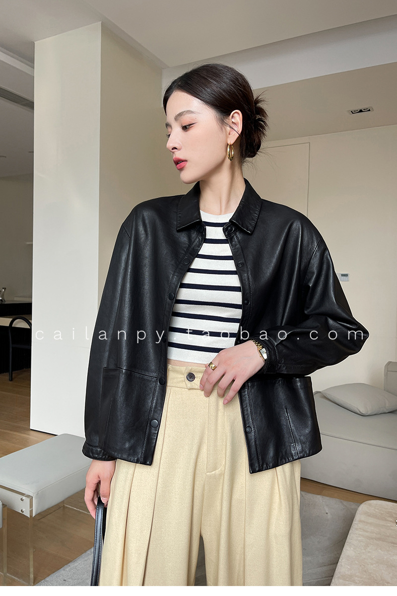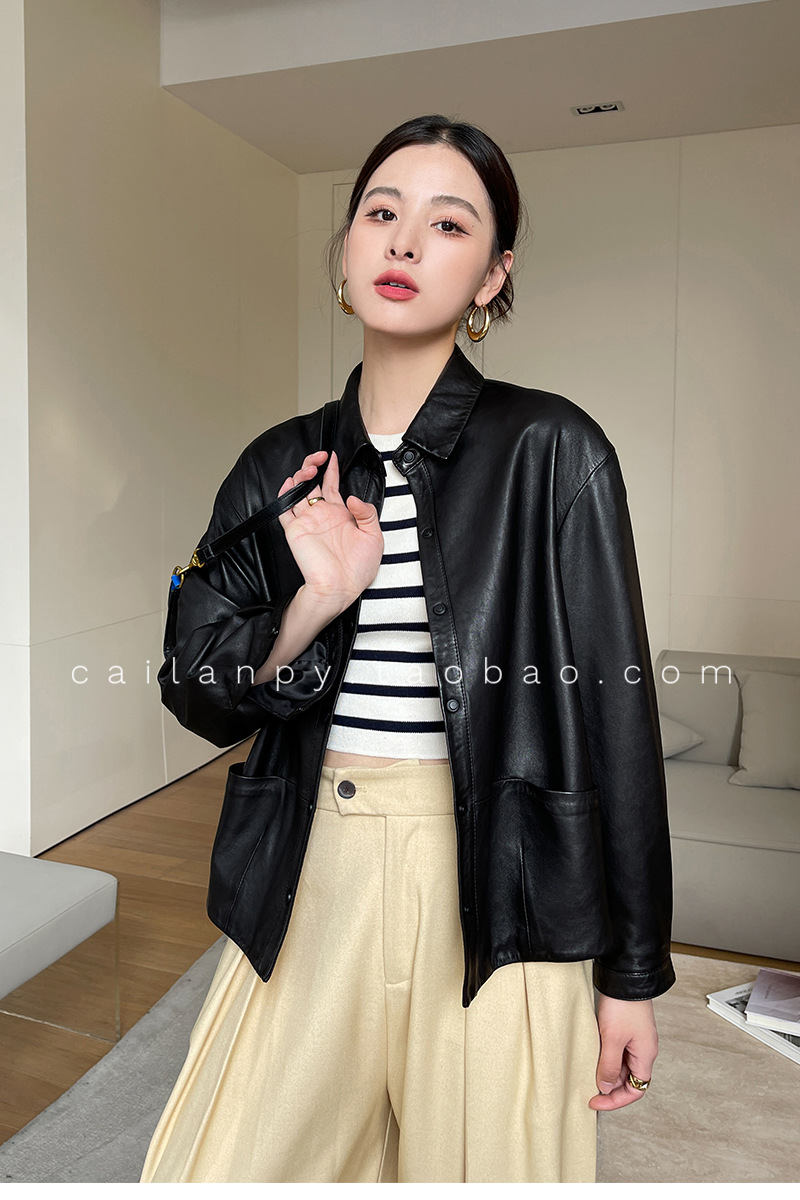 Áo khoác da cừu non ngắn, kiểu dáng cổ sơ mi thanh lịch, phù hợp mặc trong tiết trời mát mẻ. Chất liệu da thật tự nhiên, bề mặt mịn màng, tạo cảm giác dễ chịu khi mặc. Thiết kế ôm vừa vặn, đường may tinh tế, có thể kết hợp với nhiều loại trang phục khác nhau. Sản phẩm mang phong cách giản dị nhưng không kém phần tinh tế, dễ dàng phối cùng quần jeans hay chân váy. Khi sử dụng, lau nhẹ bằng khăn mềm để giữ vẻ đẹp cho áo. | Tên sản phẩm: Áo Da Nữ Chất Liệu Da Bò Hàng Mùa Xuân Thu Đông - Thời Trang Nữ | Mã sản phẩm: T3791 - Giá: 5.740.000đ | Mã nhà sản xuất: HADA-G06Hình ảnh sản phẩm