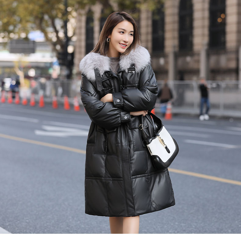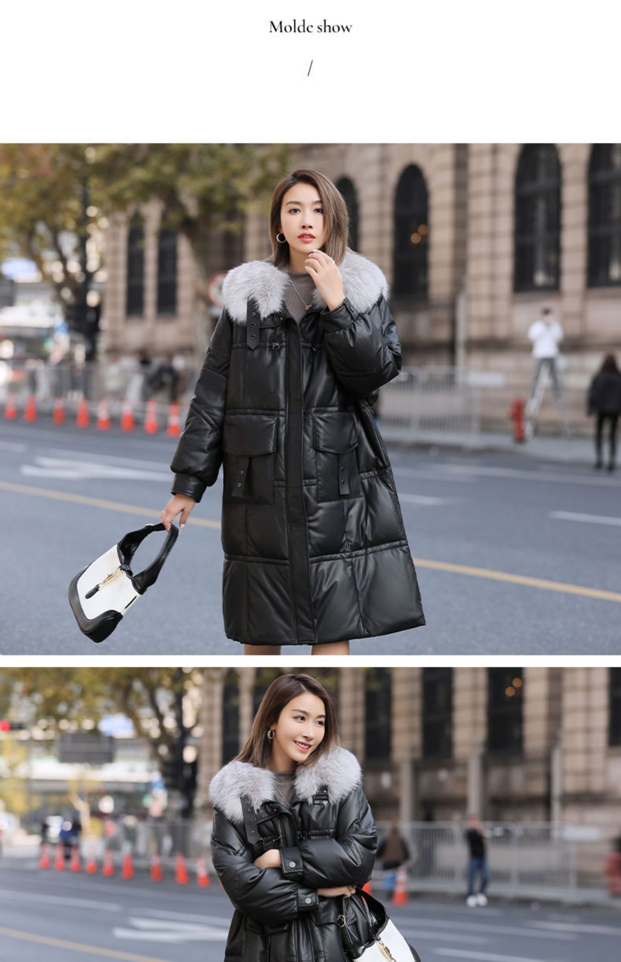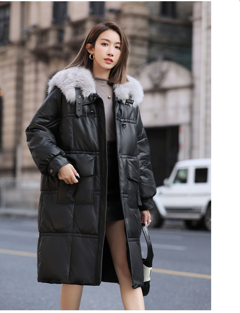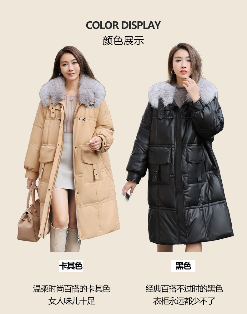 Áo khoác dáng dài với phần cổ lớn có điểm nhấn bằng lớp lông mềm mại. Chất liệu da mềm ôm vừa vặn cơ thể, bên trong là lớp lót lông vũ giữ ấm hiệu quả. Kiểu dáng rộng rãi, phù hợp mặc trong tiết trời lạnh. Khi sử dụng, chỉ cần mặc trực tiếp như các loại áo khoác thông thường, kéo khóa và cài khuy để giữ ấm toàn thân. | Tên sản phẩm: Áo Da Nữ Chất Liệu Da Bò Big Size Ngoại Cỡ Hàng Mùa Xuân Thu Đông - Thời Trang Nữ | Mã sản phẩm: T3803 - Giá: 8.790.000đ | Mã nhà sản xuất: HADA-G06Hình ảnh sản phẩm