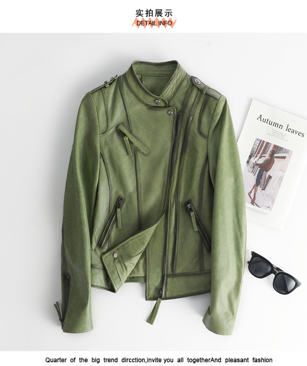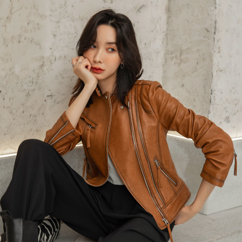 Áo khoác da kiểu dáng ngắn, cổ đứng, ôm vừa vặn tôn dáng người mặc. Chất liệu từ da thật, bền đẹp theo thời gian. Thiết kế trẻ trung, phù hợp cho nhiều dịp trong ngày. Có thể kết hợp cùng quần jeans và áo thun để tạo vẻ năng động, hoặc mặc với váy để dịu dàng hơn. Dễ dàng bảo quản bằng cách lau sạch bề mặt khi bám bụi và treo ở nơi thoáng mát. | Tên sản phẩm: Áo Da Nữ Chất Liệu Da Bò Dáng Ôm Phong Cách Hàn Quốc - Thời Trang Nữ | Mã sản phẩm: T3822 - Giá: 3.420.000đ | Mã nhà sản xuất: HADA-G06Hình ảnh sản phẩm