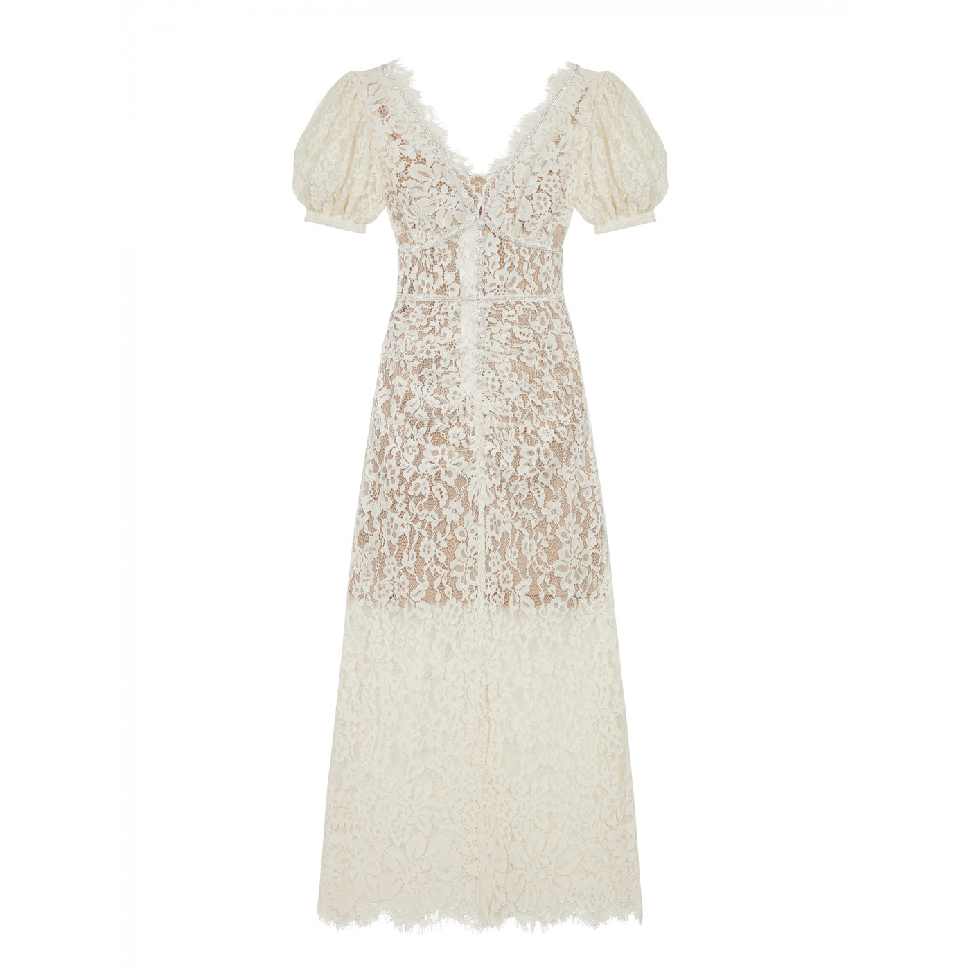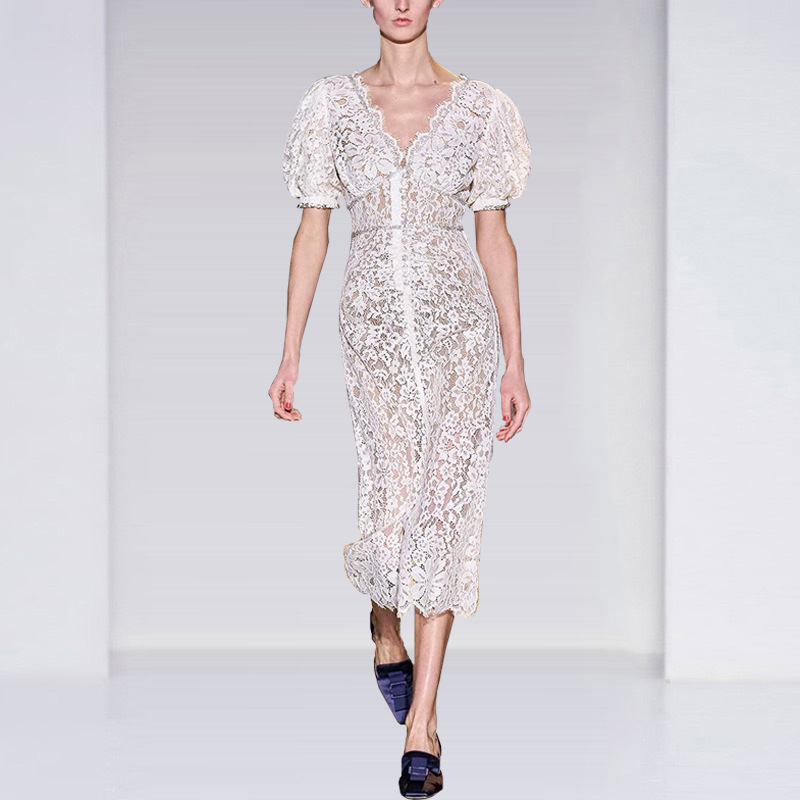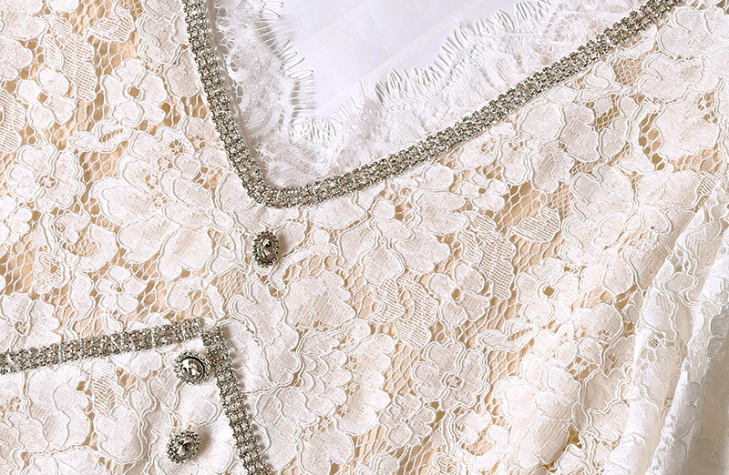 Đầm dáng dài kiểu Pháp, điểm nhấn là cổ chữ V tôn dáng. Chất liệu ren trắng mỏng nhẹ, tinh tế điểm xuyết những hạt đá lấp lánh dọc thân váy. Kiểu dáng ôn nữ tính, phù hợp cho những buổi tiệc chiều hoặc sự kiện. Mặc cùng giày cao gót và phụ kiện đơn giản để tôn vẻ đẹp của trang phục. | Tên sản phẩm: Váy Đầm Liền Thân Dáng Dài Nữ Chất Liệu Ren Cổ Chữ V Hàng Mùa Hè - Thời Trang Nữ | Mã sản phẩm: T4397 - Giá: 1.110.000đ | Mã nhà sản xuất: GUDG-G04Hình ảnh sản phẩm