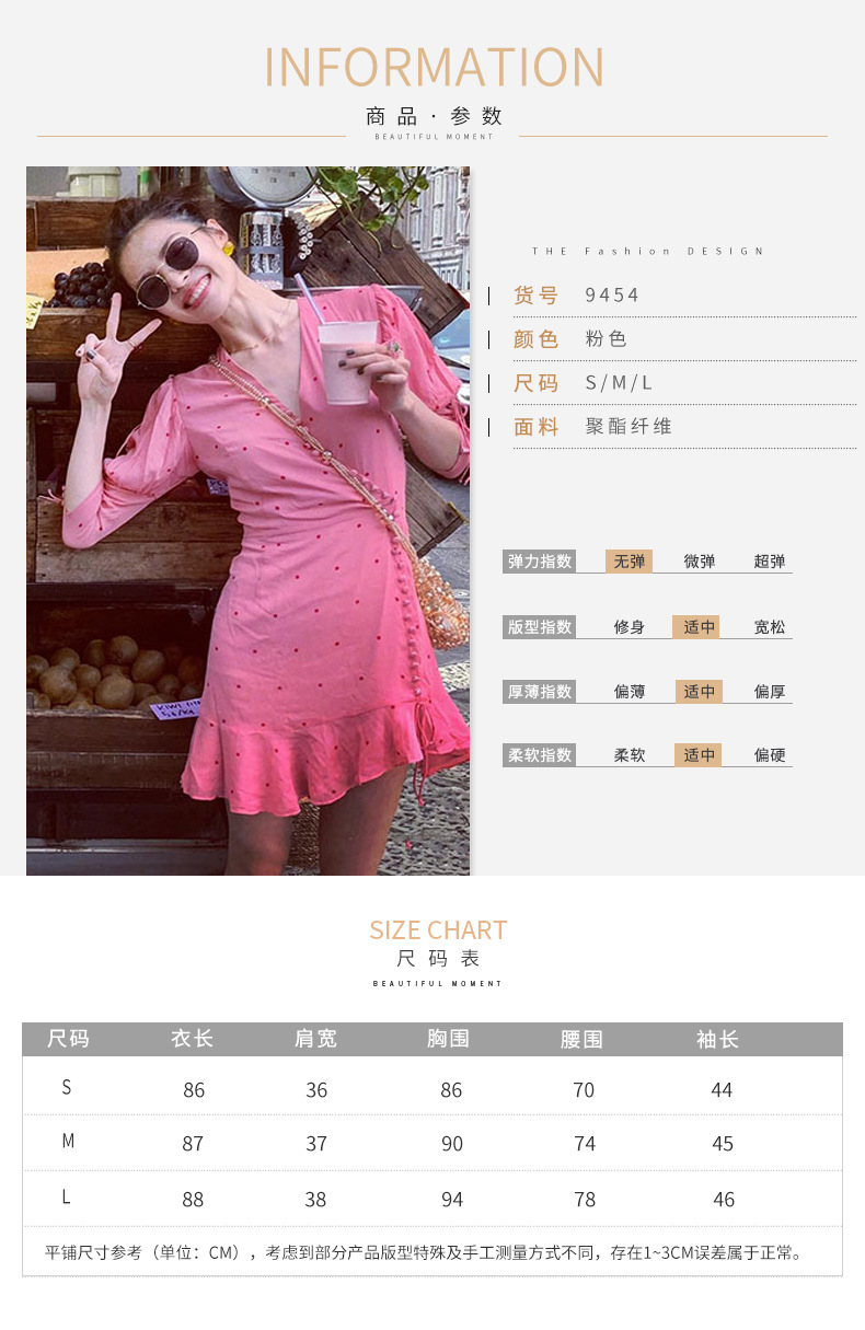 Chiếc đầm thời trang này có cổ chữ V tôn dáng, điểm nhấn là họa tiết chấm bi màu hồng dịu dàng. Phần tay và viền váy được cách điệu với đường cắt xếp lớp mềm mại, tạo nên phong cách thanh lịch, phù hợp cho những dịp dạo phố hay đi chơi. Chất vải mỏng nhẹ, thoáng mát giúp người mặc cảm thấy dễ chịu. Bạn có thể phối cùng giày sandal hoặc giày đế bằng để hoàn thiện bộ trang phục. | Tên sản phẩm: Váy Đầm Liền Thân Nữ Cổ Chữ V - Thời Trang Nữ | Mã sản phẩm: T4432 - Giá: 720.000đ | Mã nhà sản xuất: GUDG-G02Hình ảnh sản phẩm