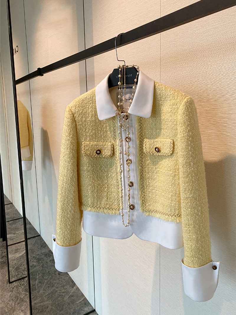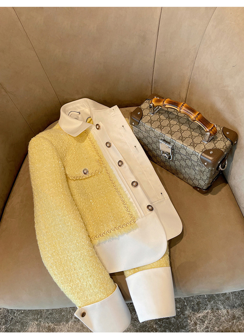Áo khoác ngắn tay kiểu dáng nhỏ gọn, phù hợp cho tiết trời mát mẻ. Chất liệu dệt thô kết hợp vải dệt kim tạo điểm nhấn riêng. Thiết kế có túi tiện lợi, form áo ôn hồng tôn dáng. Dễ dàng phối cùng quần ống rộng hoặc chân váy. Mặc kèm áo thun hoặc áo cổ lọ bên trong để giữ ấm nhẹ nhàng. | Tên sản phẩm: Áo Khoác Nữ Họa Tiết Hoa Hàng Mùa Xuân Thu Đông - Thời Trang Nữ | Mã sản phẩm: T4464 - Giá: 1.220.000đ | Mã nhà sản xuất: GUDG-G04Hình ảnh sản phẩm