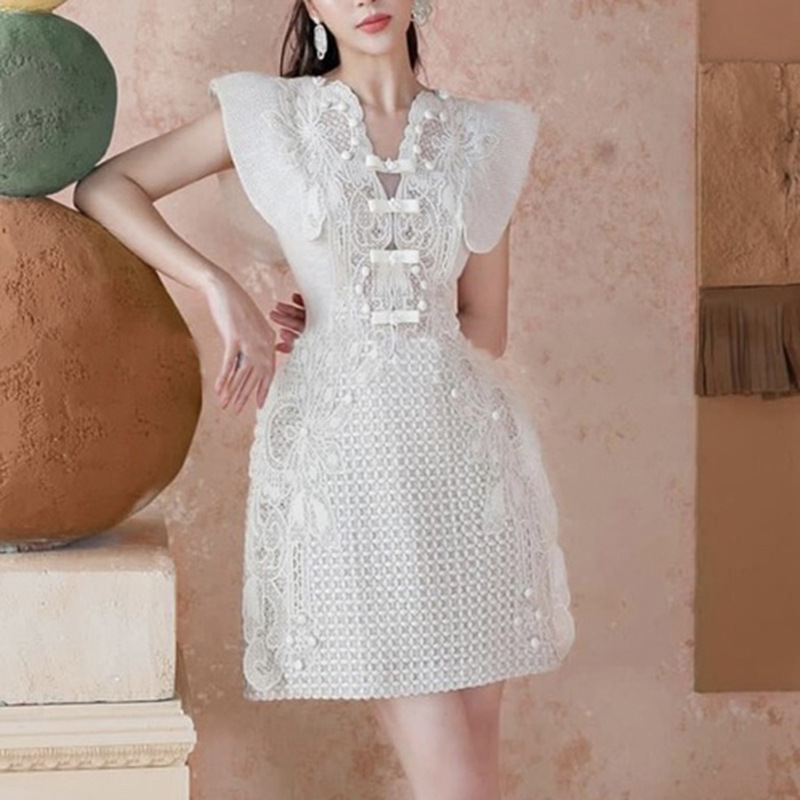 Chiếc đầm ngắn tay dệt hoa văn tinh tế, mang phong cách thiết kế riêng cho mùa hè. Điểm nhấn nằm ở đường eo được ôm khéo léo, tôn lên dáng người một cách tự nhiên. Chất vải mỏng nhẹ tạo cảm giác dễ chịu khi mặc cả ngày dài. Sản phẩm phù hợp cho những buổi gặp mặt thường ngày hay dạo phố cuối tuần. Có thể giặt bằng tay và phơi nơi râm mát để giữ form vải lâu bền. | Tên sản phẩm: Váy Đầm Liền Thân Nữ Chất Liệu Ren Hàng Mùa Hè - Thời Trang Nữ | Mã sản phẩm: T4466 - Giá: 1.380.000đ | Mã nhà sản xuất: GUDG-G04Hình ảnh sản phẩm