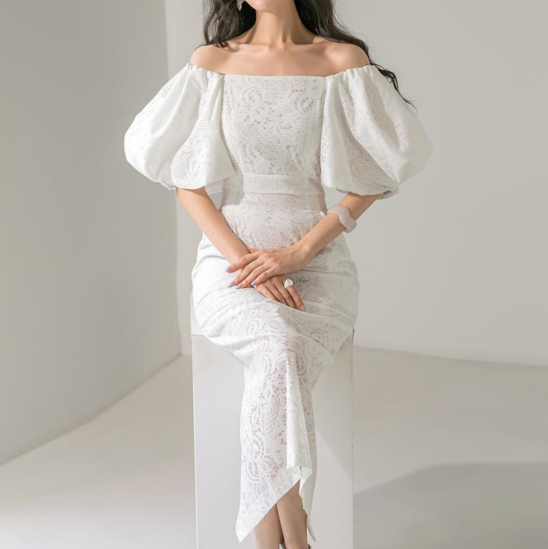Chiếc đầm dáng dài với cổ khoét thẳng tay tạo điểm nhấn thanh lịch. Tay áo phồng nhẹ nhàng như đèn lồng cách điệu, eo thắt nơ tôn dáng người mặc. Chất liệu ren trắng mỏng nhẹ, ôm vừa vặn phần hông. Sản phẩm phù hợp cho những buổi tiệc nhẹ hoặc dạo phố. Kết hợp cùng giày sandal hoặc giày gót thấp để tạo vẻ dịu dàng. | Tên sản phẩm: Váy Đầm Liền Thân Dáng Dài Nữ Chất Liệu Ren Hàng Mùa Hè - Thời Trang Nữ | Mã sản phẩm: T4478 - Giá: 1.090.000đ | Mã nhà sản xuất: GUDG-G03Hình ảnh sản phẩm