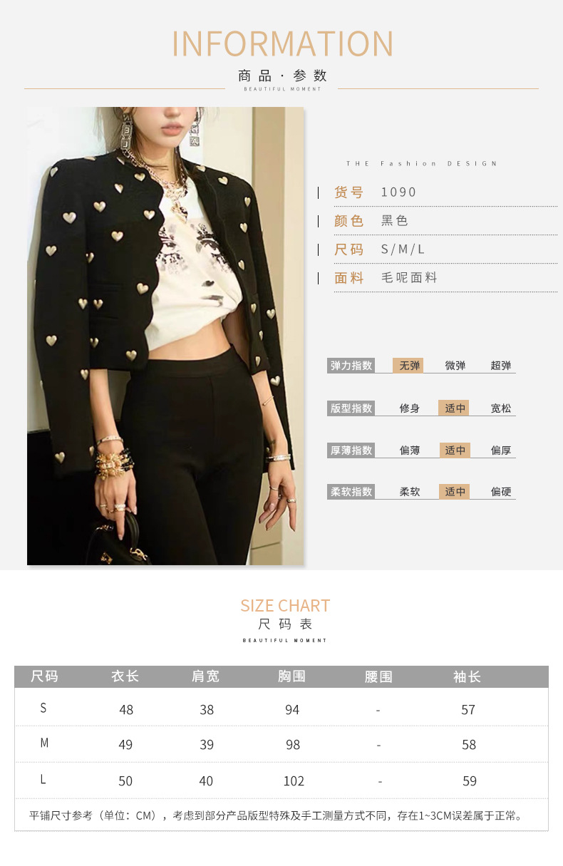 Áo khoác mỏng nữ dáng ngắn, kiểu dáng thiết kế trẻ trung với điểm nhấn là đường may kỹ lưỡng và họa tiết trái tim độc đáo. Chất liệu dệt từ sợi len mềm mại, giữ ấm nhẹ phù hợp tiết trời se lạnh. Sản phẩm dễ dàng phối cùng váy hoặc quần dài, mặc trực tiếp như áo khoác mở hoặc cài khuy đều tôn dáng. Kiểu dáng cổ điển nhưng vẫn mang nét mới lạ, thích hợp cho nhiều dịp sử dụng. | Tên sản phẩm: Áo Khoác Nữ Dáng Dộng Họa Tiết Hoa Hàng Mùa Xuân Thu Đông - Thời Trang Nữ | Mã sản phẩm: T4488 - Giá: 1.130.000đ | Mã nhà sản xuất: GUDG-G04Hình ảnh sản phẩm