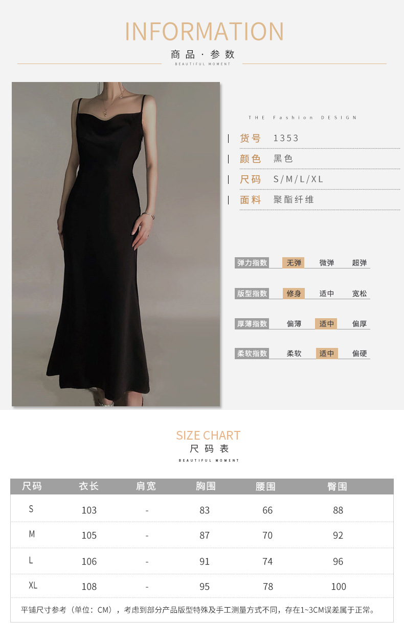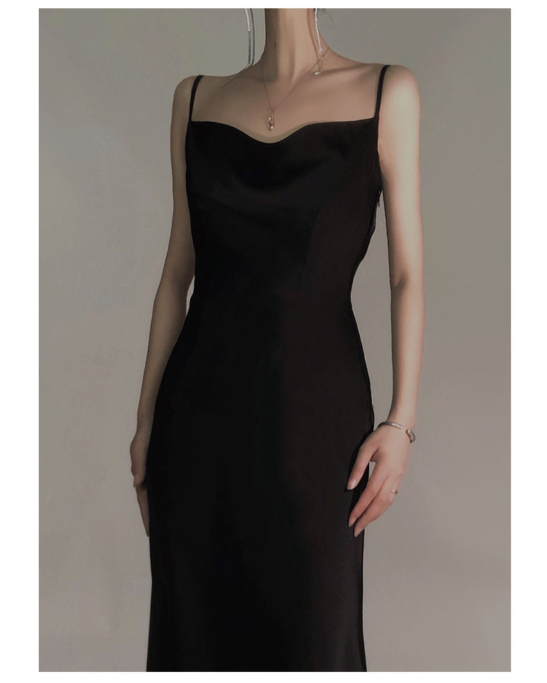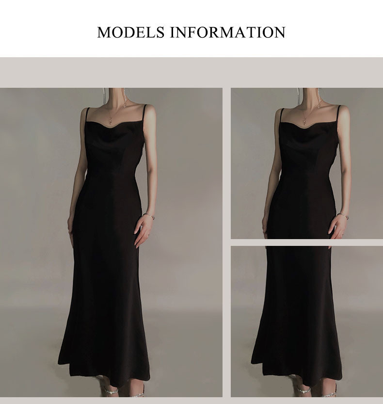 Đầm dáng dài mang phong cách thanh lịch, cổ điển. Chất vải lụa mềm mại tạo cảm giác dễ chịu khi mặc. Thiết kế không tay, dây đeo mảnh cùng tông màu đen dễ dàng phối hợp với nhiều loại trang sức và phụ kiện khác nhau. Sản phẩm phù hợp cho những buổi tiệc tối hoặc sự kiện. Có thể khoác thêm áo choàng mỏng hoặc áo vest ngắn để tạo vẻ ngoài đa dạng. | Tên sản phẩm: Áo Hai Dây Nữ Hai Dây Hở Vai Phong Cách Âu Mỹ - Thời Trang Nữ | Mã sản phẩm: T4528 - Giá: 990.000đ | Mã nhà sản xuất: GUDG-G03Hình ảnh sản phẩm