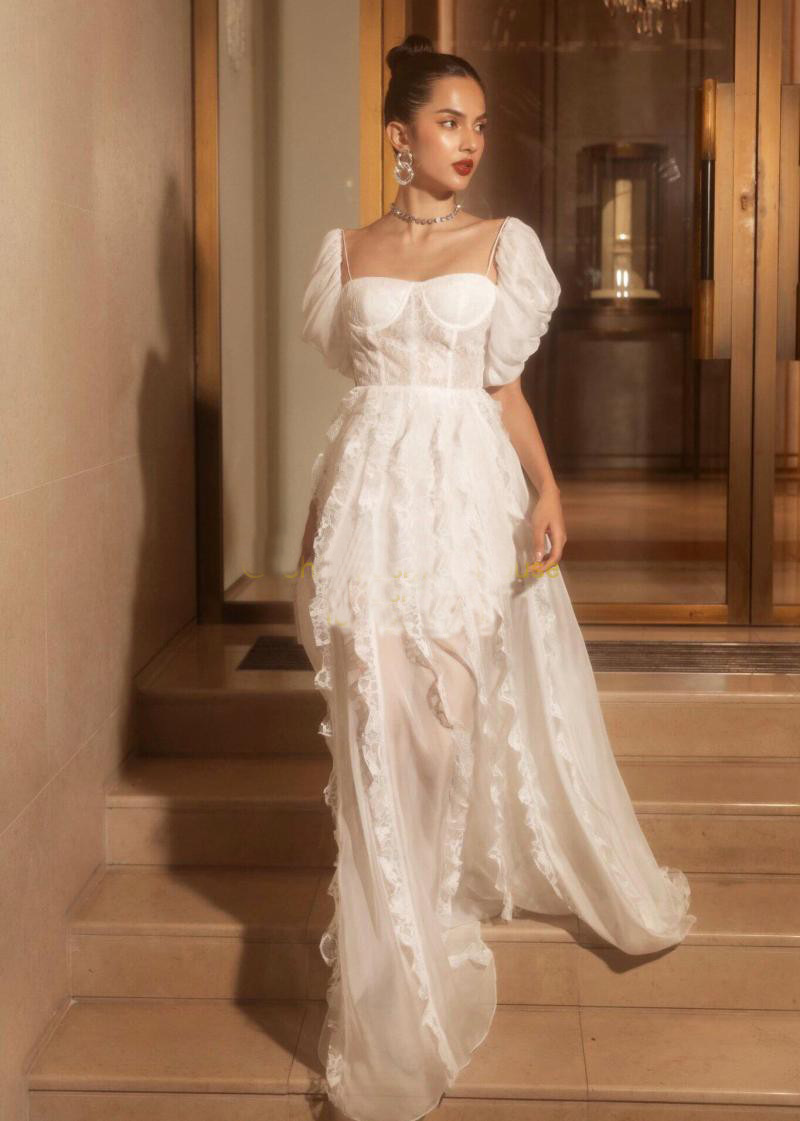 Đầm dáng dài với phong cách cổ điển, điểm nhấn là phần eo cao giúp tôn dáng người mặc. Chất vải mỏng nhẹ kết hợp những chi tiết ren tinh tế tạo nên vẻ đẹp quyến rũ mà vẫn kín đáo. Sản phẩm thích hợp cho các buổi gặp mặt hoặc sự kiện nhẹ nhàng. Có thể giặt tay và phơi trong bóng râm để giữ form vải và độ bền đẹp của trang phục. | Tên sản phẩm: Váy Đầm Liền Thân Nữ Chất Liệu Ren Lưới Mỏng Trong Suốt Phục Cổ Cổ Điển - Thời Trang Nữ | Mã sản phẩm: T4531 - Giá: 1.380.000đ | Mã nhà sản xuất: GUDG-G04Hình ảnh sản phẩm