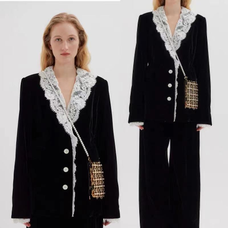Áo khoác thời trang với phần cổ viền ren tinh tế, kết hợp chất liệu nhung mềm mại mang đến vẻ ngoại thanh lịch. Kiểu dáng được thiết kế theo phong cách Hàn Quốc, phù hợp để mặc đi làm hoặc dự tiệc. Bạn có thể phối cùng quần tây hoặc chân váy để tạo điểm nhấn. Sản phẩm có form dáng vừa vặn, dễ dàng phối đồ và giữ ấm nhẹ trong thời tiết se lạnh. | Tên sản phẩm: Áo Vest Nữ Chất Liệu Ren Vest Hàng Mùa Xuân Thu Đông - Thời Trang Nữ | Mã sản phẩm: T4653 - Giá: 1.250.000đ | Mã nhà sản xuất: GUDG-G04Hình ảnh sản phẩm