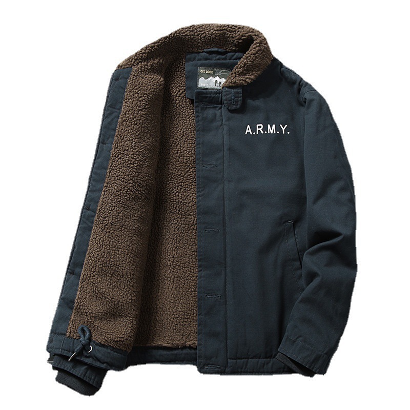 Áo khoác nam ngắn kiểu phi công, có lớp lót bông ấm áp dành cho mùa đông. Chất liệu chính là lớp lông xù mềm mại bên ngoài, kết hợp cùng phần cổ áo được làm từ lông viền dày dặn. Kiểu dáng phong cách lao động, trẻ trung và năng động. Mặc kèm áo thun hoặc áo len bên trong để giữ ấm tốt hơn. Dễ dàng phối hợp với quần jeans hoặc quần kaki cho những ngày trời lạnh. | Tên sản phẩm: Áo Khoác Nam Chất Liệu Vải Bông Áo Khoác Bông Dày Ấm Hàng Mùa Xuân Thu Đông - Thời Trang Nam | Mã sản phẩm: T5159 - Giá: 1.050.000đ | Mã nhà sản xuất: SHREDE-G03Hình ảnh sản phẩm