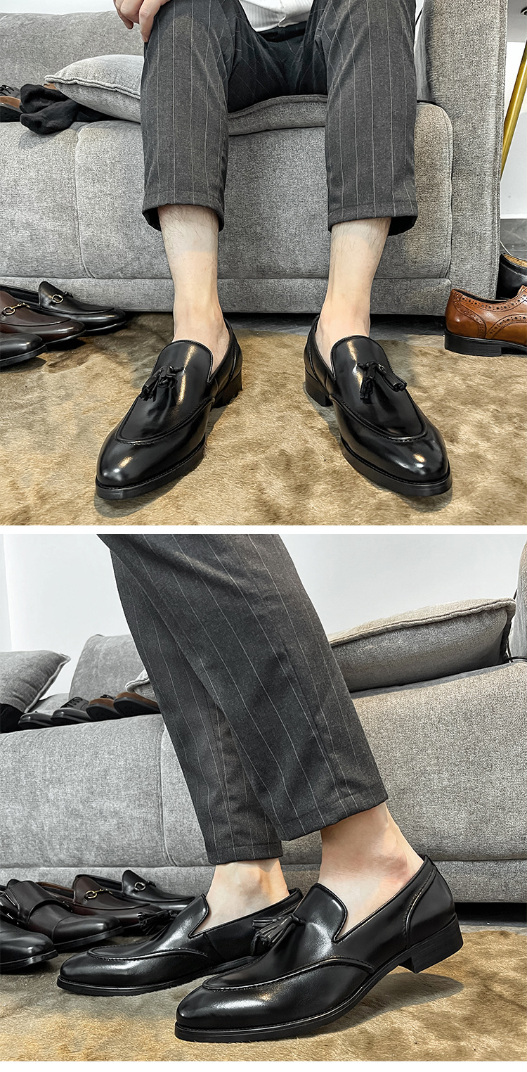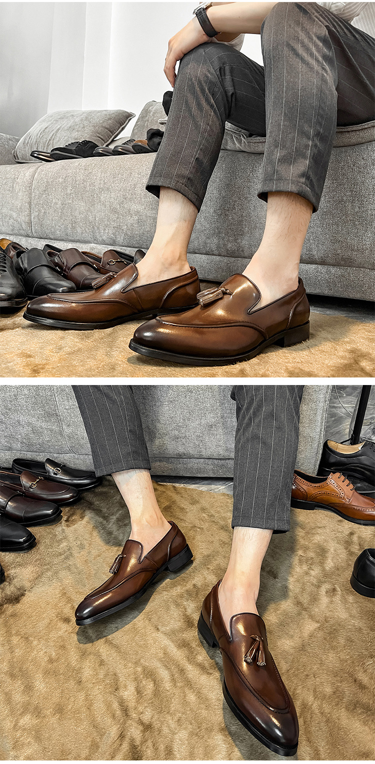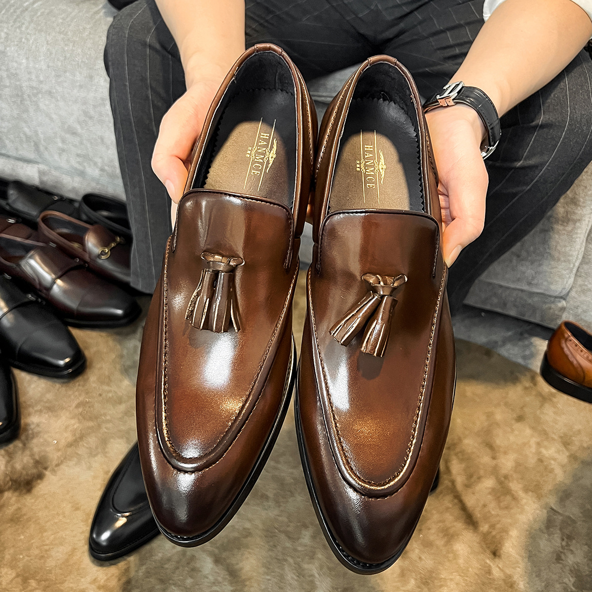 Giày thiết kế một mảnh, dễ dàng xỏ chân vào mà không cần buộc dây. Phong cách kết hợp giữa đi làm và dạo phố, với mũi nhọn thanh lịch và điểm nhấn là chi tiết rủ ở mặt trên. Sản phẩm phù hợp cho nhiều dịp, từ công sở đến những buổi gặp mặt thường ngày. Bạn chỉ cần xỏ chân vào là có thể bước đi thoải mái và tự tin ngay lập tức. | Tên sản phẩm: Giày Da Nam Mũi Nhọn Phong Cách Hàn Quốc - Giày Dép Nam | Mã sản phẩm: T6208 - Giá: 2.490.000đ | Mã nhà sản xuất: YADAO-G05Hình ảnh sản phẩm