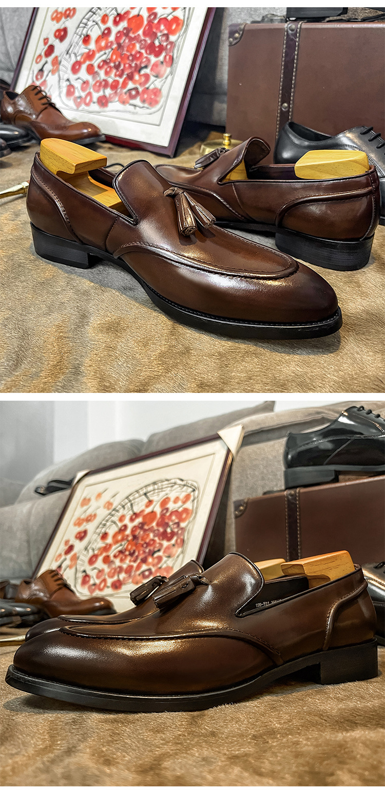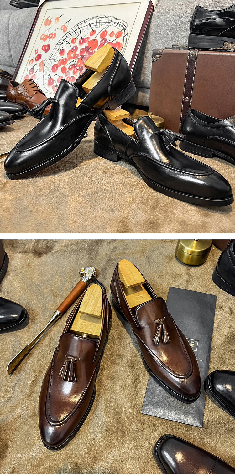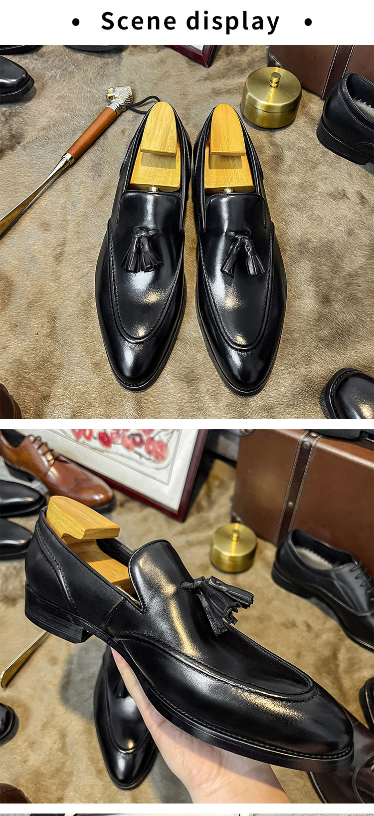 Giày thiết kế một mảnh, dễ dàng xỏ chân vào mà không cần buộc dây. Phong cách kết hợp giữa đi làm và dạo phố, với mũi nhọn thanh lịch và điểm nhấn là chi tiết rủ ở mặt trên. Sản phẩm phù hợp cho nhiều dịp, từ công sở đến những buổi gặp mặt thường ngày. Bạn chỉ cần xỏ chân vào là có thể bước đi thoải mái và tự tin ngay lập tức. | Tên sản phẩm: Giày Da Nam Mũi Nhọn Phong Cách Hàn Quốc - Giày Dép Nam | Mã sản phẩm: T6208 - Giá: 2.490.000đ | Mã nhà sản xuất: YADAO-G05Hình ảnh sản phẩm