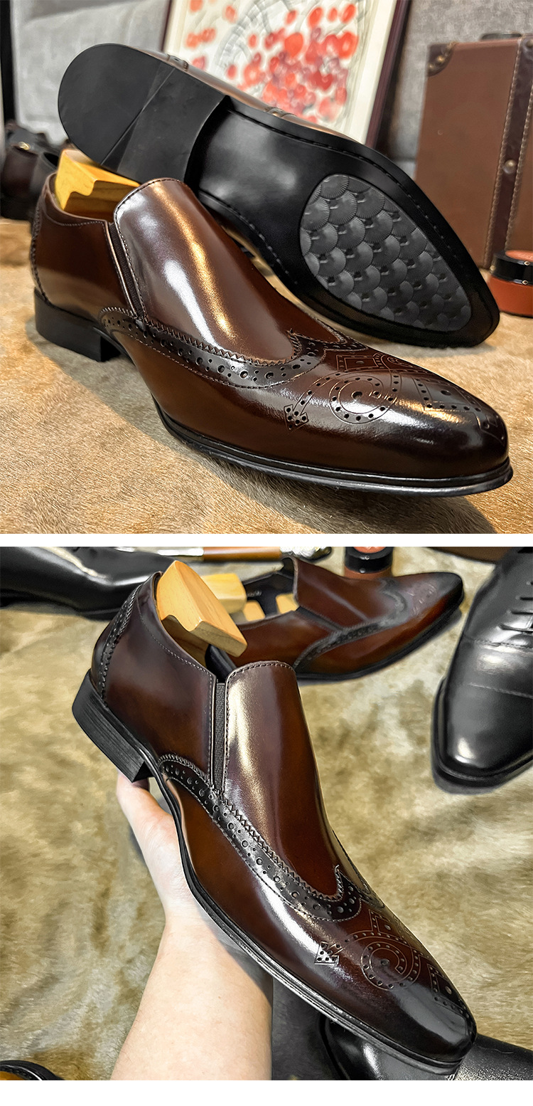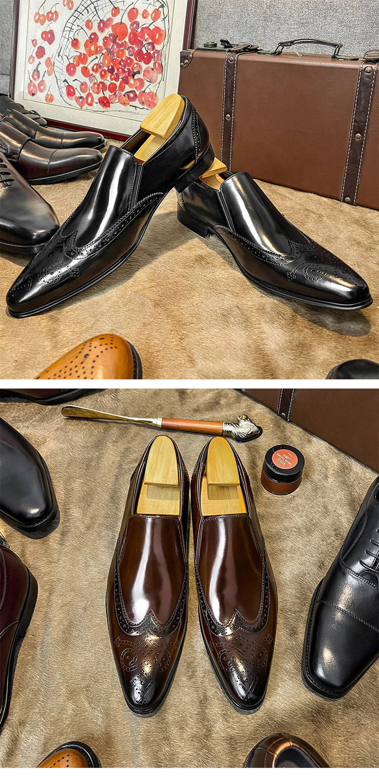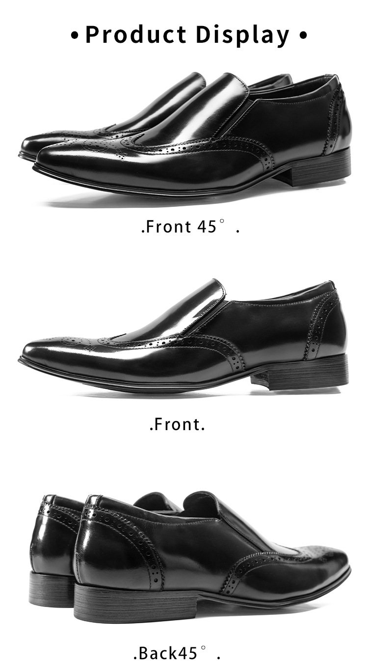 Giày lười da thật dành cho nam, kiểu dáng mũi nhọn thanh lịch. Sản phẩm có đường chỉ thêu Brogue tinh tế, tạo điểm nhấn nổi bật. Chất da mềm mại và bền đẹp theo thời gian. Kiểu dáng phối đồ dễ dàng, phù hợp cho nhiều dịp như đi làm, gặp gỡ hay dạo phố. Chỉ cần xỏ vào và sẵn sàng bước đi, bạn đã có một phong cách chỉn chu và lịch thiệp. | Tên sản phẩm: Giày Da Nam Chất Liệu Da Bò Mũi Nhọn Phong Cách Hàn Quốc - Giày Dép Nam | Mã sản phẩm: T6219 - Giá: 2.390.000đ | Mã nhà sản xuất: YADAO-G05Hình ảnh sản phẩm