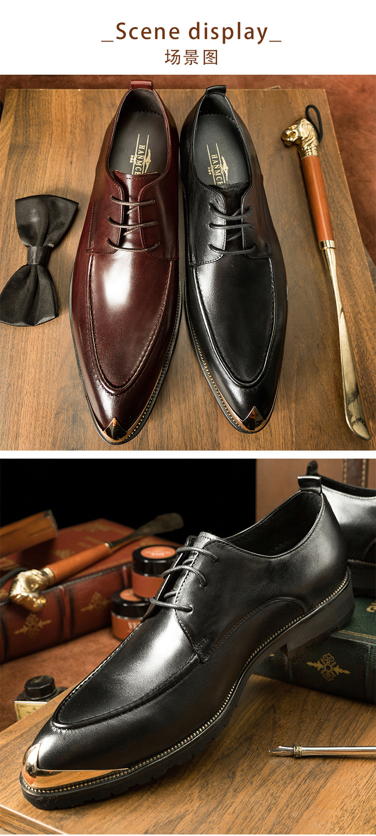 Giày da bò dáng mũi nhọn dành cho nam, có kích cỡ lớn lên đến số 48. Sản phẩm được làm từ chất liệu da bò bền đẹp, phần mũi giày được gia cố thêm lớp thép an toàn, phù hợp cho nhiều môi trường làm việc. Kiểu dáng lịch sự, dễ dàng phối hợp với cả trang phục công sở và quần tây thông thường. Chỉ cần vệ sinh bằng khăn mềm để giữ giày luôn sạch sẽ và bền lâu. | Tên sản phẩm: Giày Da Nam Chất Liệu Da Bò Big Size Ngoại Cỡ Mũi Nhọn - Giày Dép Nam | Mã sản phẩm: T6230 - Giá: 2.480.000đ | Mã nhà sản xuất: YADAO-G05Hình ảnh sản phẩm