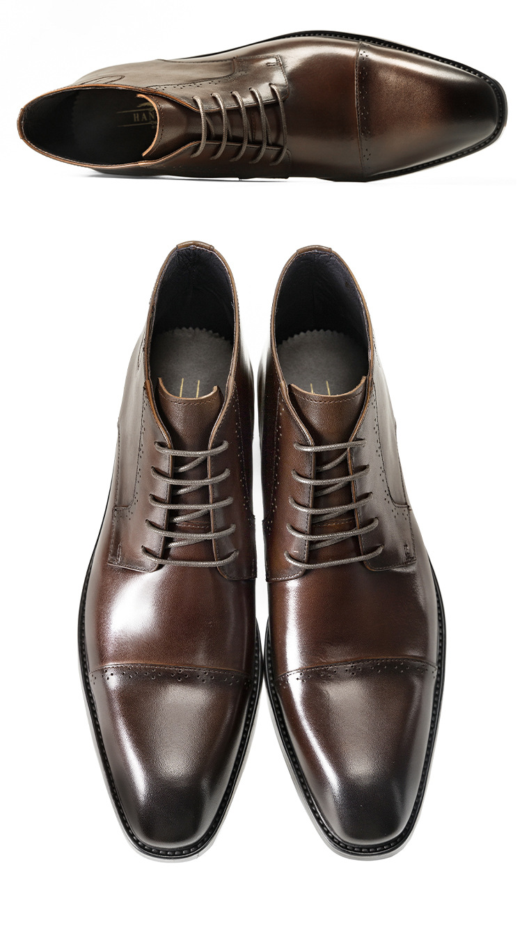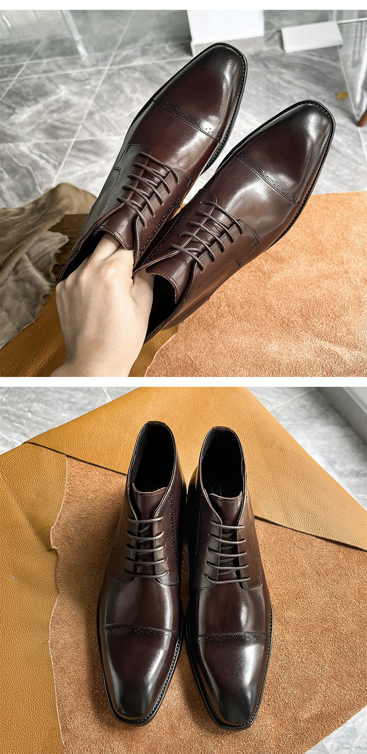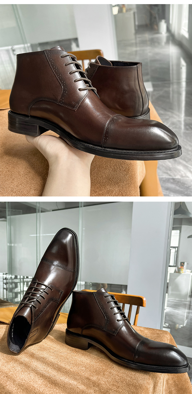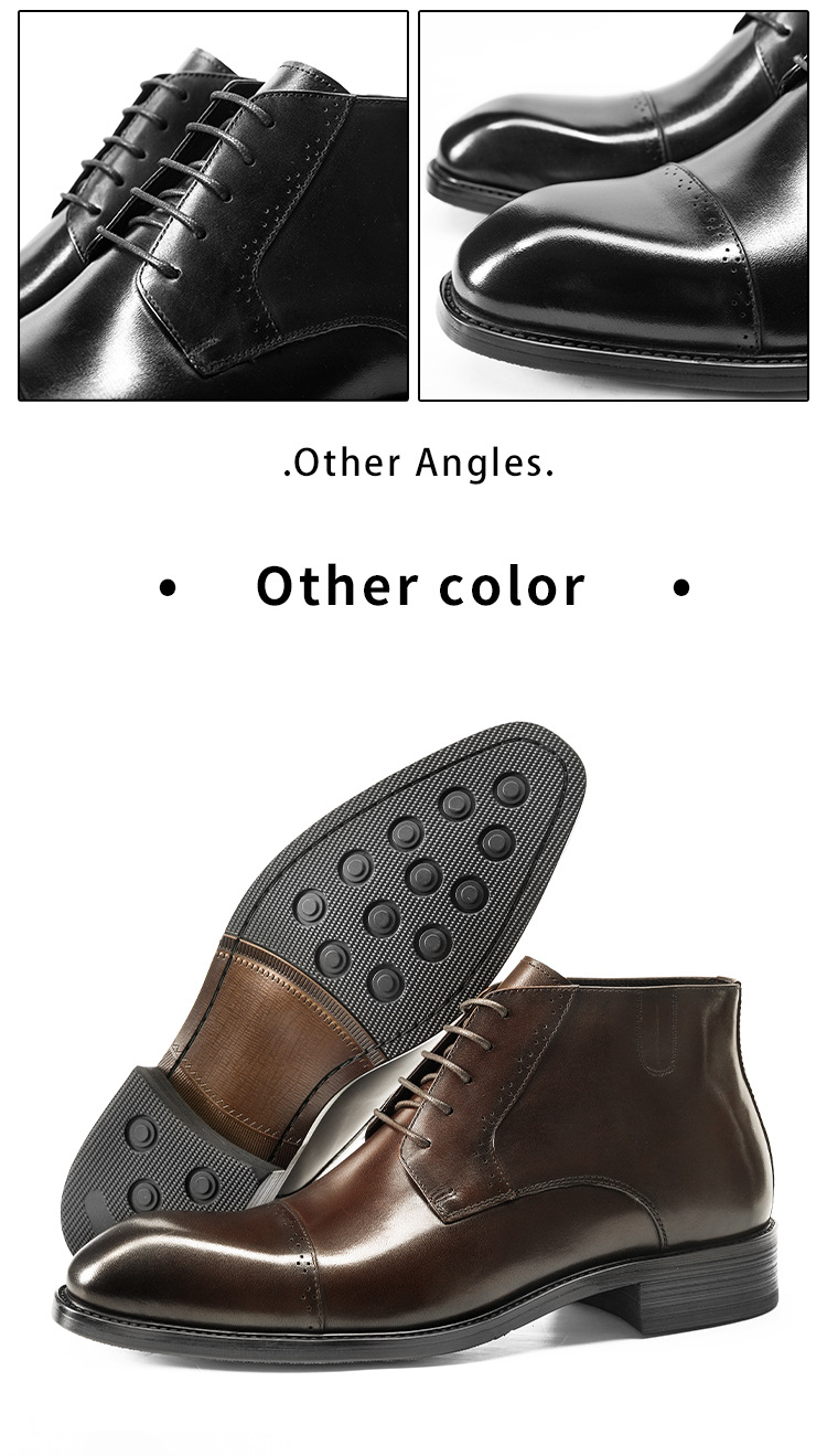 Giày bốt cổ cao kiểu mũi nhọn, được làm từ chất liệu da bò mềm mại và bền chắc. Kiểu dáng phối màu cổ điển mang đến vẻ ngoại hình cá tính và mạnh mẽ. Sản phẩm phù hợp để phối cùng nhiều loại trang phục như quần jeans hay quần kaki. Bạn có thể dễ dàng xỏ chân vào và cài khóa kéo bên hông. Đế giày được thiết kế vân chống trơn, giúp bảo vệ đôi chân bạn an toàn và thoải mái suốt ngày dài. | Tên sản phẩm: Giày Da Nam Chất Liệu Da Bò Mũi Nhọn - Giày Dép Nam | Mã sản phẩm: T6233 - Giá: 3.040.000đ | Mã nhà sản xuất: YADAO-G06Hình ảnh sản phẩm