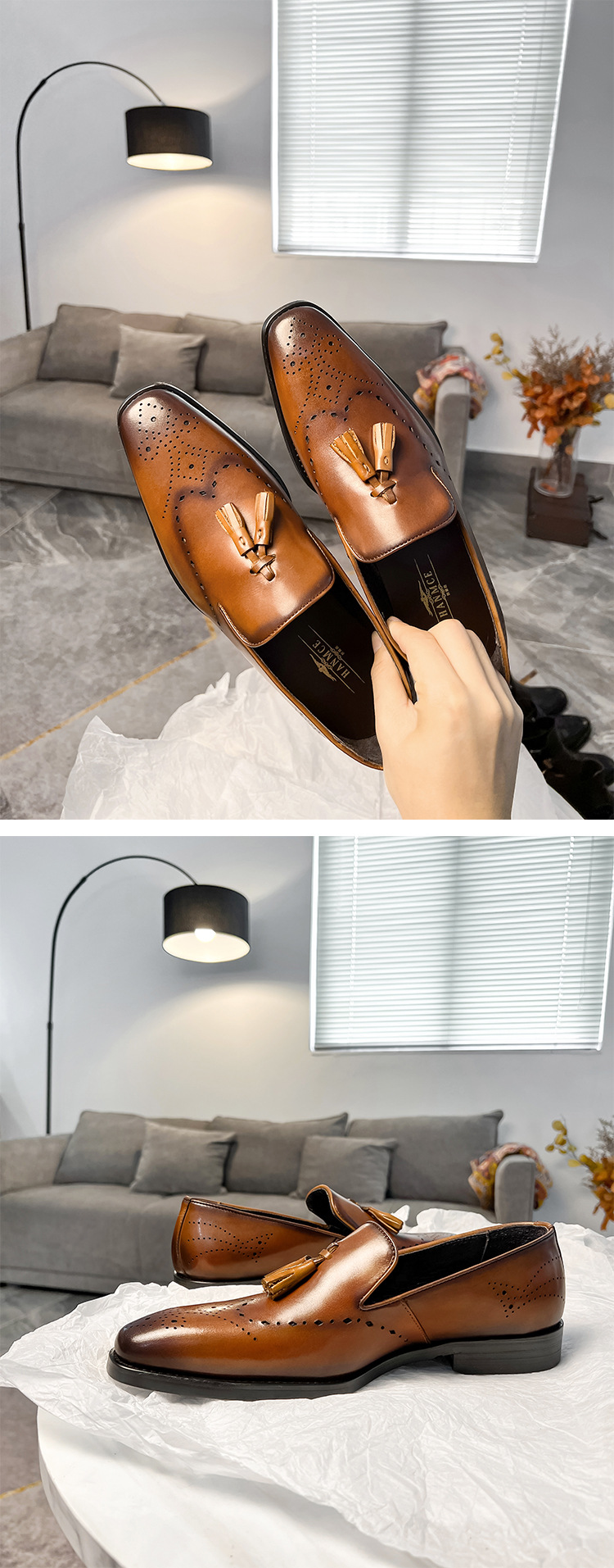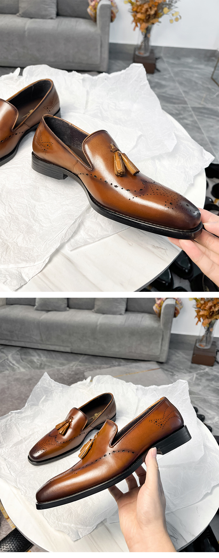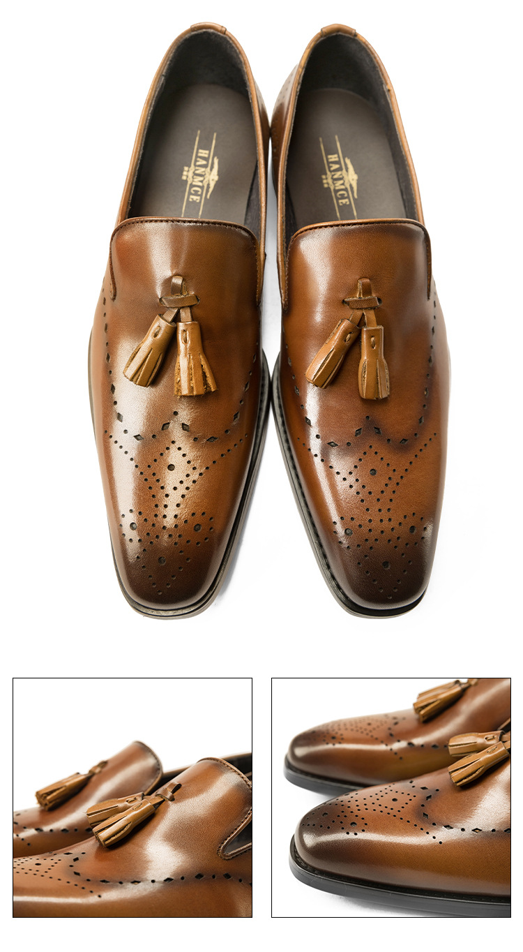 Giày tây nam kiểu dáng Anh quốc, được làm từ chất liệu da bò mềm mại và bền đẹp. Sản phẩm có điểm nhấn là những dải trang trí tua rua năng động ở phần thân, mang phong cách trẻ trung, hiện đại. Đây là mẫu giày dễ dàng phối cùng nhiều loại trang phục như quần âu, quần kaki hay quần jean. Bạn chỉ cần xỏ vào và bước đi là đã có ngay một diện mạo lịch lãm, thoải mái cho nhiều dịp. | Tên sản phẩm: Giày Da Nam Chất Liệu Da Bò Phong Cách Hàn Quốc - Giày Dép Nam | Mã sản phẩm: T6242 - Giá: 2.390.000đ | Mã nhà sản xuất: YADAO-G05Hình ảnh sản phẩm