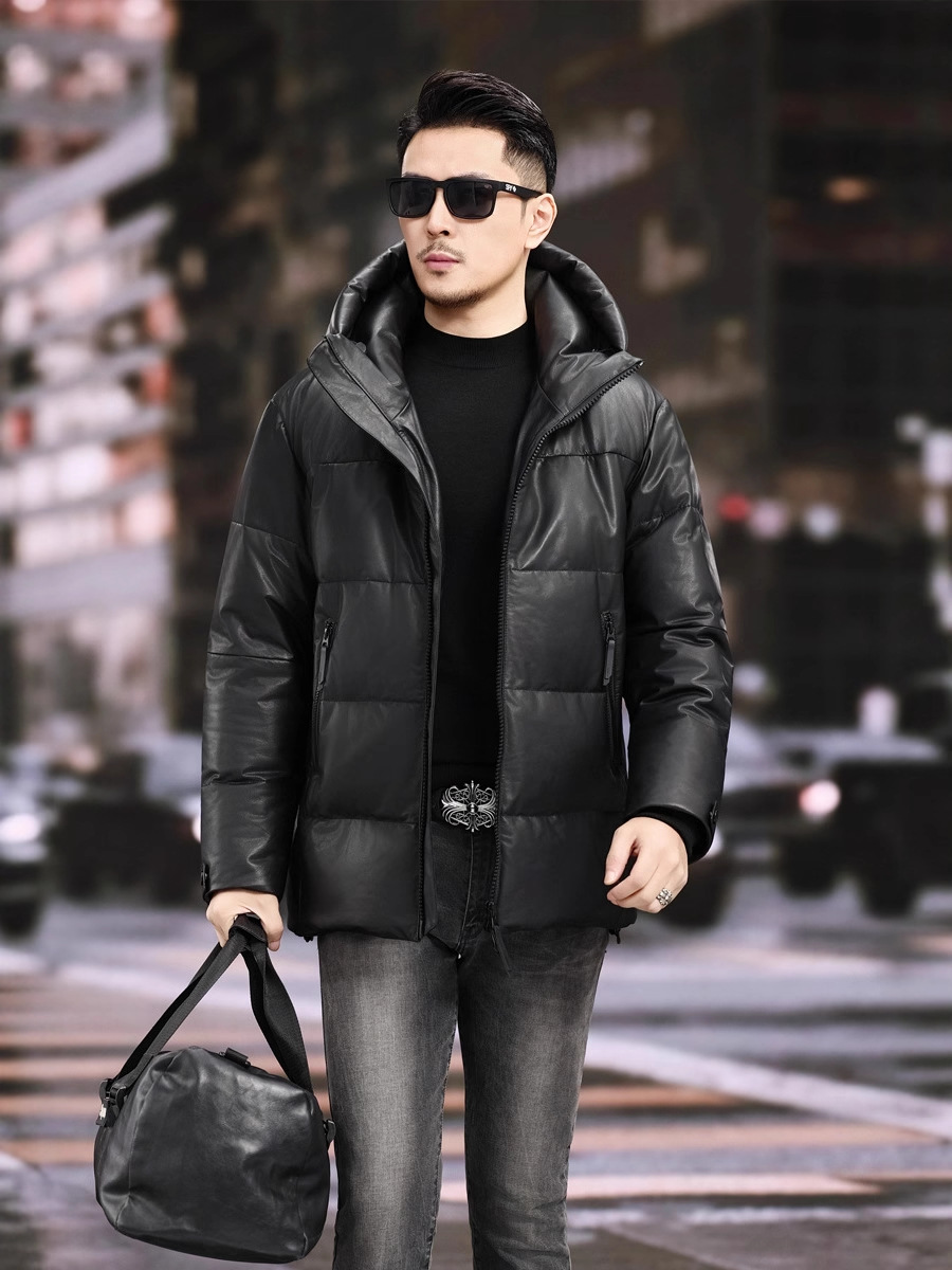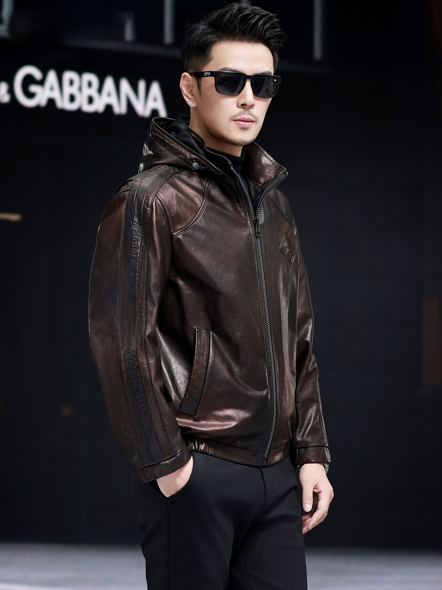 Áo Da Nam Chất Liệu Da Bò Mũ Liền