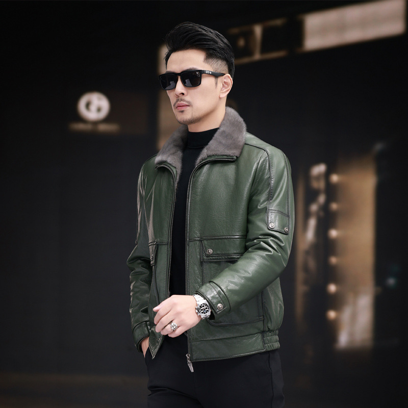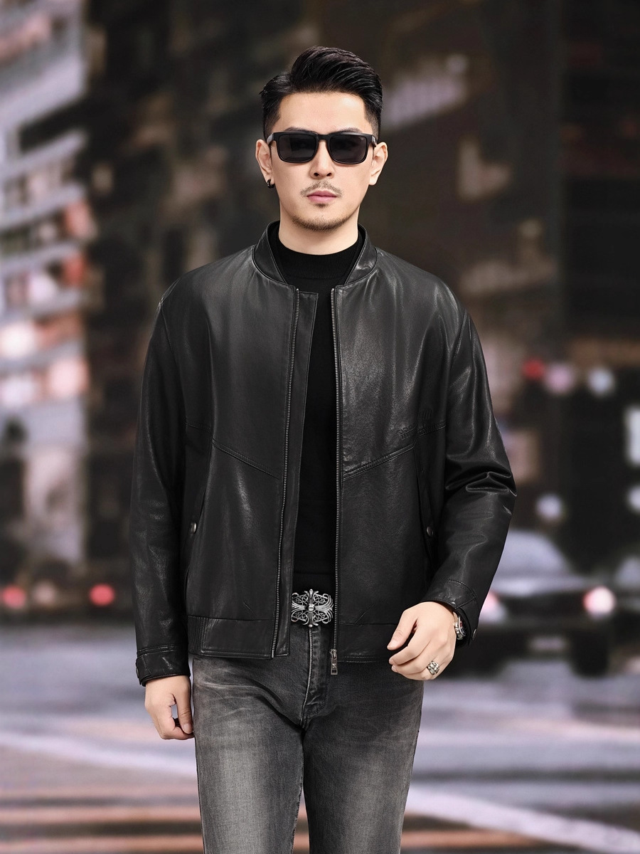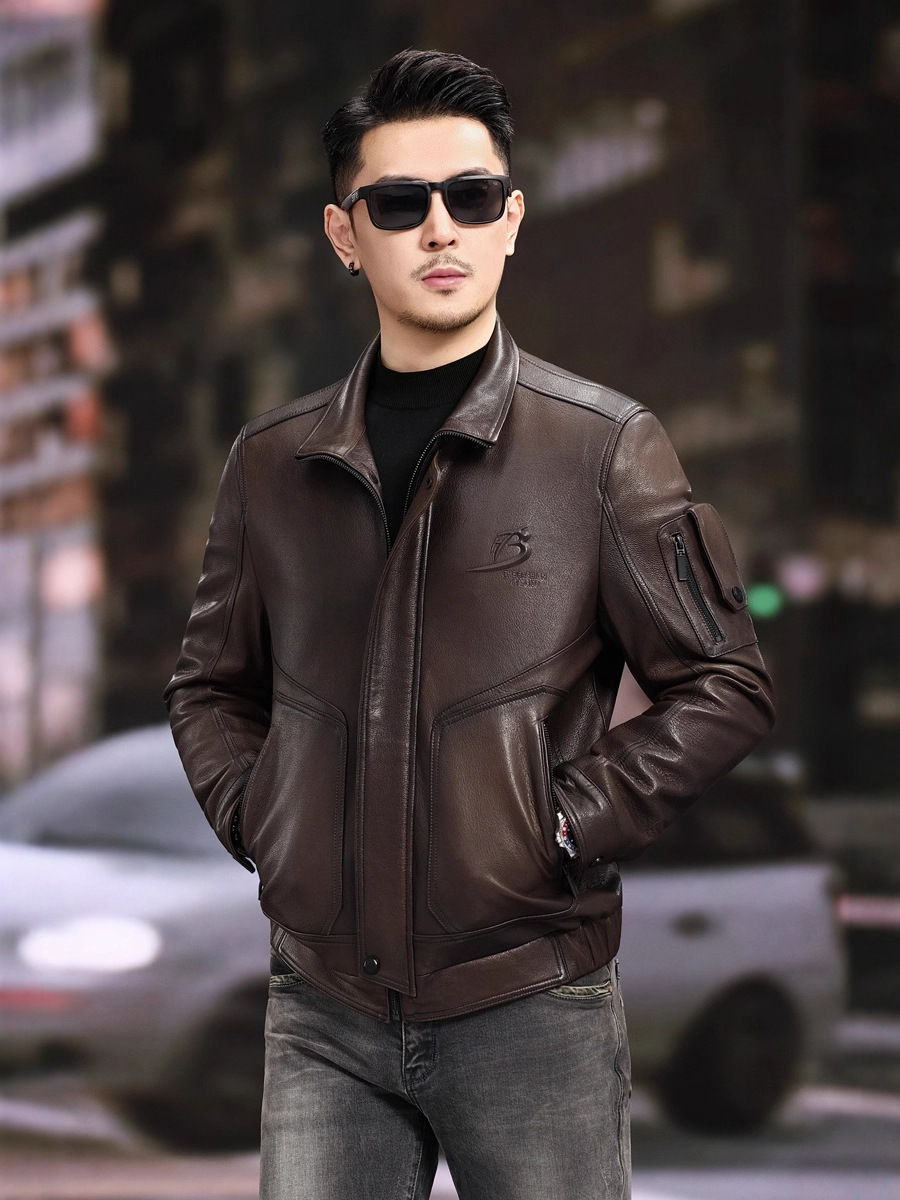 Áo Da Nam Chất Liệu Da Bò Kín Cổ