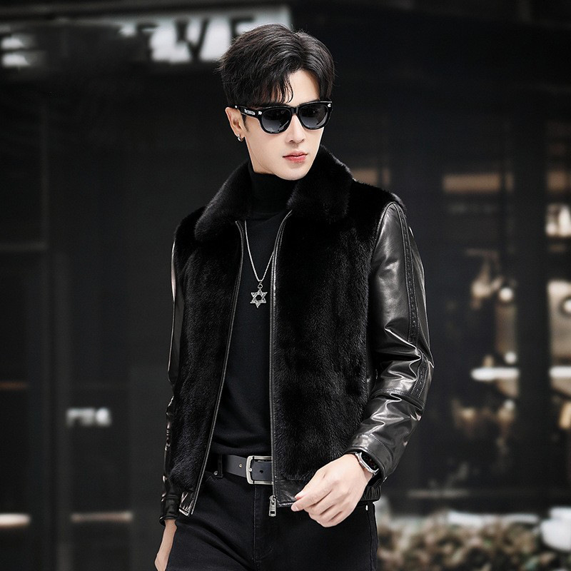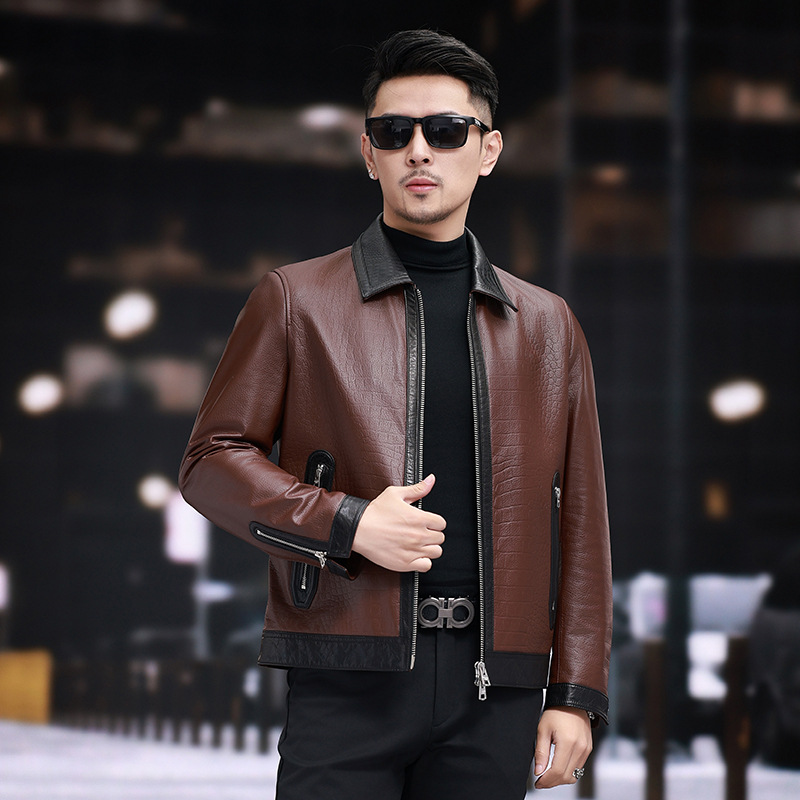 Áo Da Nam Chất Liệu Da Bò Kín Cổ